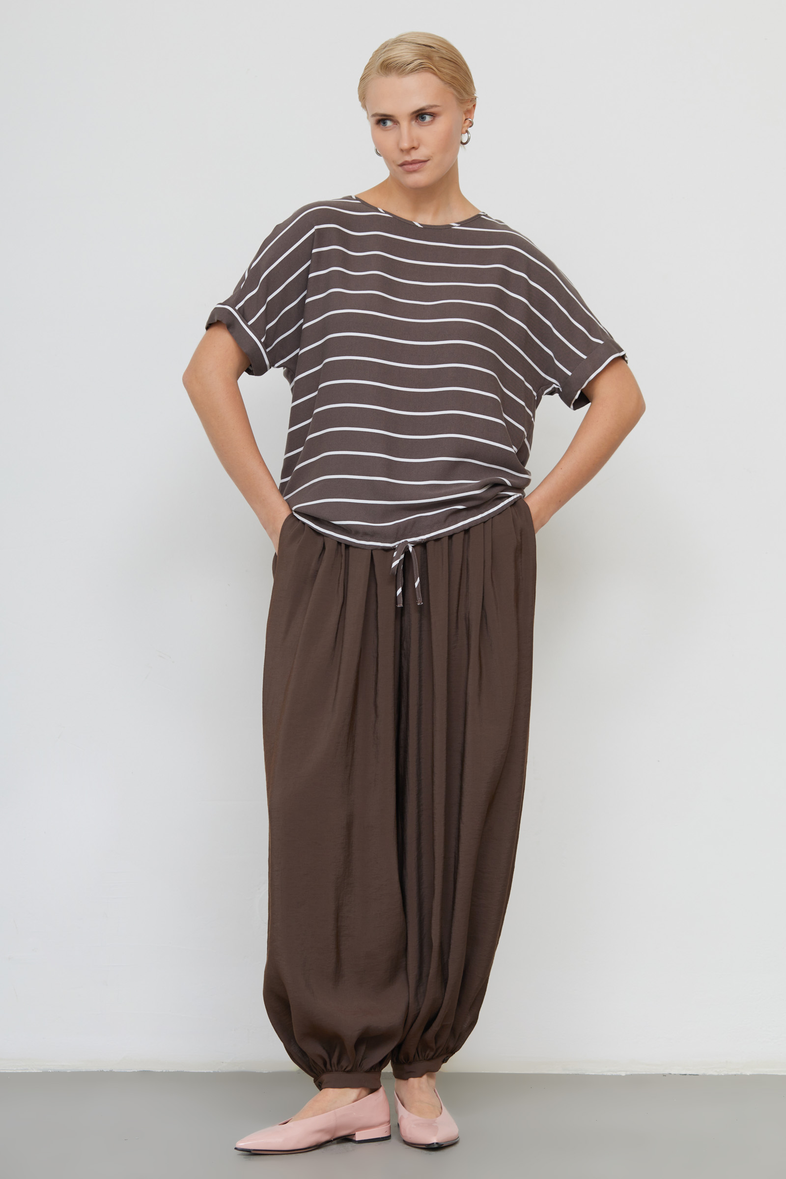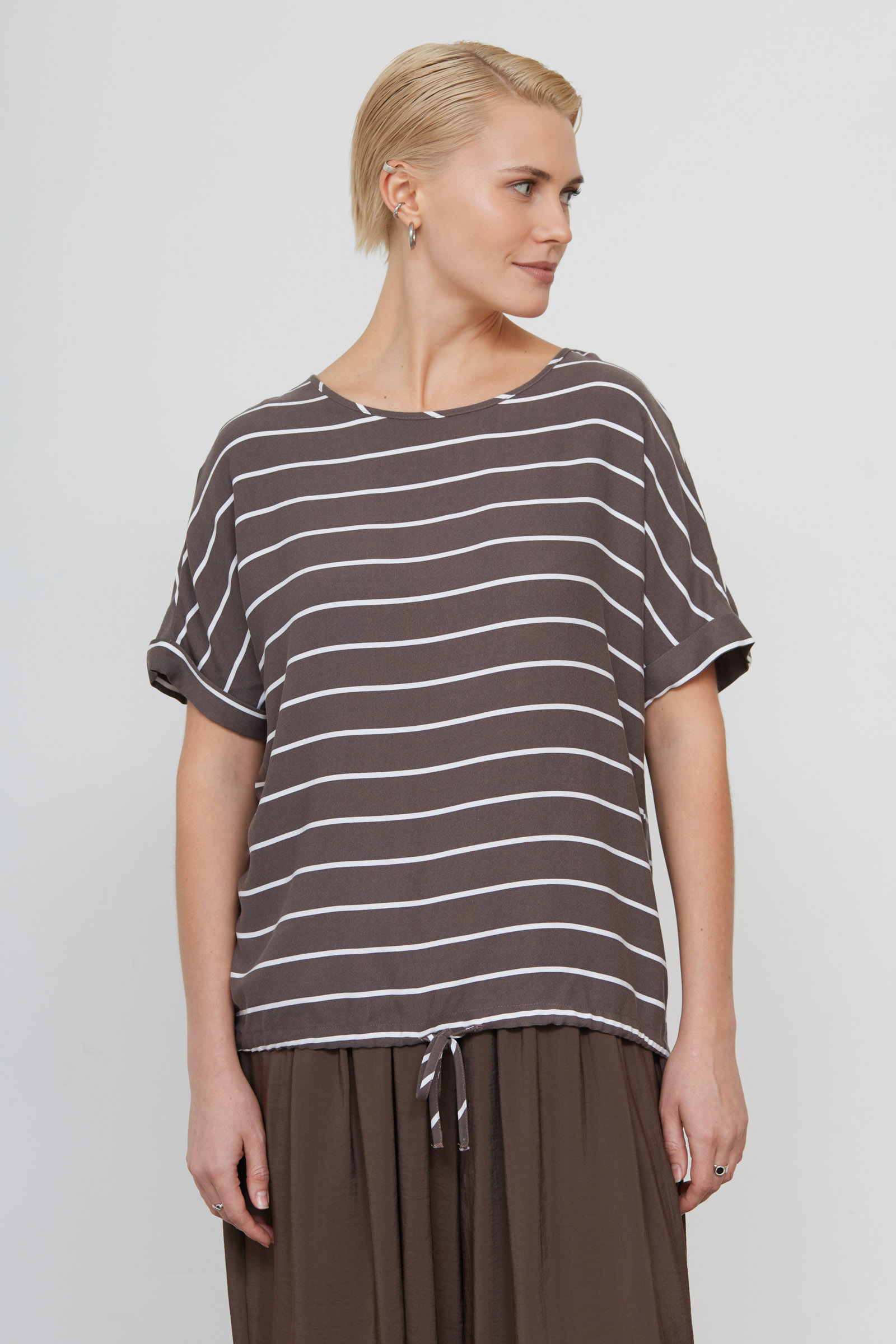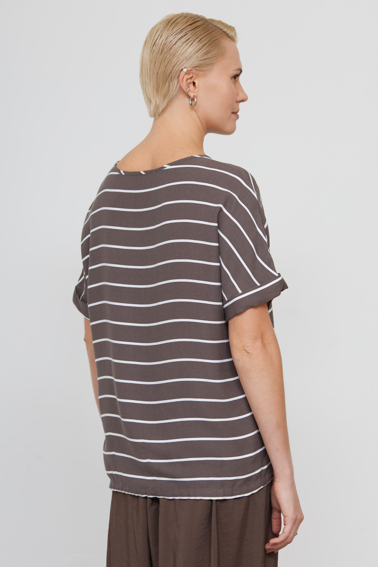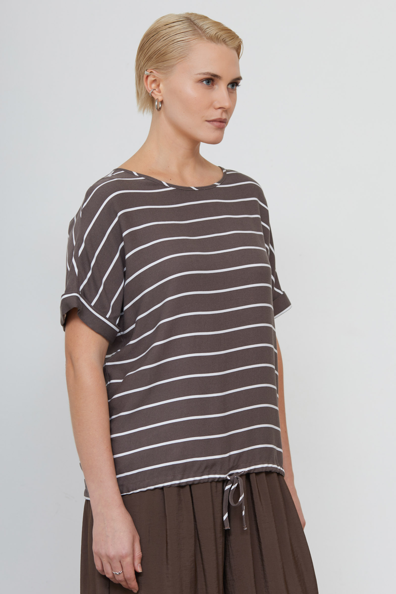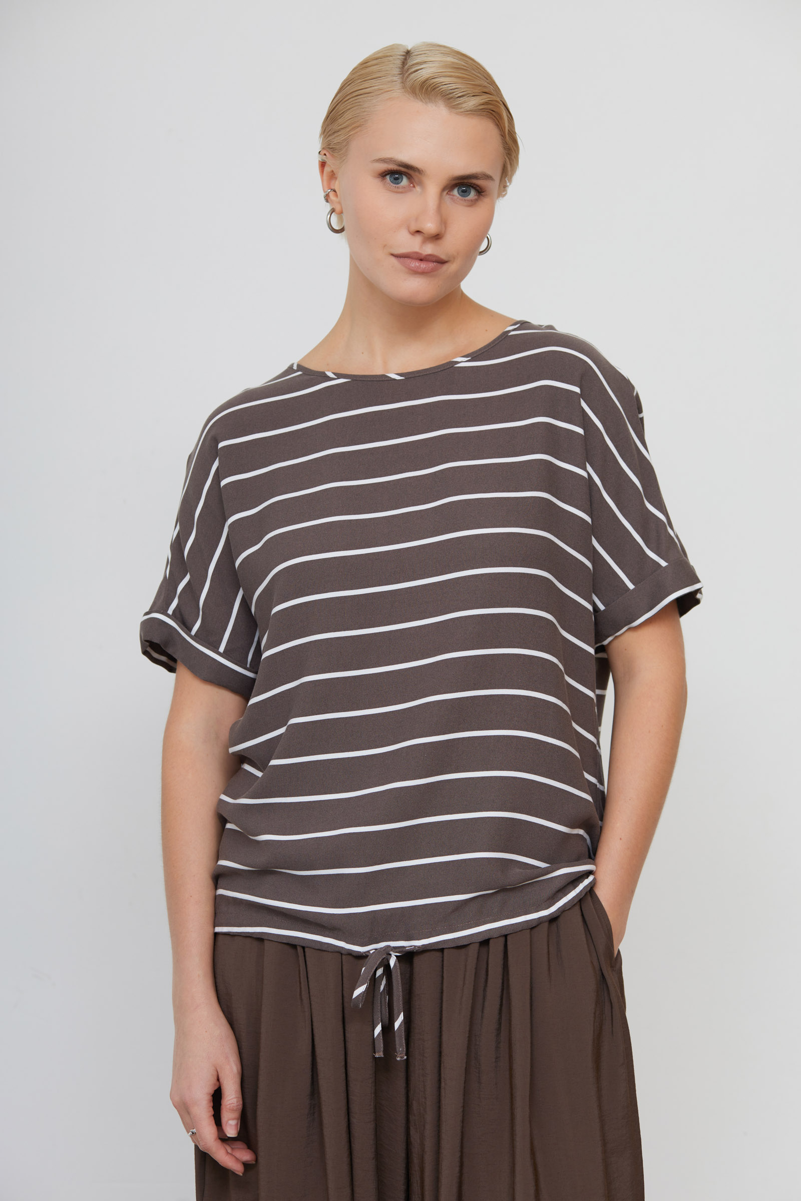 Блуза оверсайз из мягкой вискозы в полоску на кулиске.