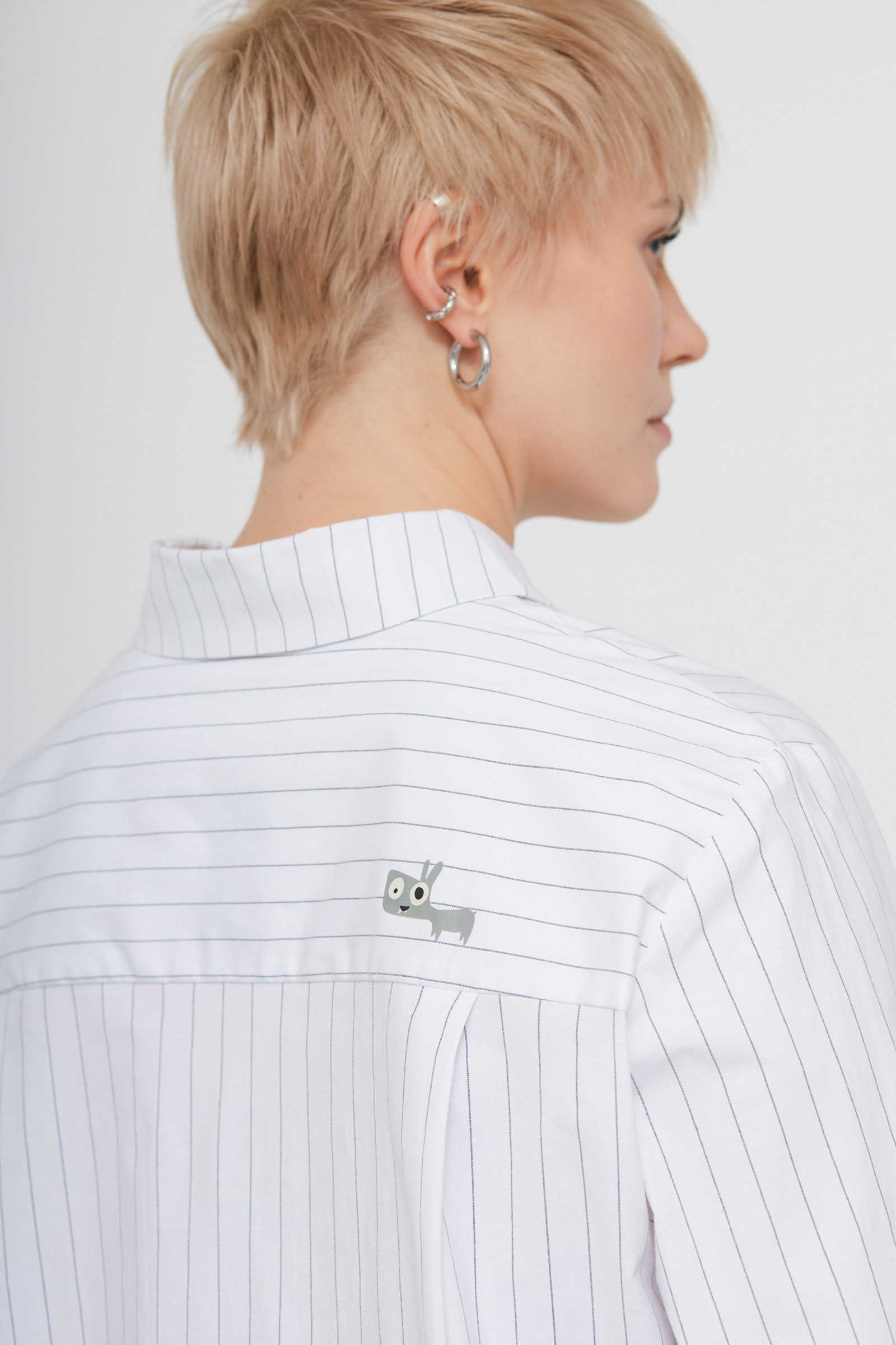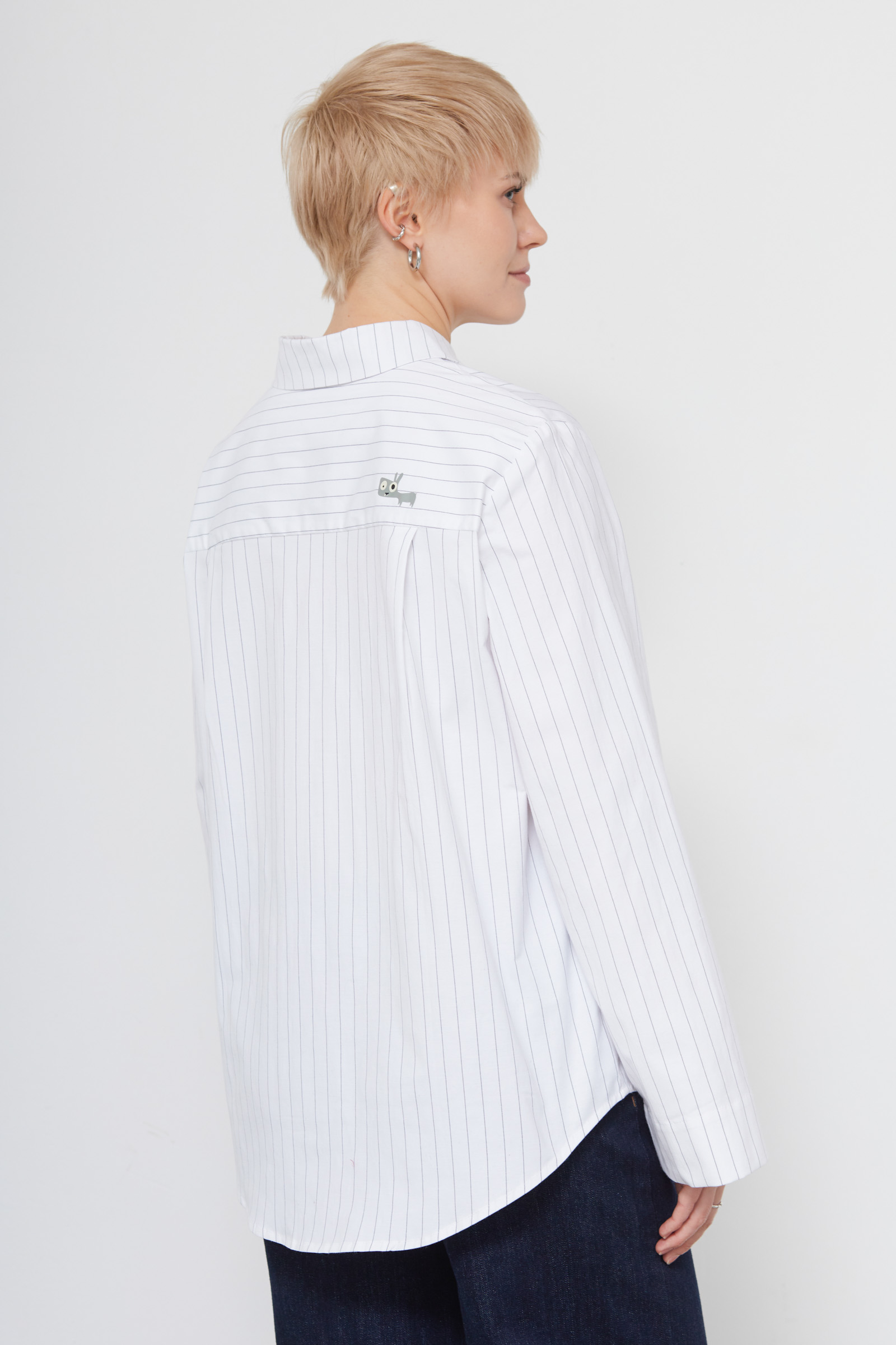 Рубашка оверсайз из смесового хлопка в полоску с печатным принтом на спинке.