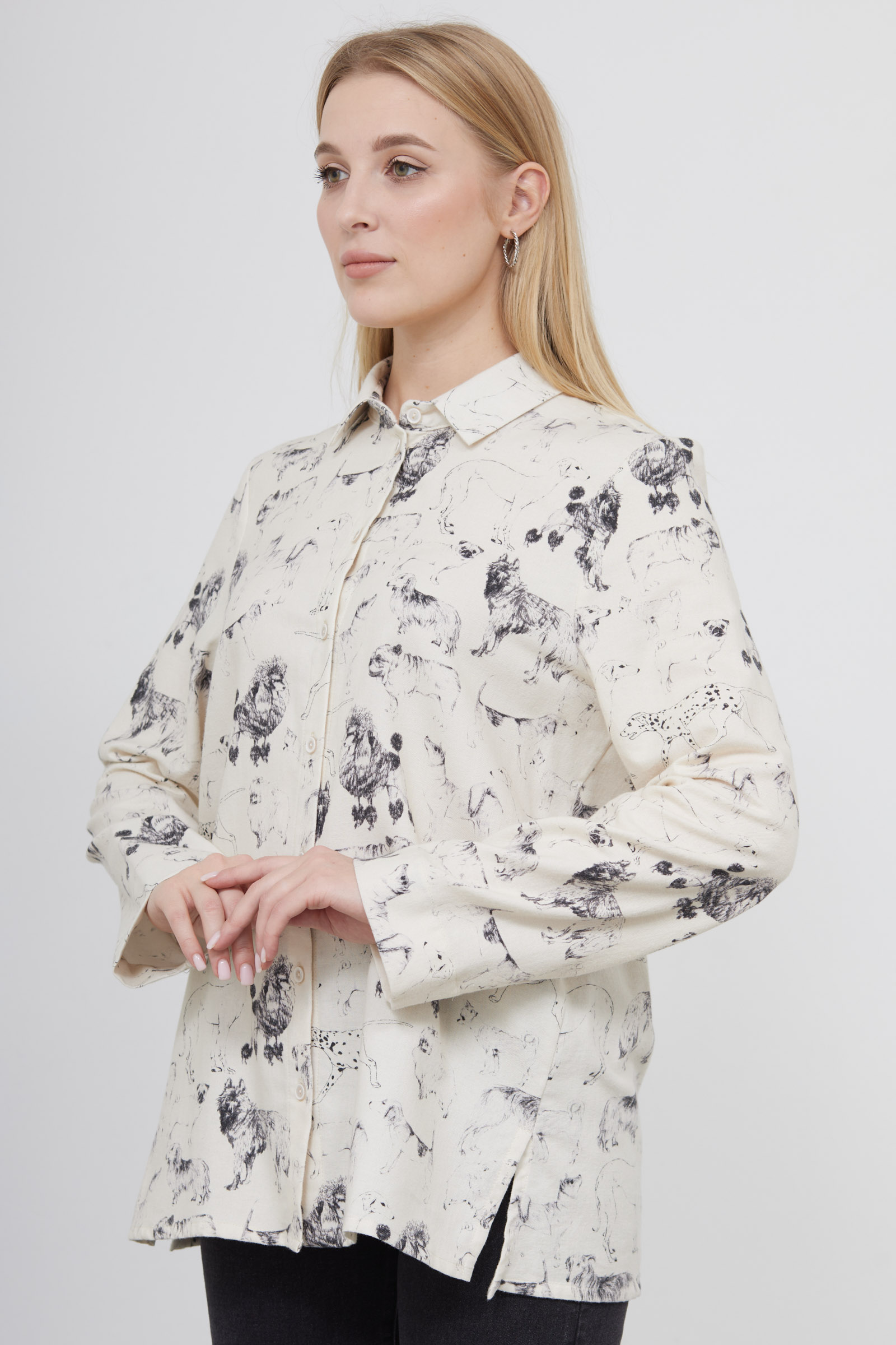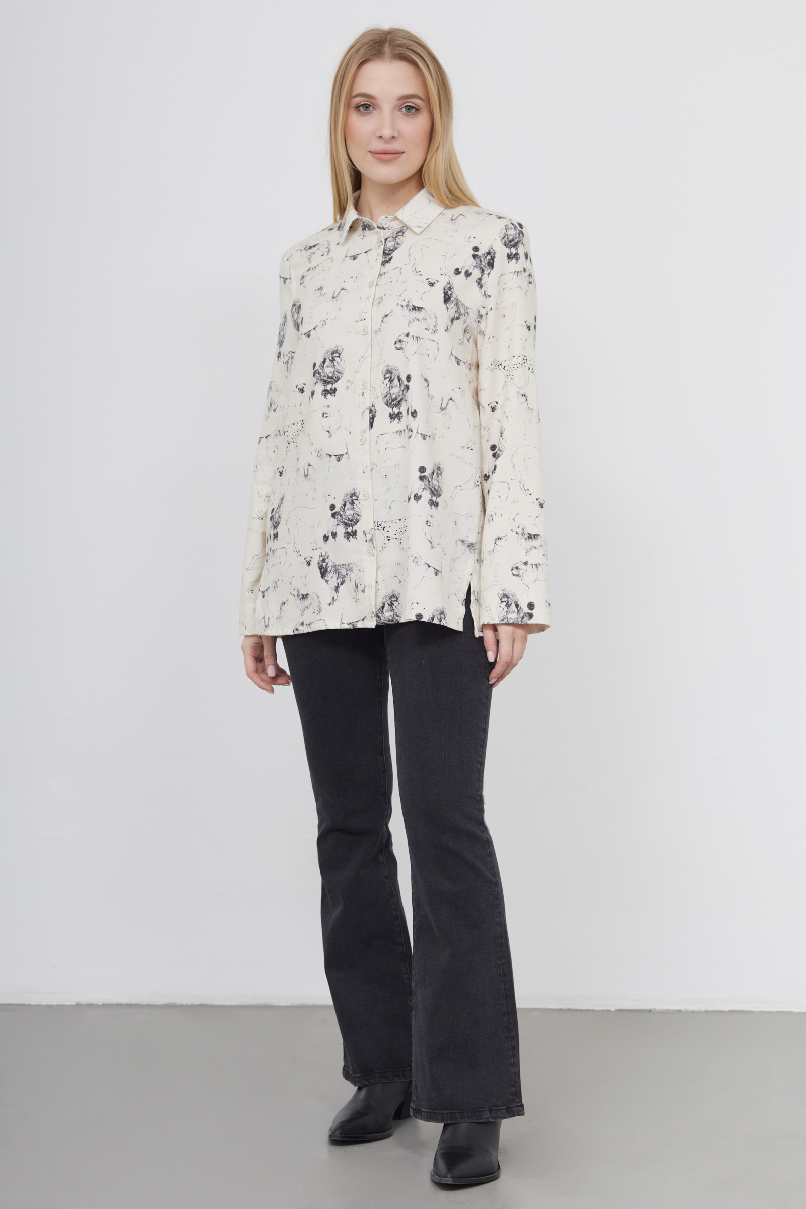 Фланелевая рубашка oversize с принтом в виде собак.
