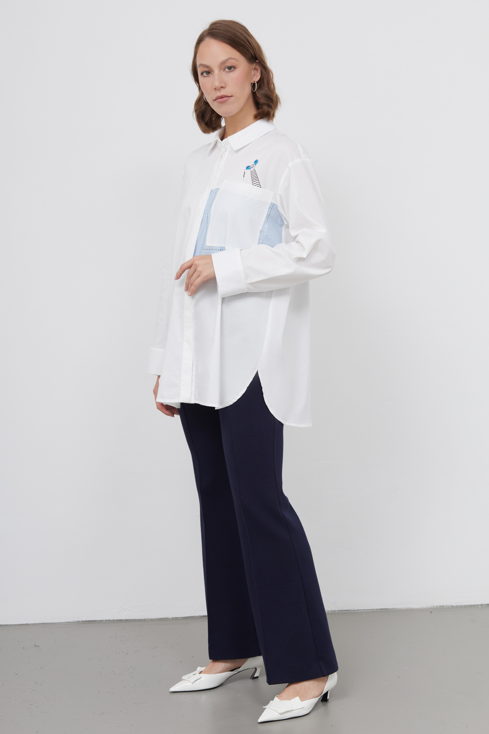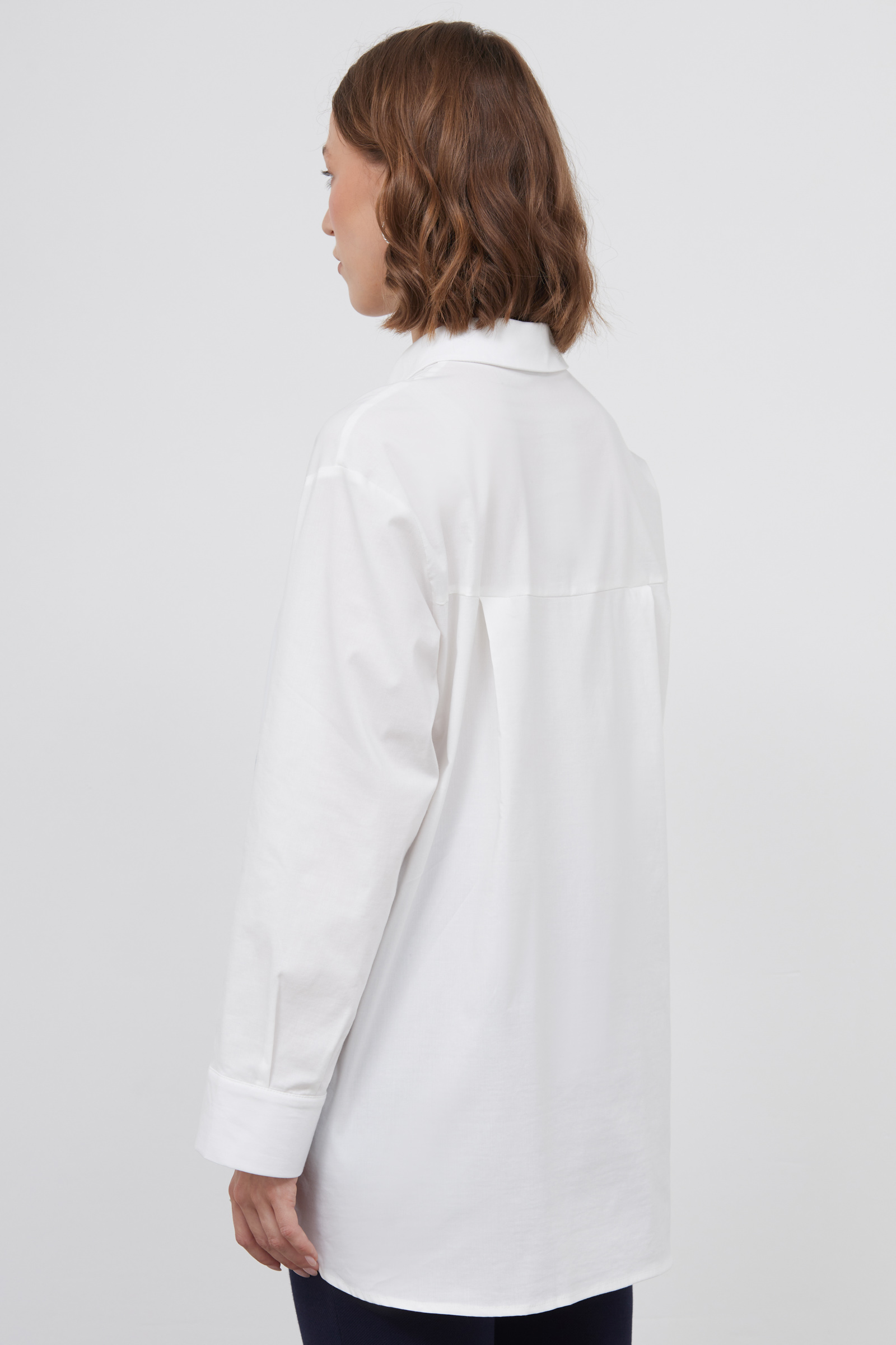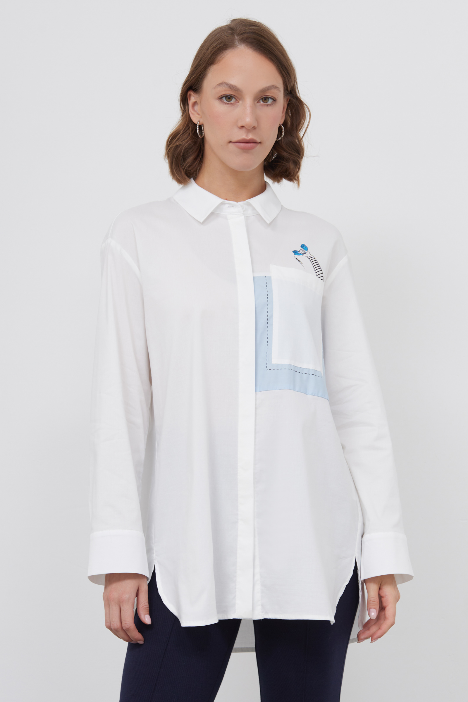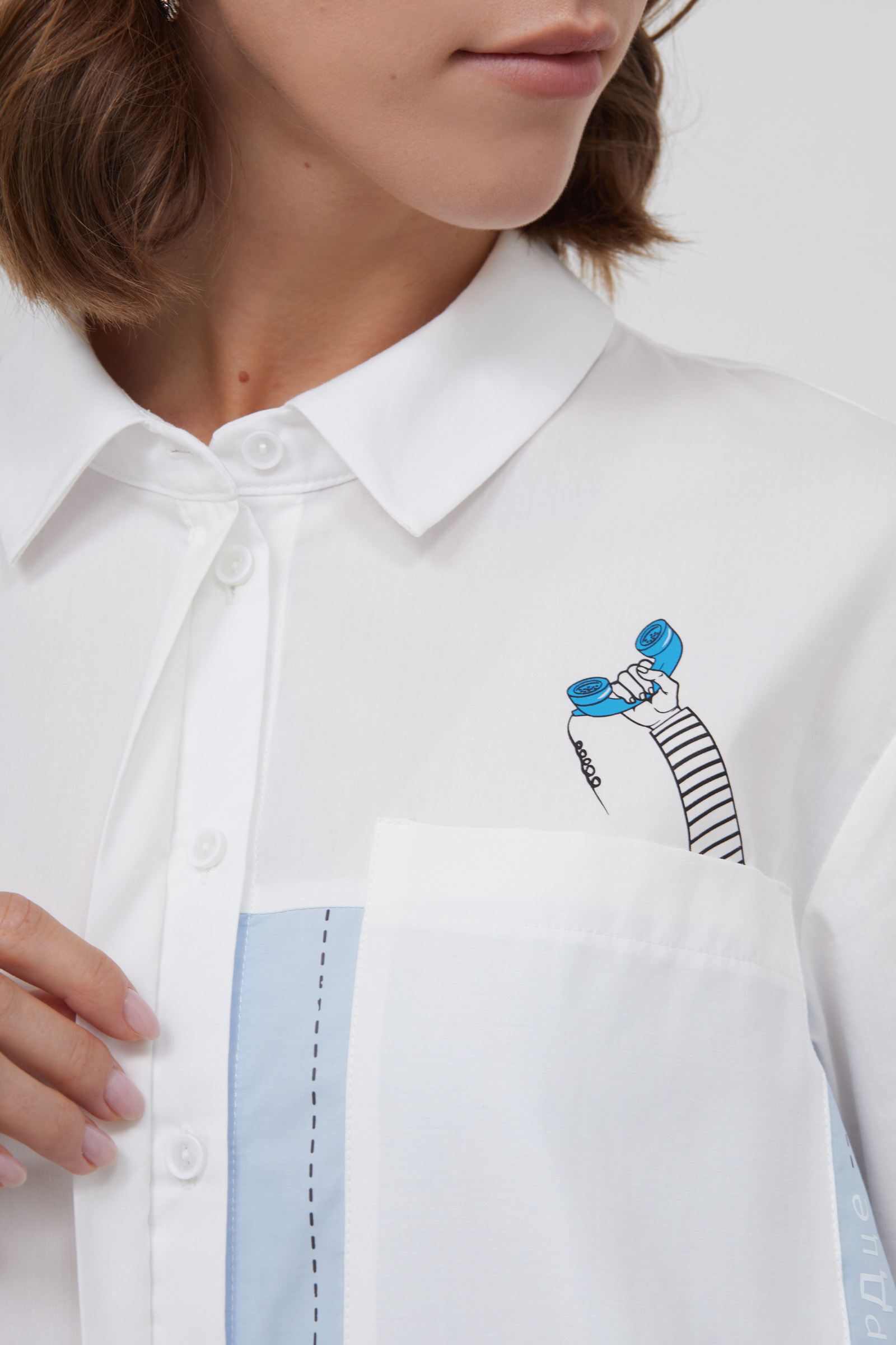 Удлиненная рубашка из хлопка с декоративной вставкой и принтом.