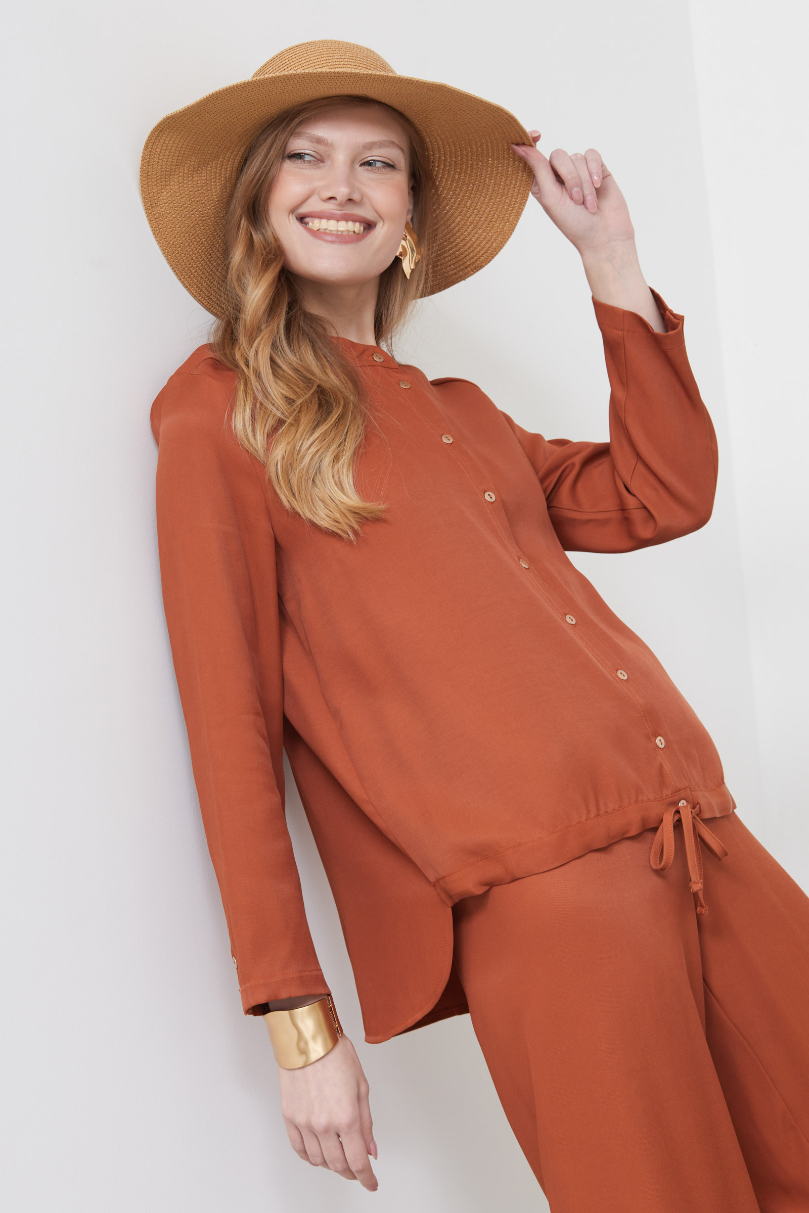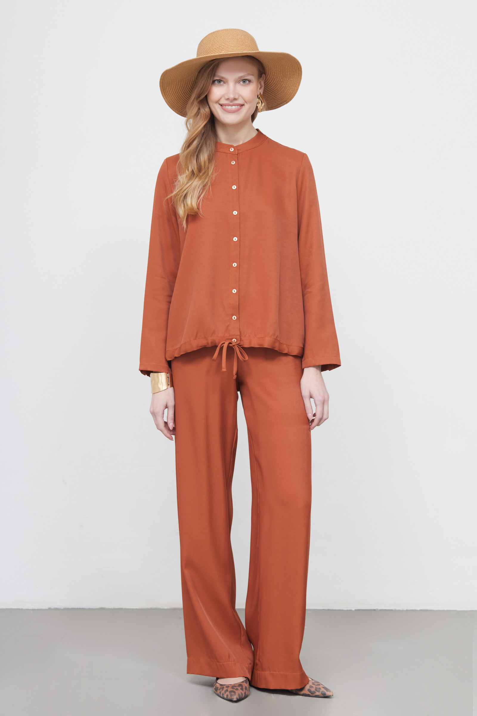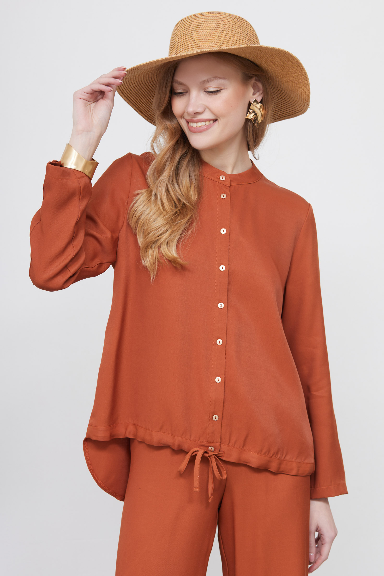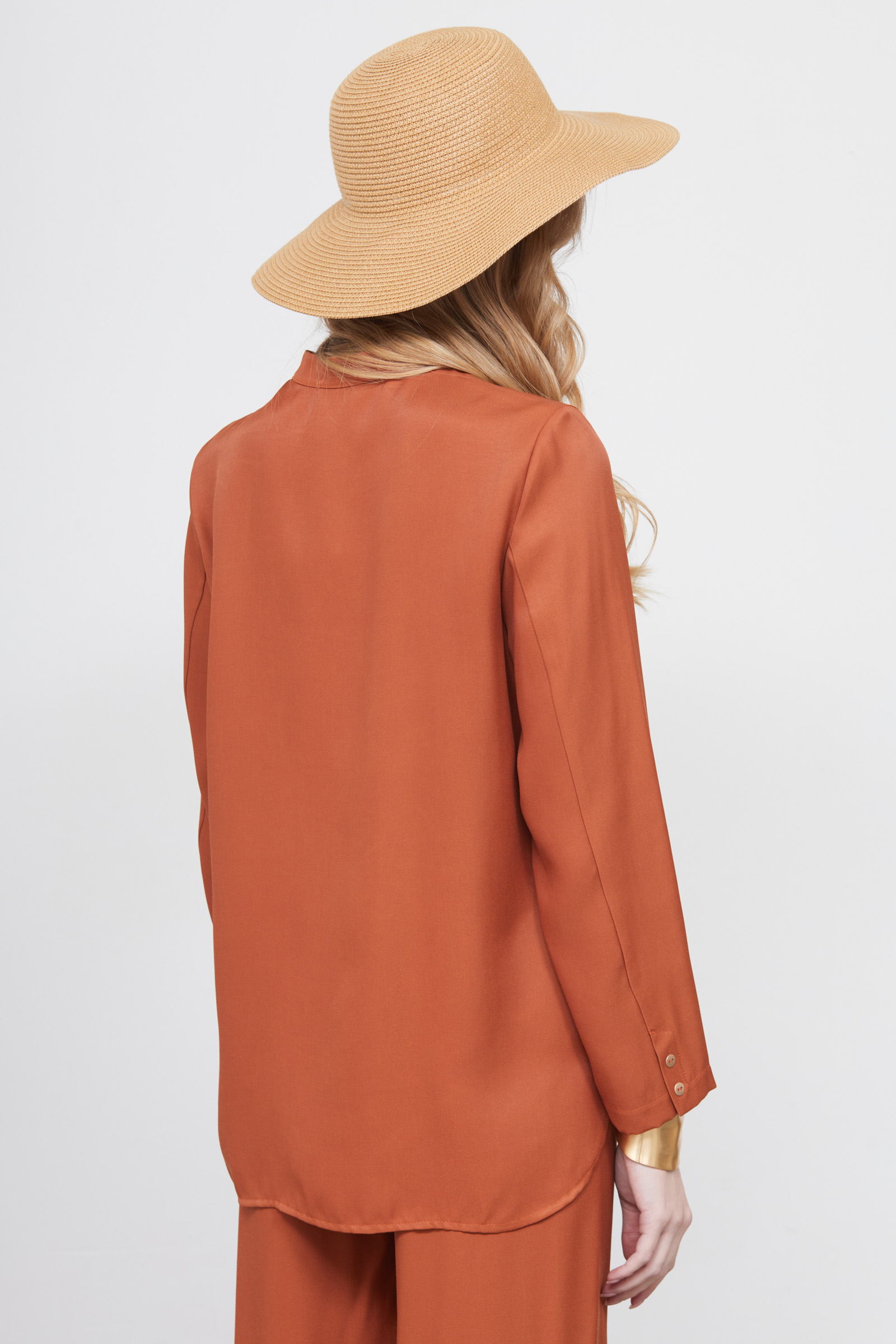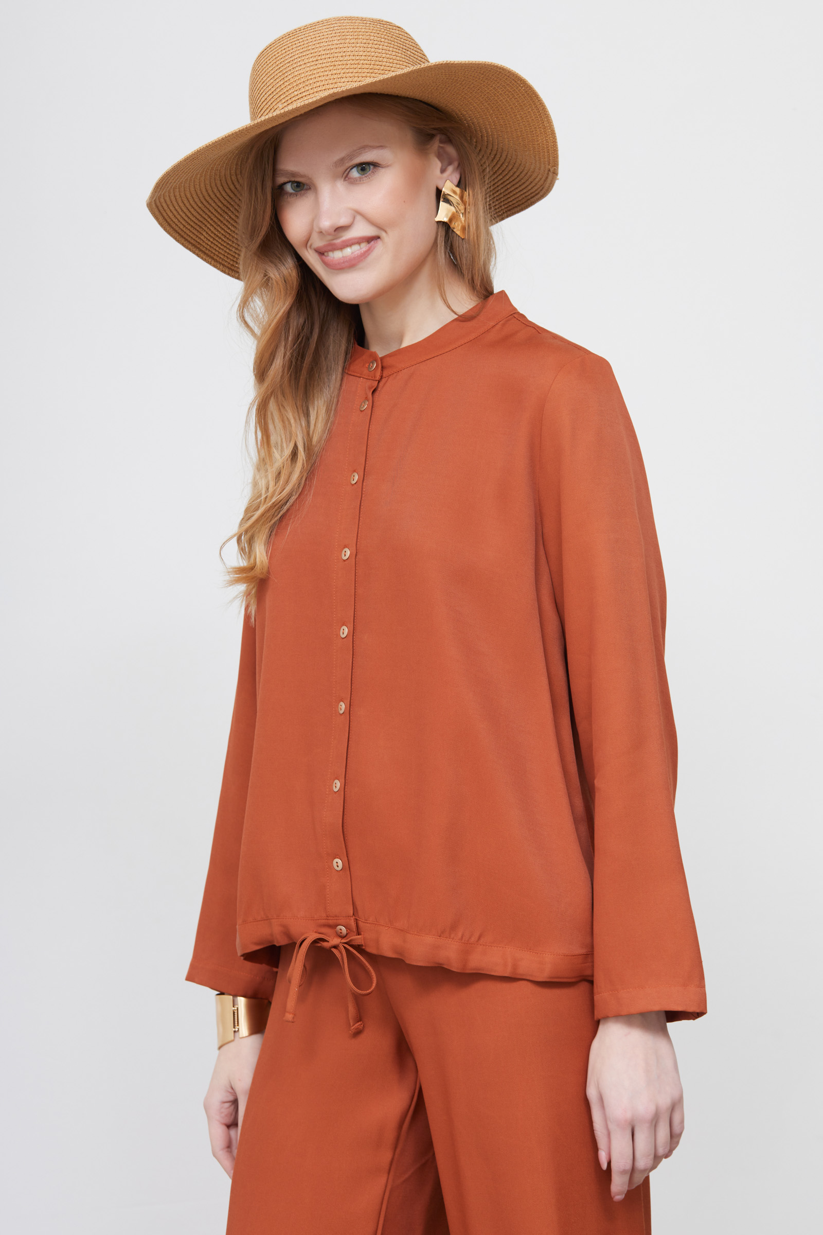 Блузка оверсайз из вискозы с кулиской спереди.
