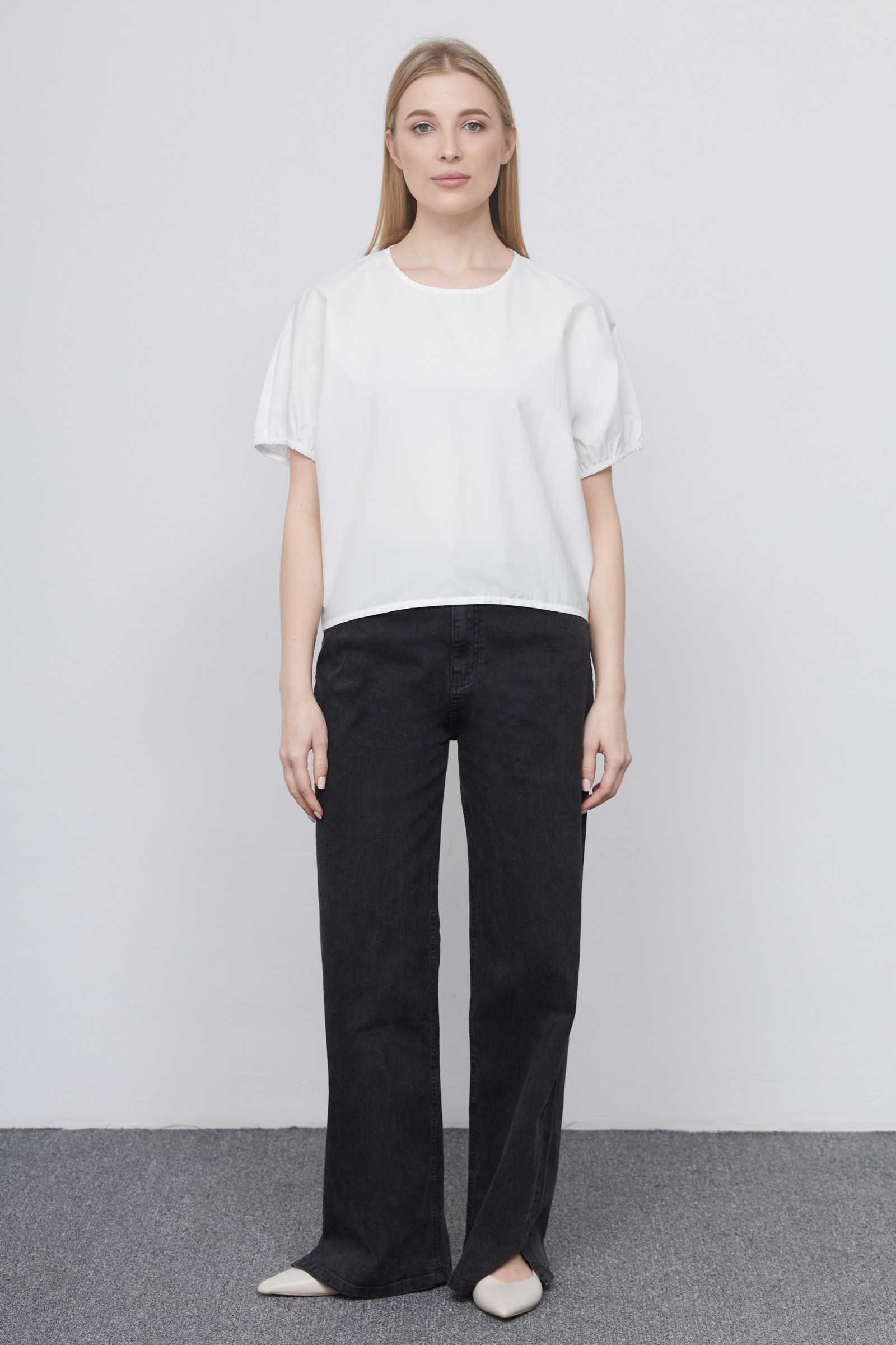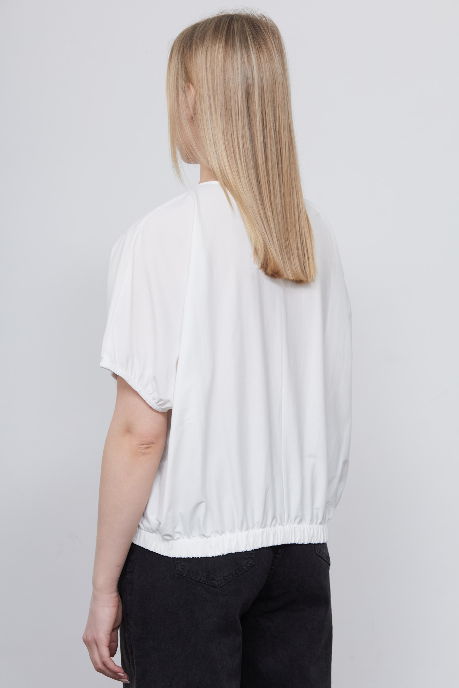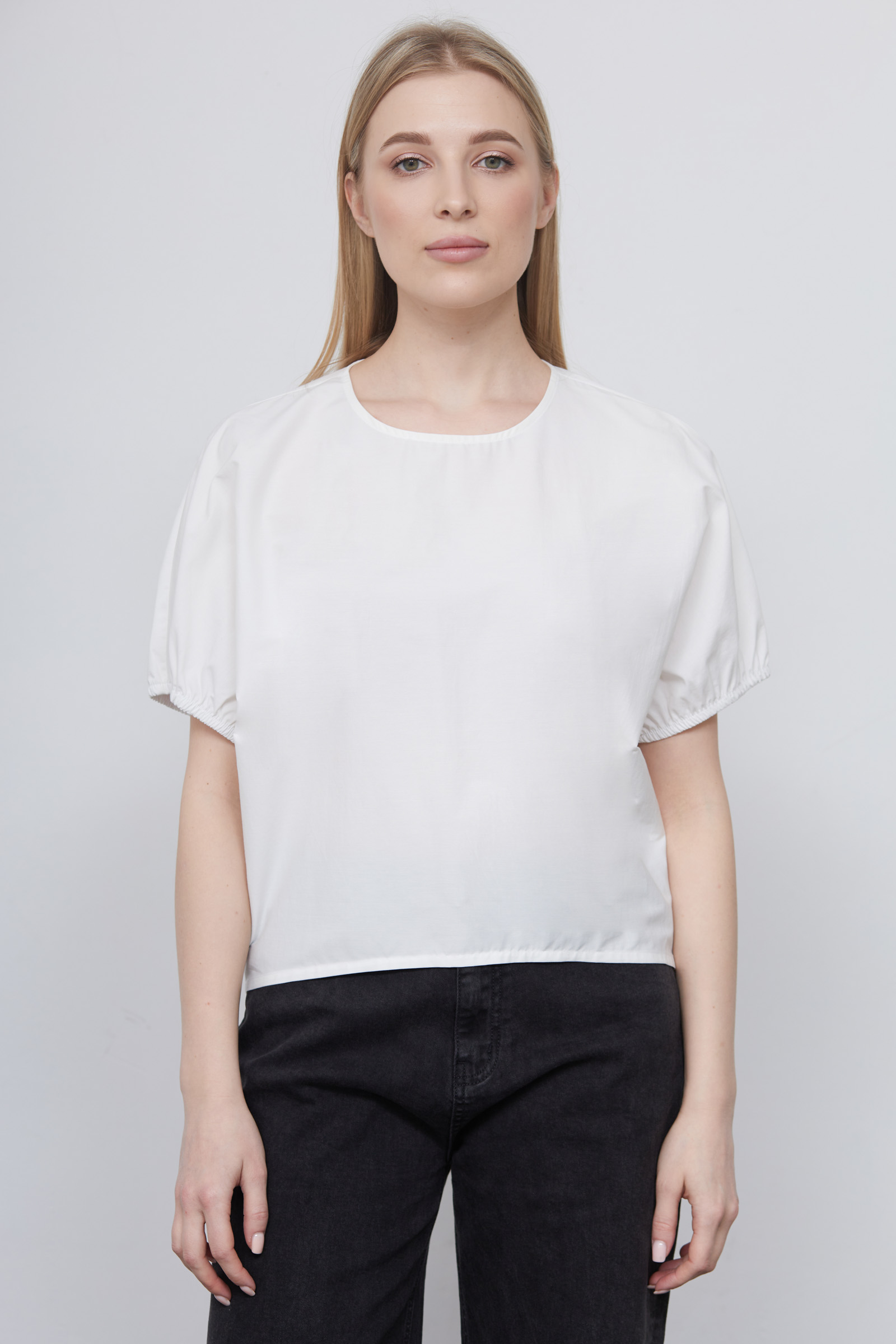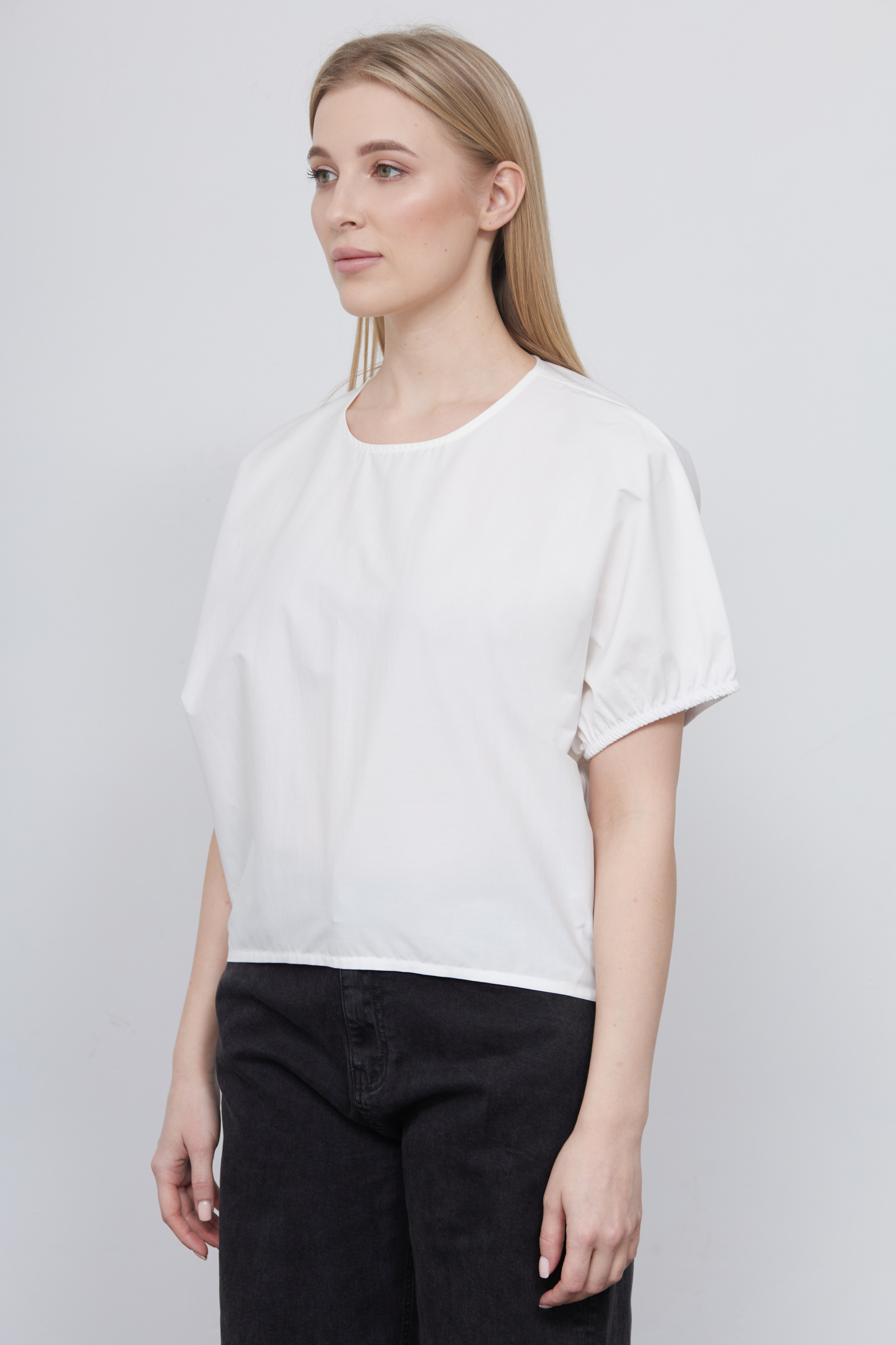 Укороченная блузка oversize из эластичного сатина с короткими рукавами.