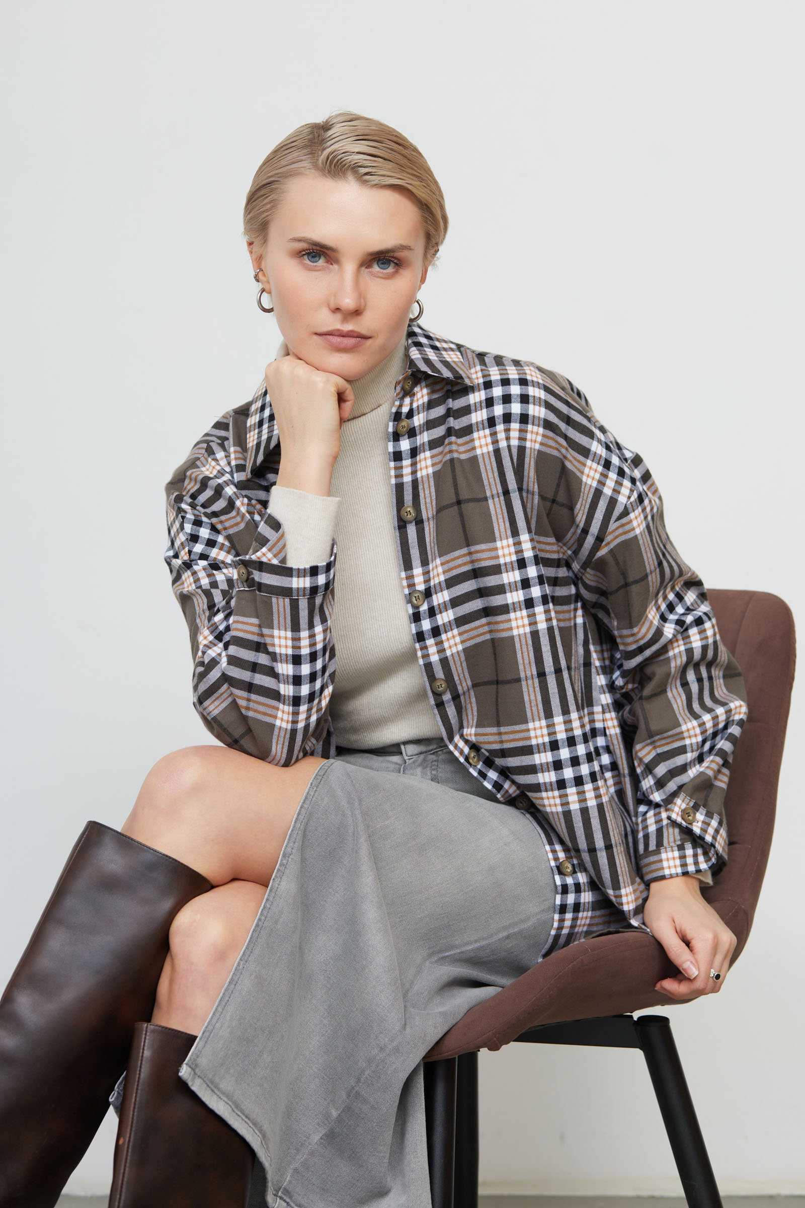 Фланелевая рубашка oversize в клетку со скошенными манжетами.