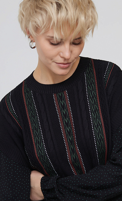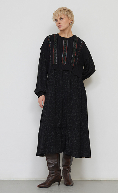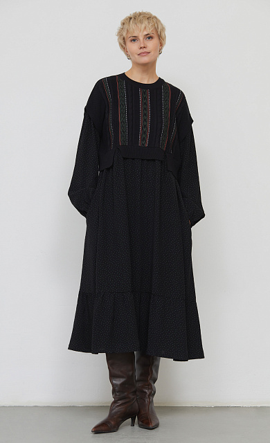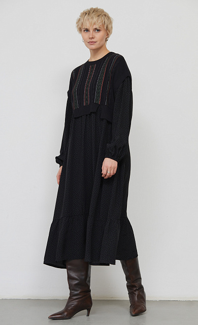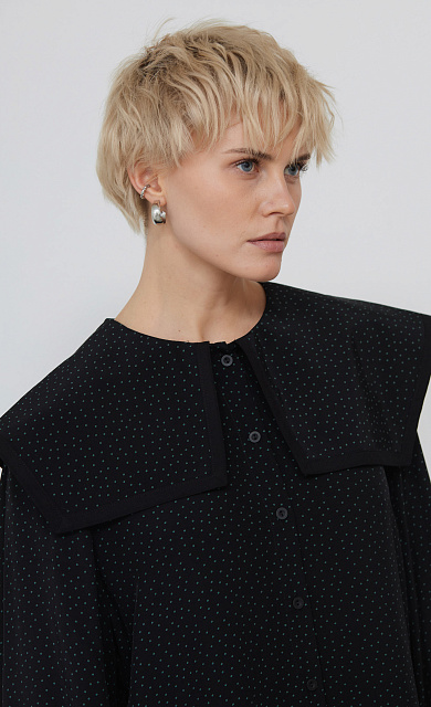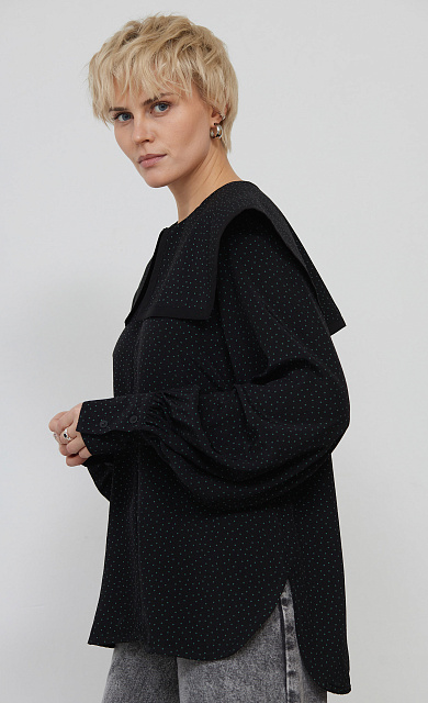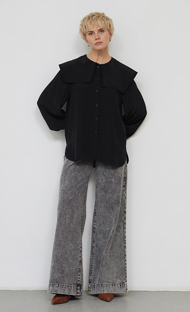 Блузка oversize из хлопка с вышивкой и сборкой на горловине.