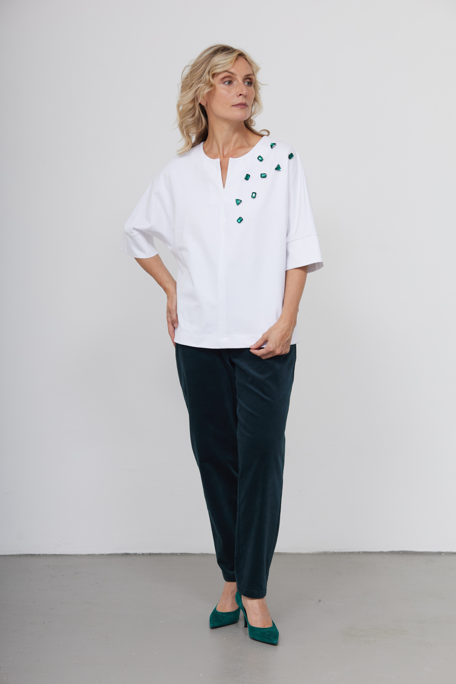 Джемпер oversize из мягкого хлопка с декором из кристаллов.