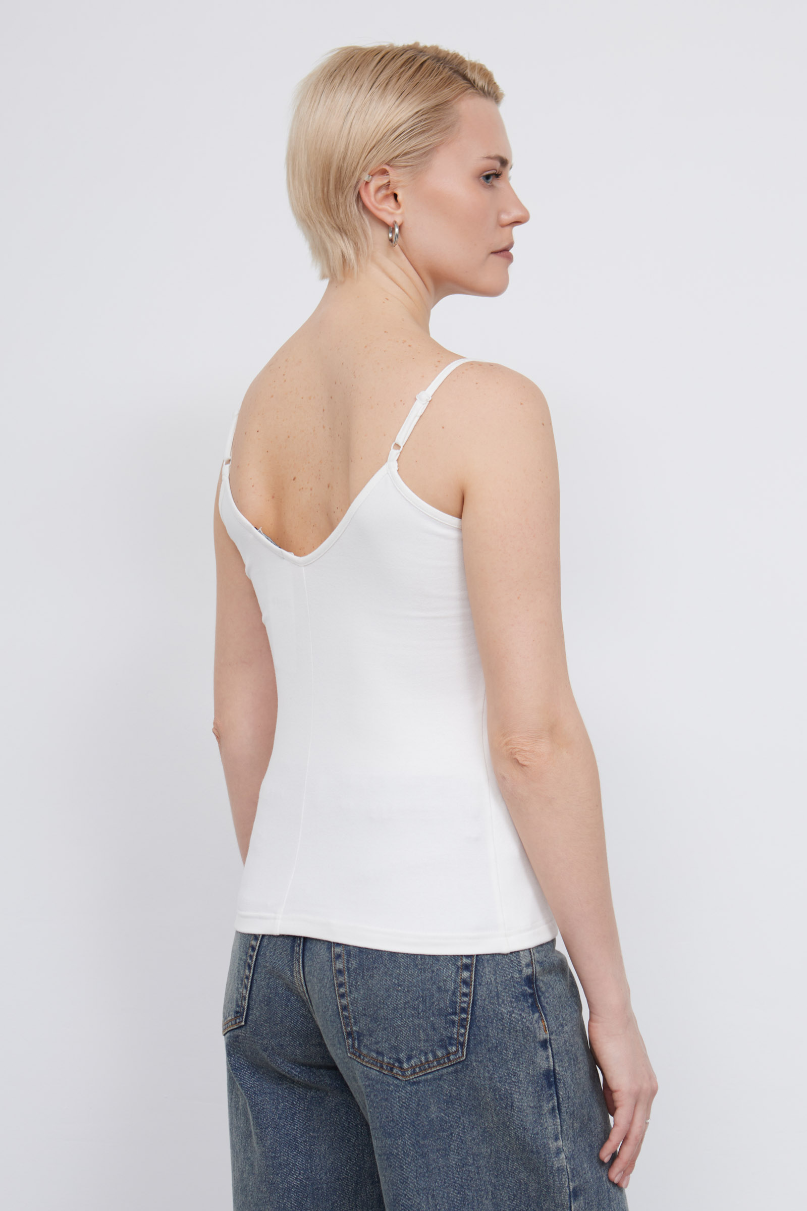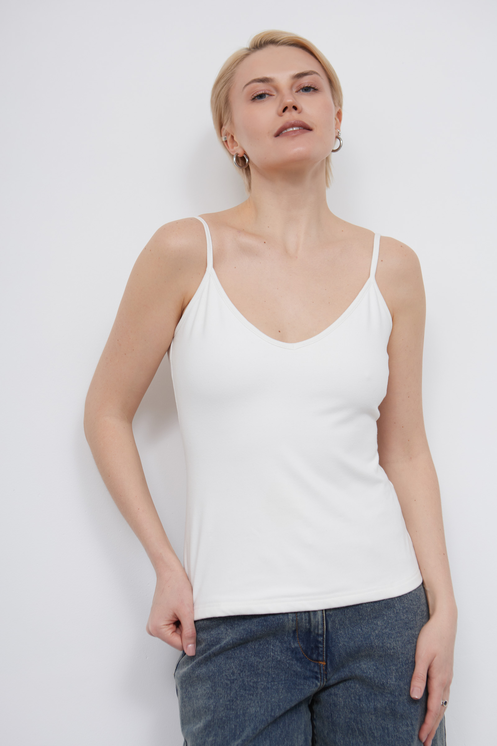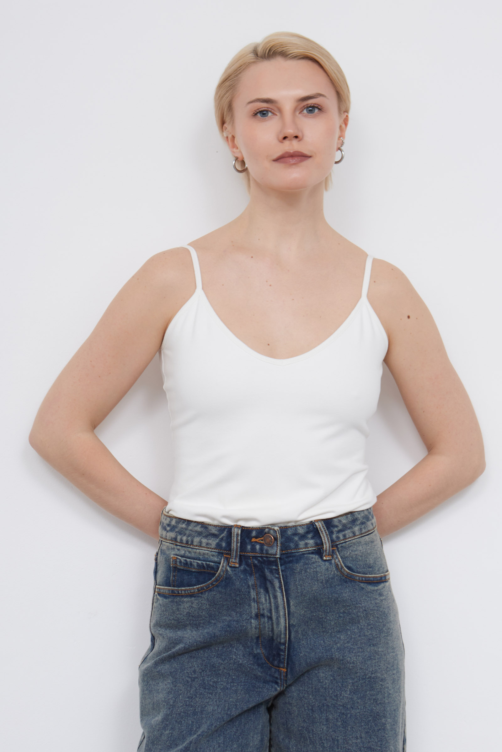 Облегающий топ из плотного хлопкового трикотажа на тонких бретелях.