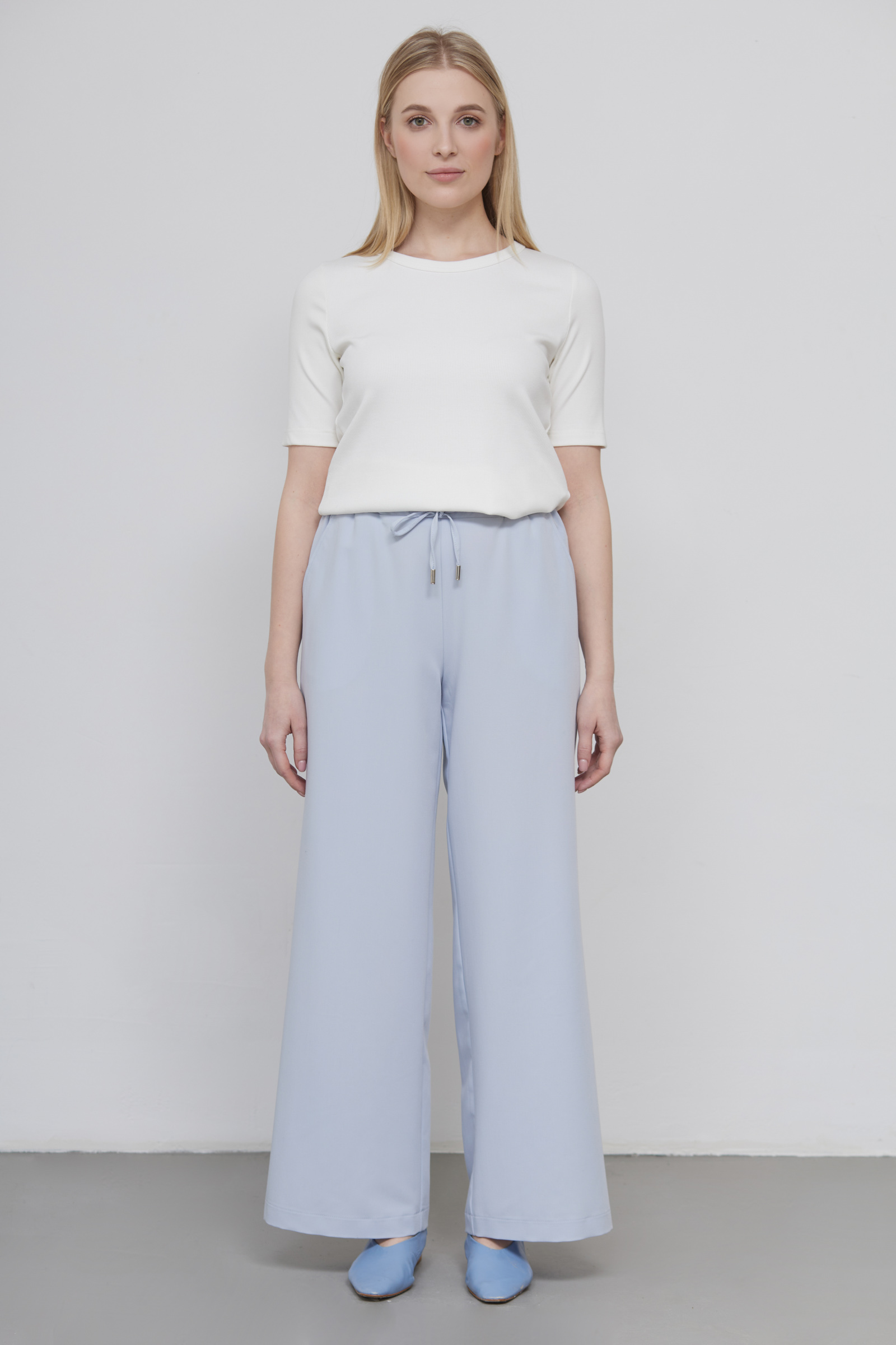 Широкие брюки палаццо на эластичном поясе с кулиской.