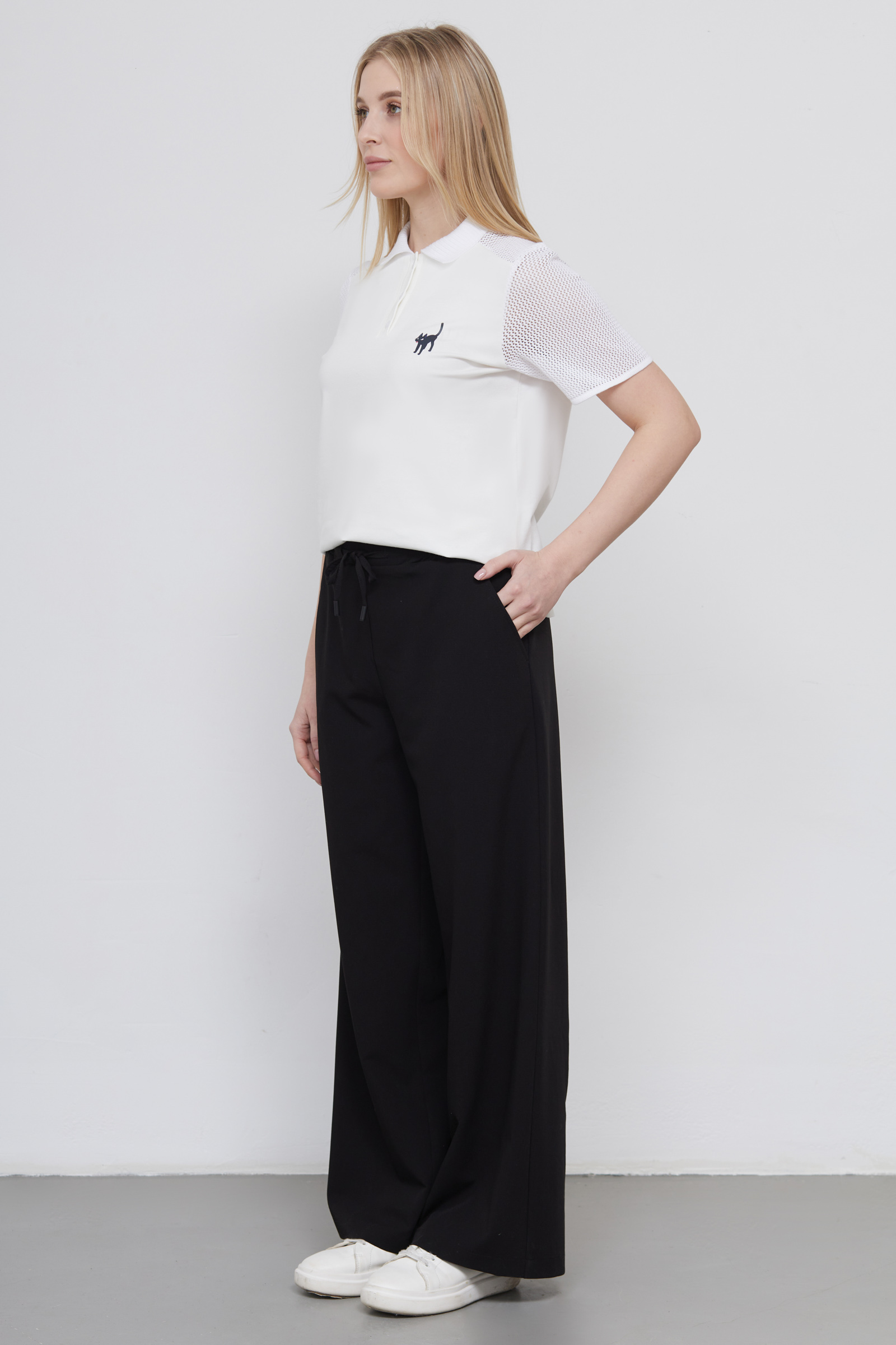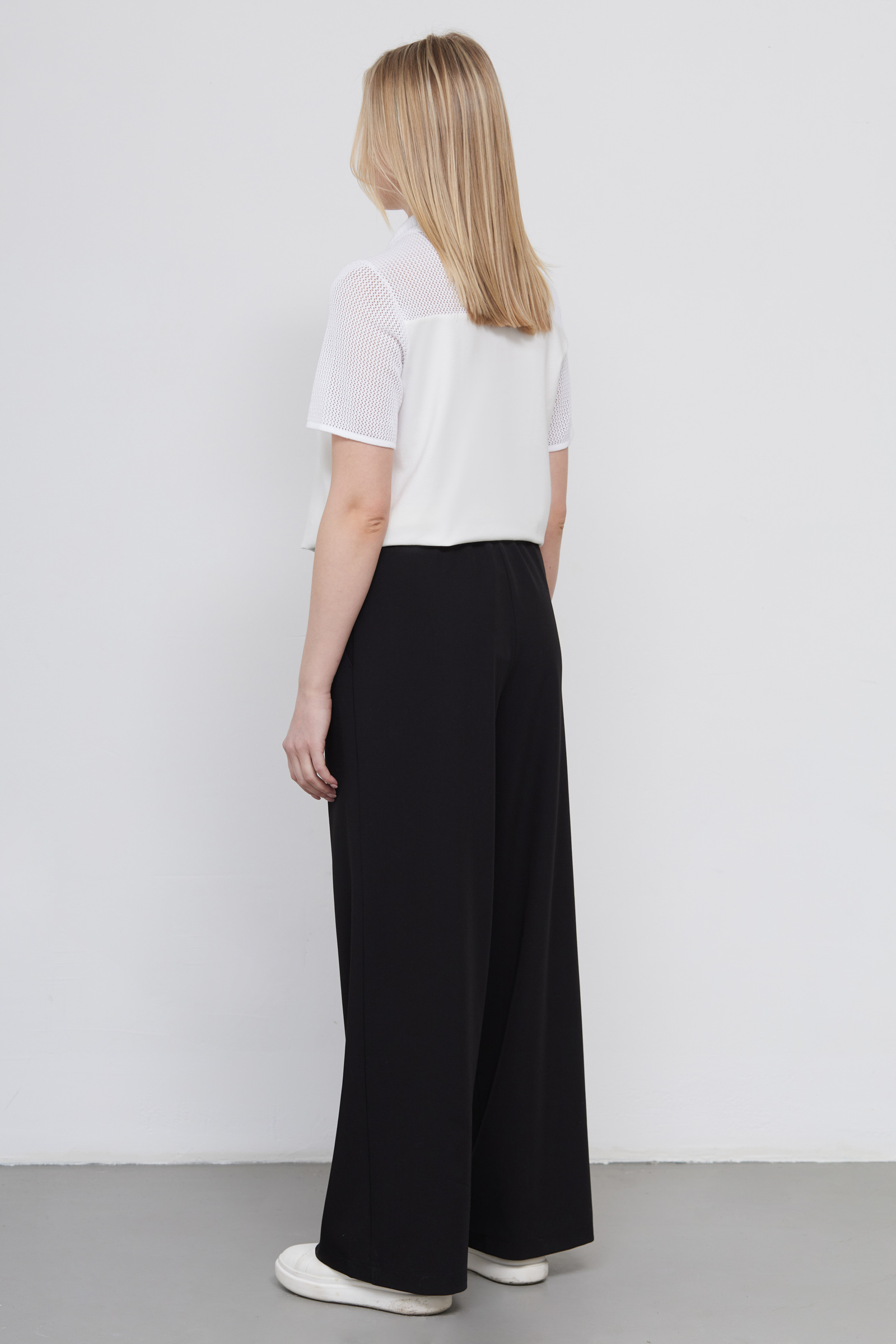 Широкие брюки палаццо на эластичном поясе с кулиской.