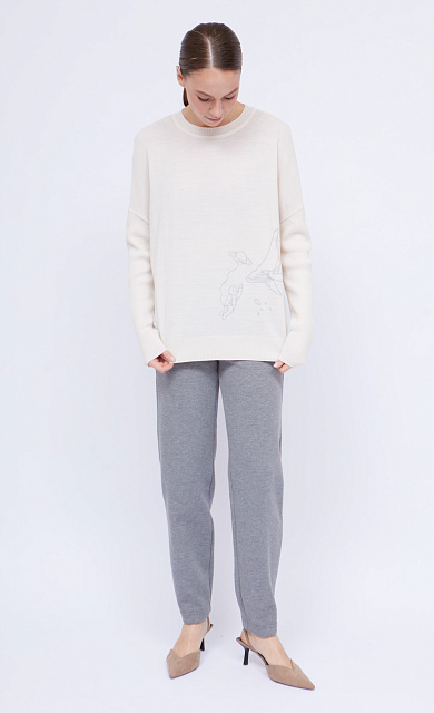 Утепленные брюки слегка зауженные к низу с эластичным поясом по спинке.