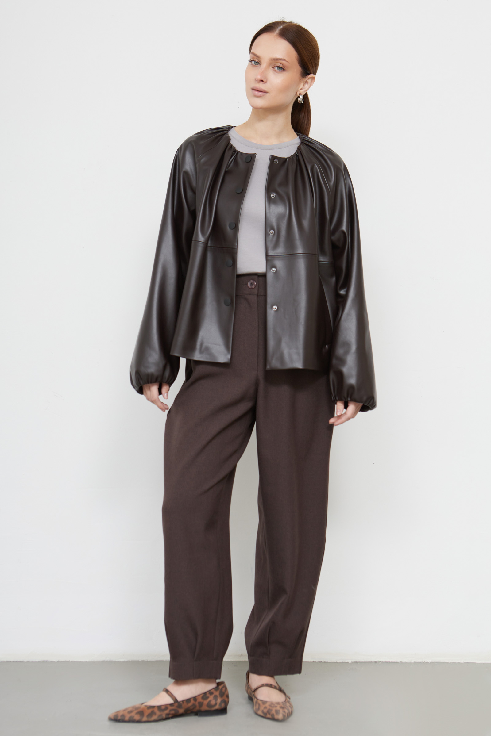 Объемные брюки-слоучи из мягкой костюмной ткани.