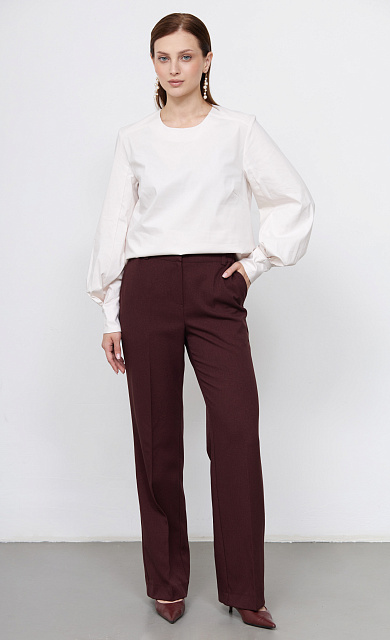 Слегка зауженные брюки из микровельвета.
