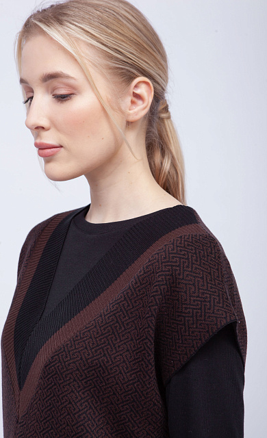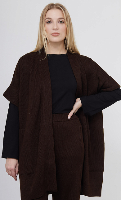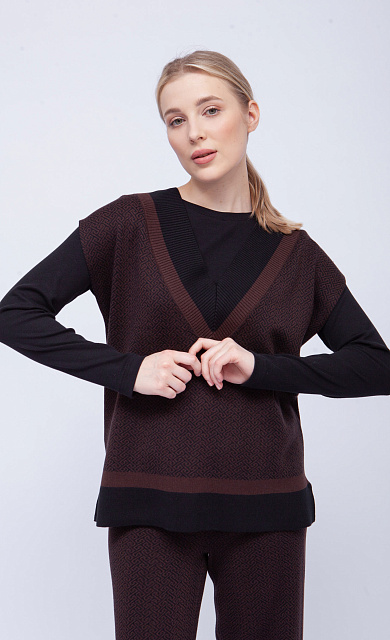 Прямые брюки из вязаного полушерстяного трикотажа с отворотами по низу.