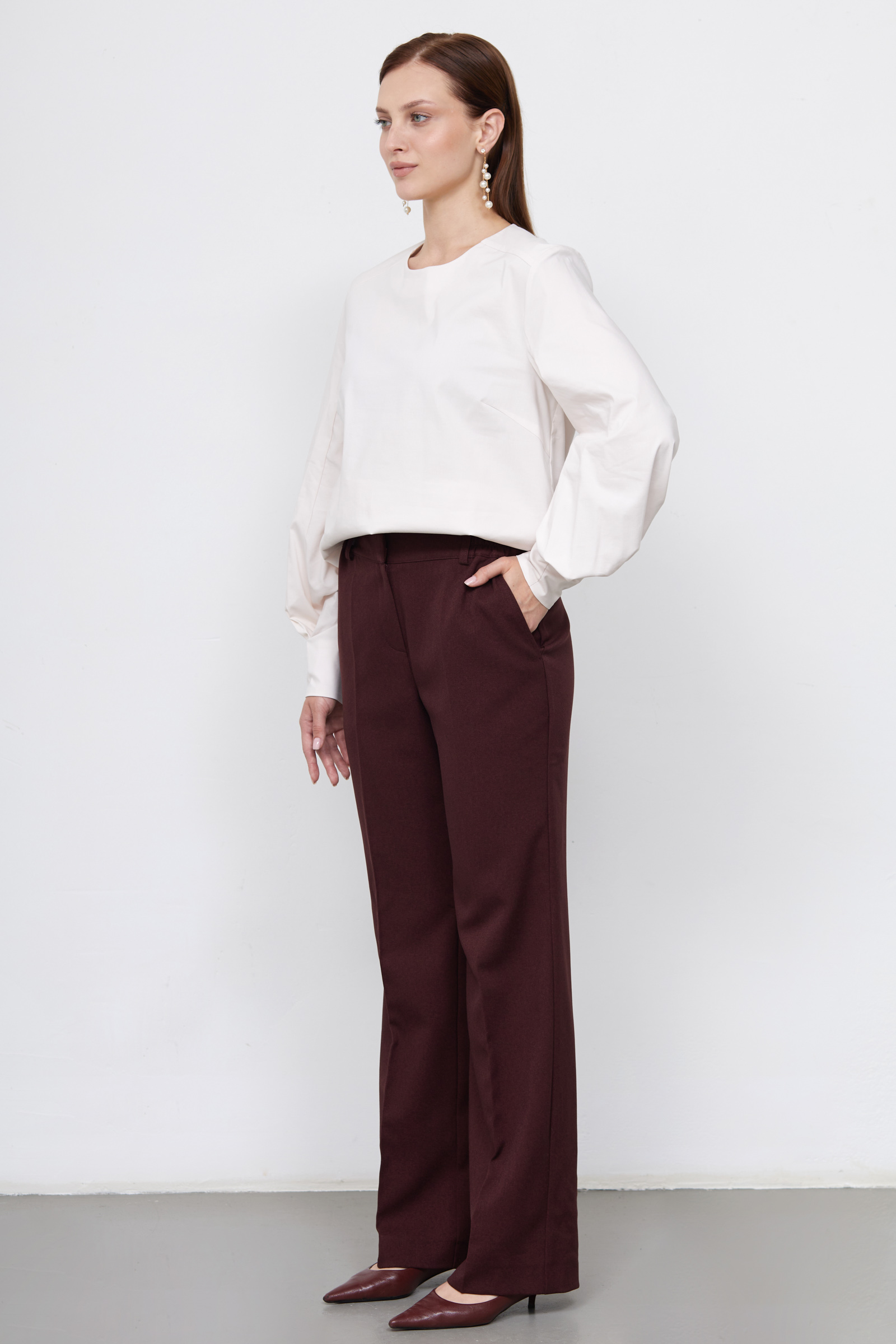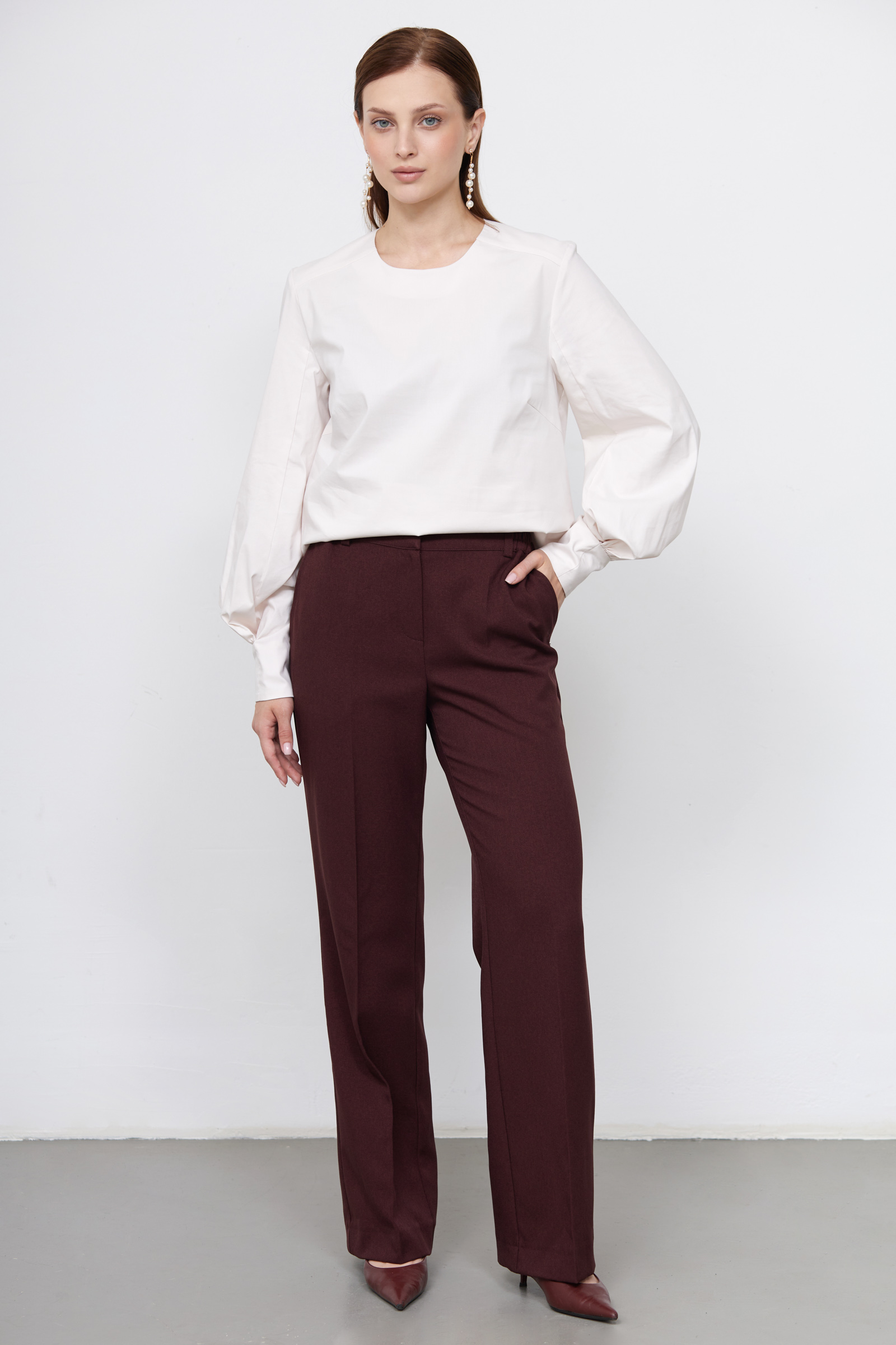Классические прямые брюки из поливискозы на эластичном поясе.