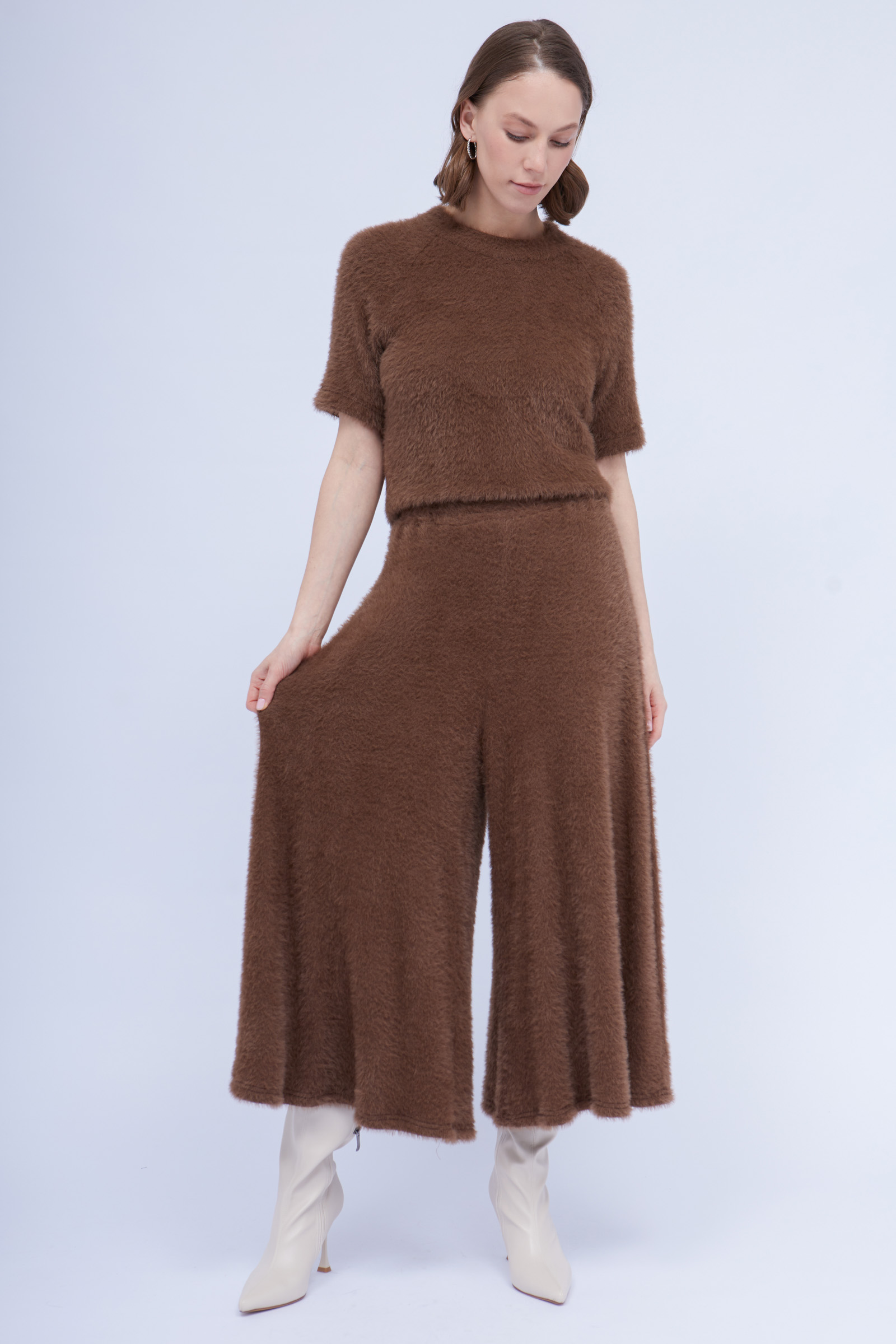Юбка-брюки из пушистого трикотажа на эластичном поясе.