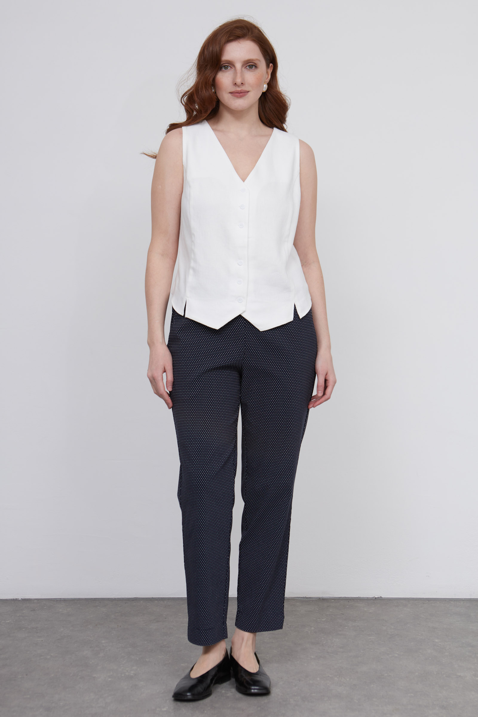 Брюки бананы из мягкой эластичной вискозы в мелкий горошек.