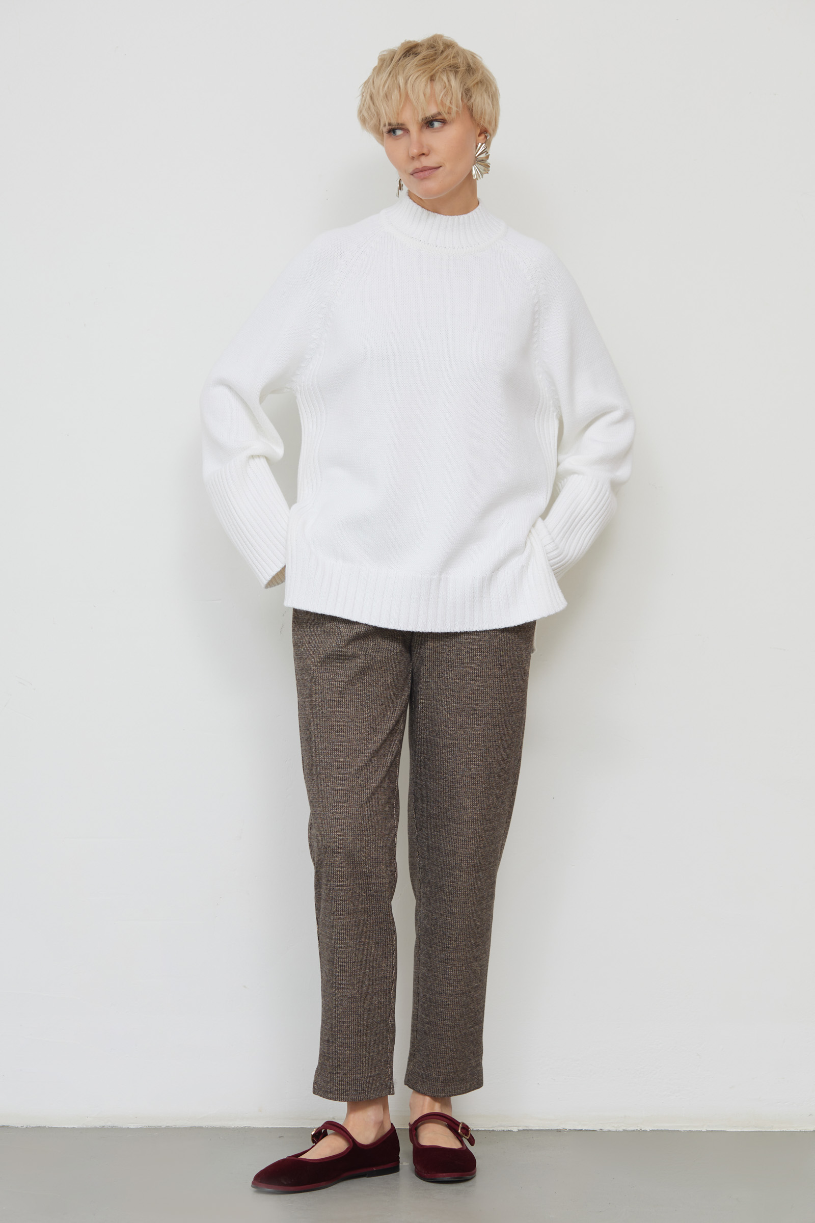 Брюки-бананы из мягкой костюмной ткани с шерстью на эластичном поясе.
