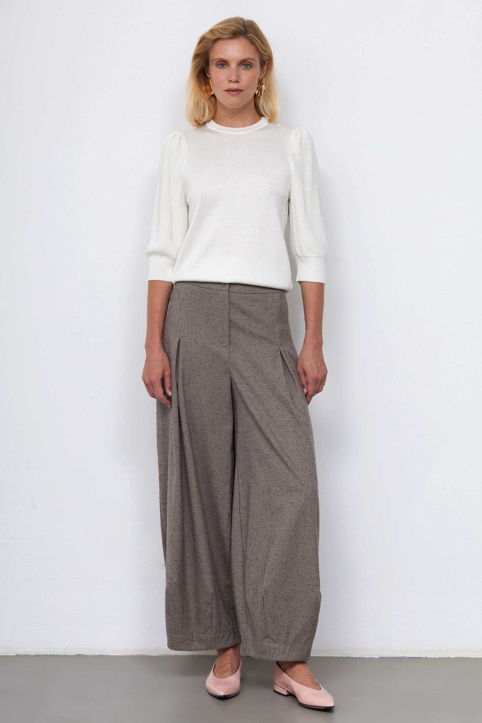 Объемные брюки в стиле бохо из мягкой поливискозы с меланжевым эффектом.