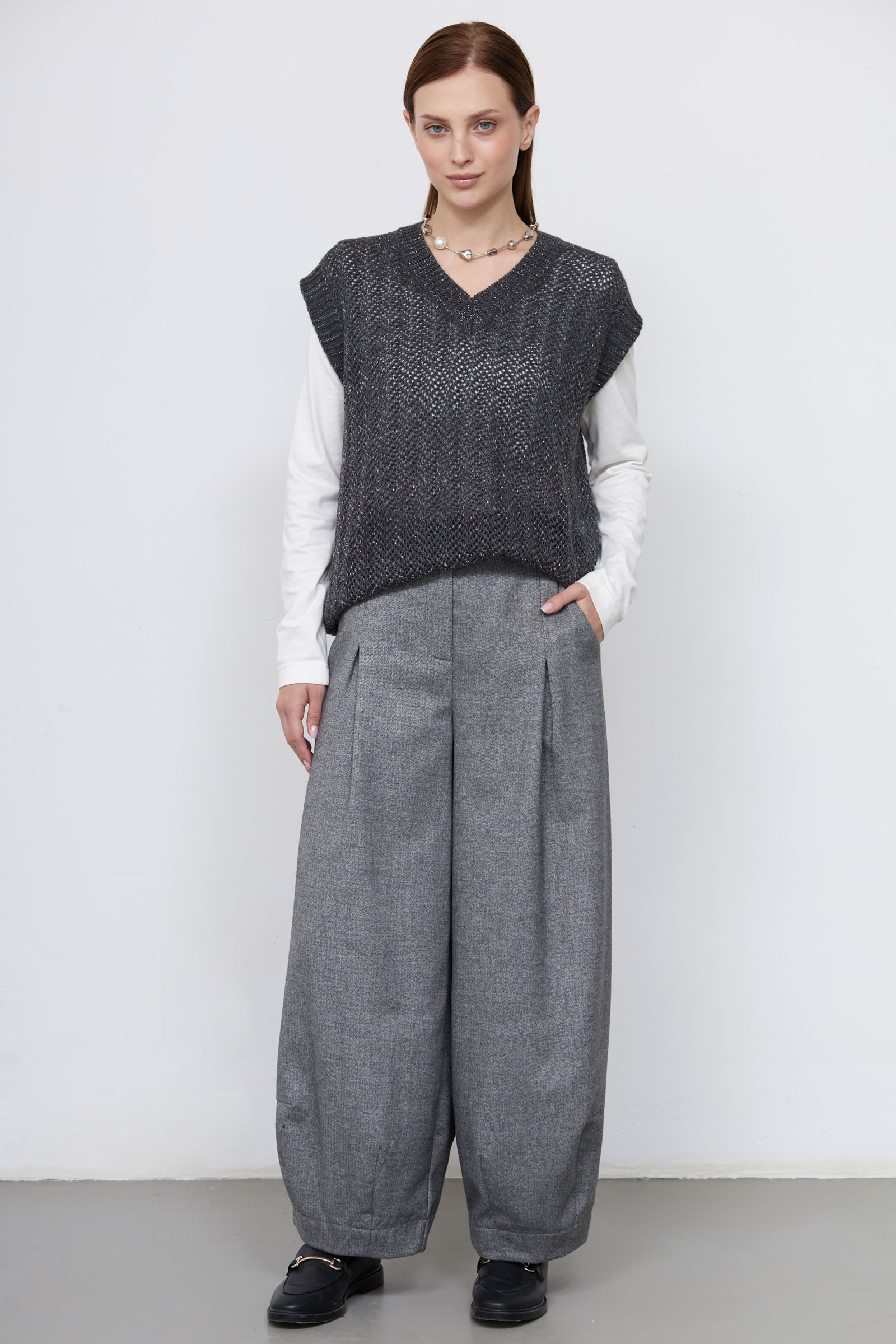 Объемные брюки в стиле бохо из мягкой поливискозы с меланжевым эффектом.