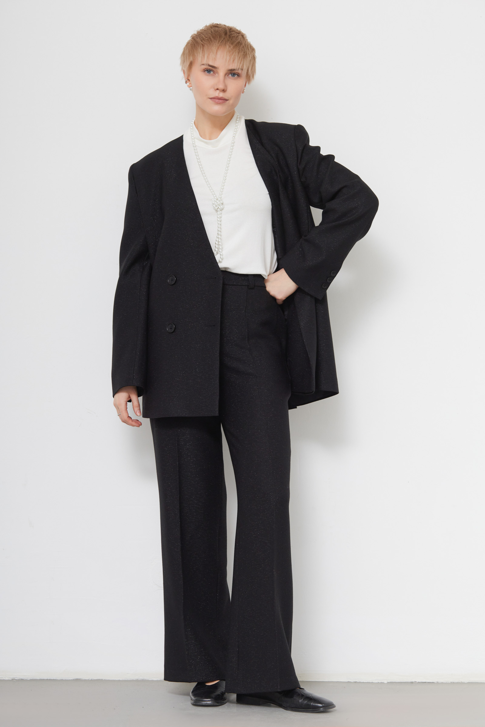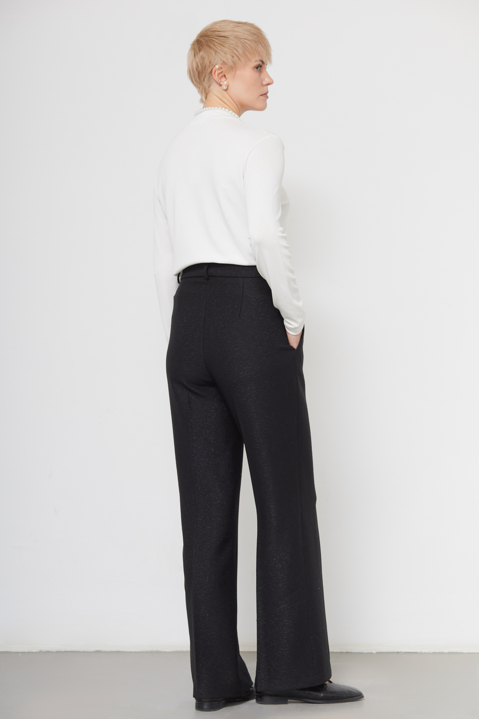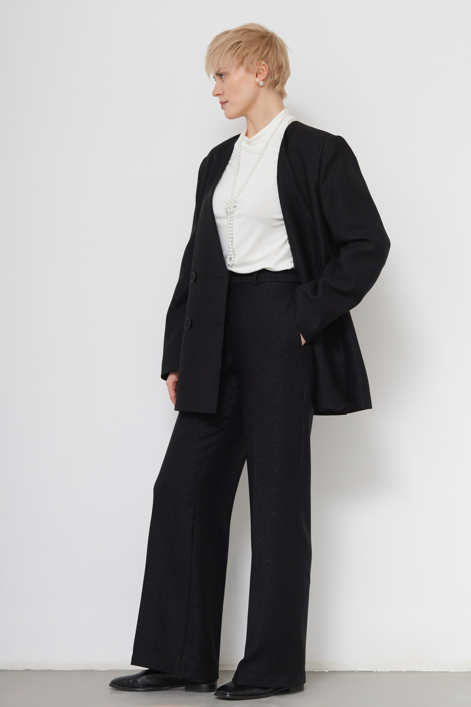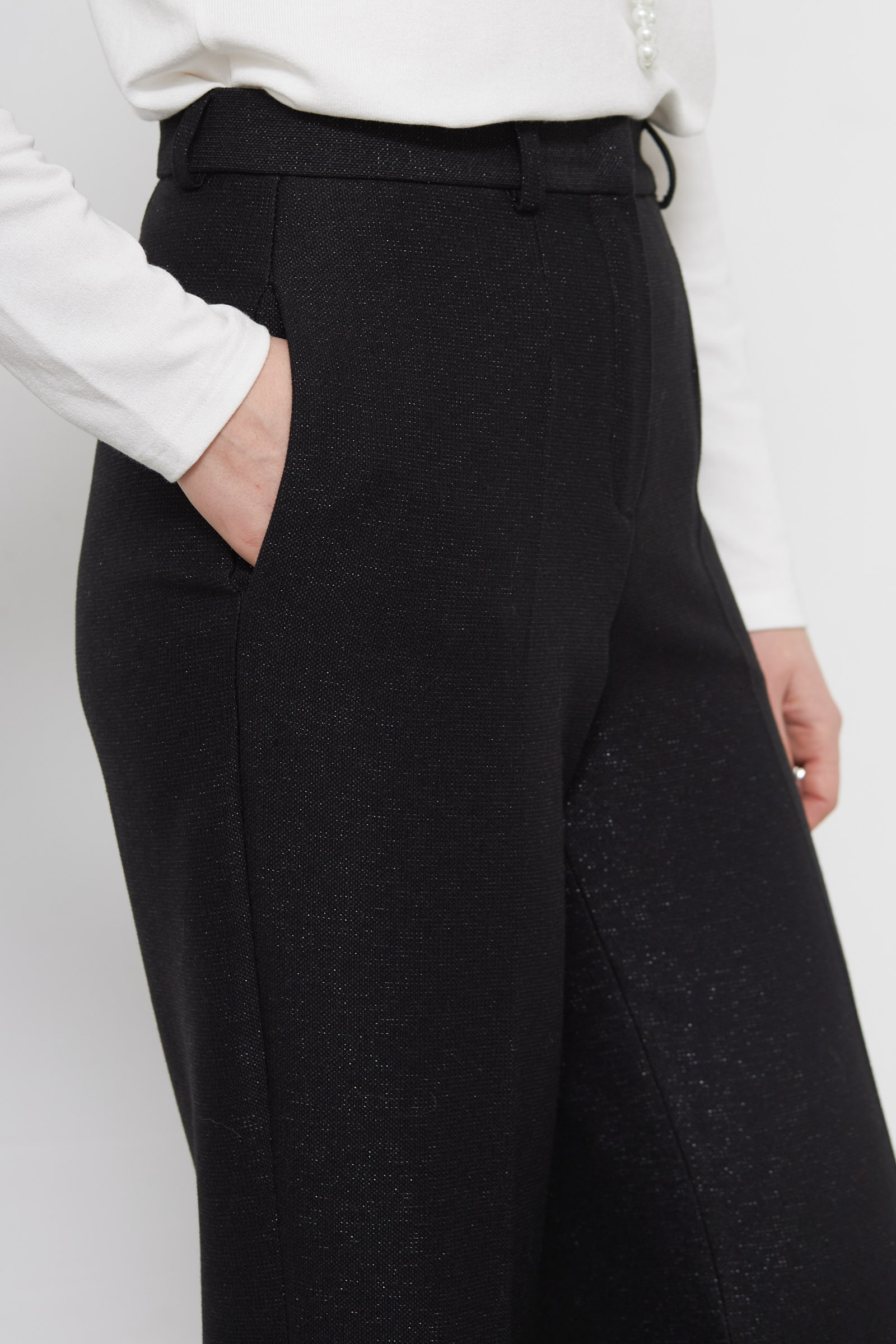 Широкие костюмные брюки из поливискозы с люрексом.