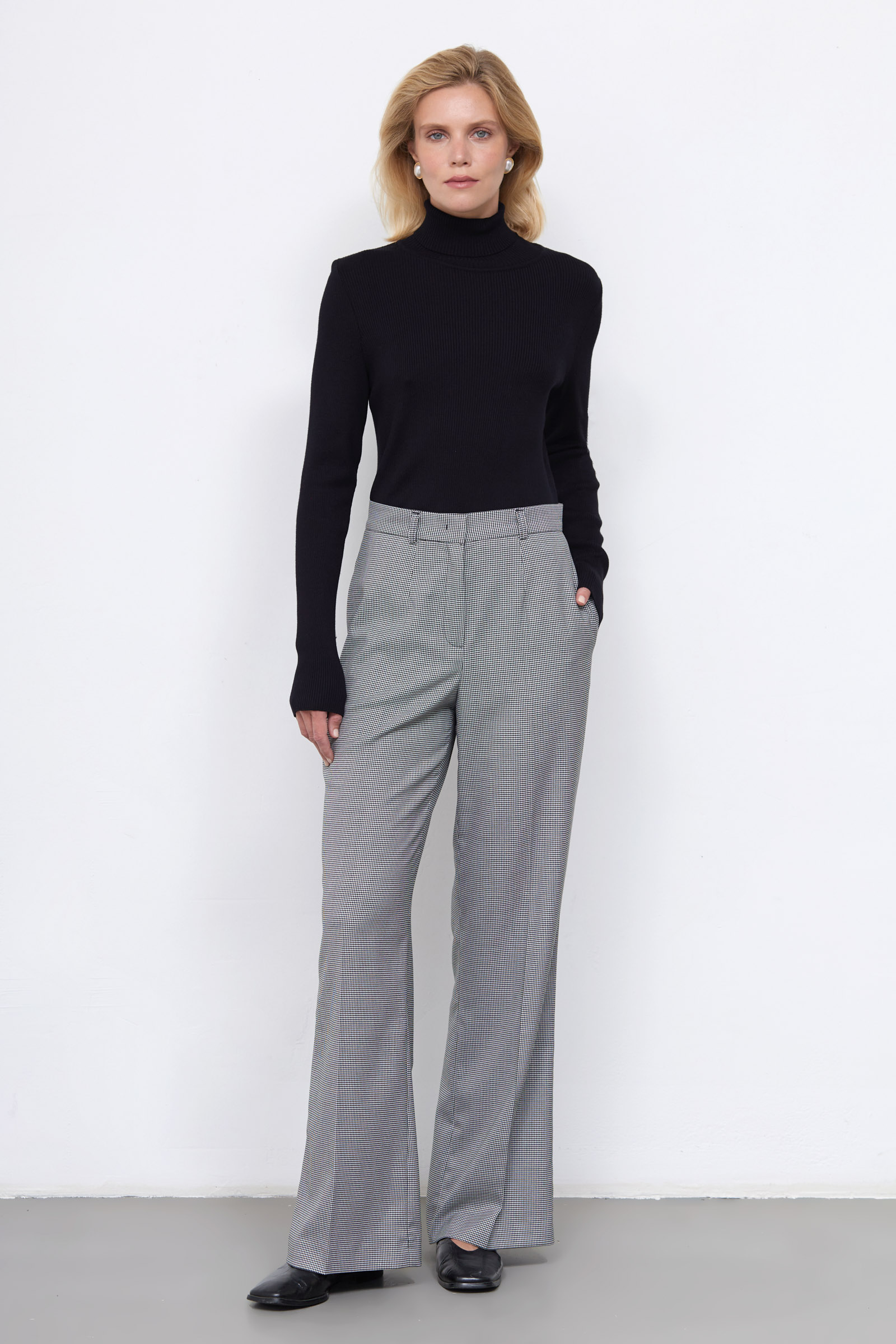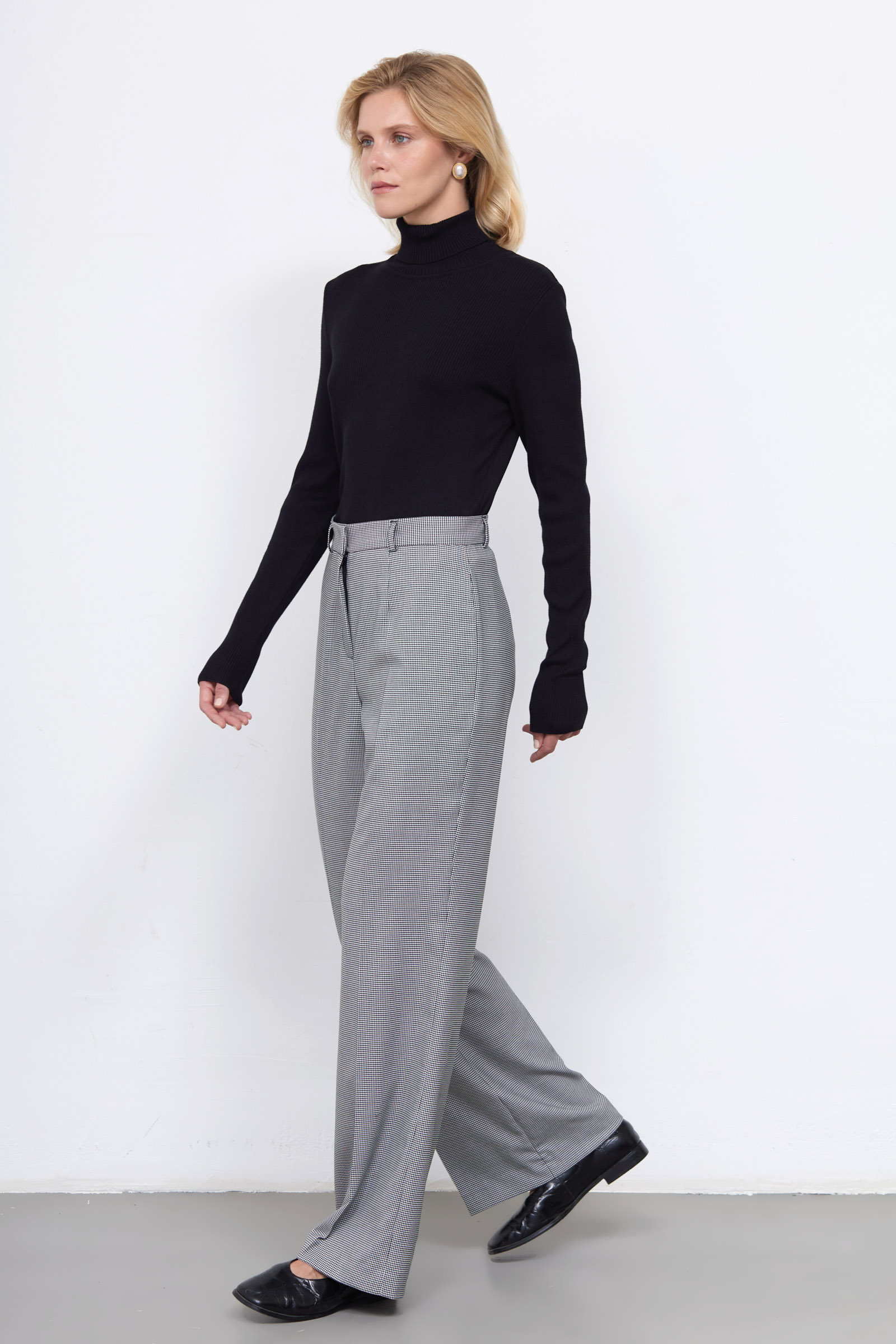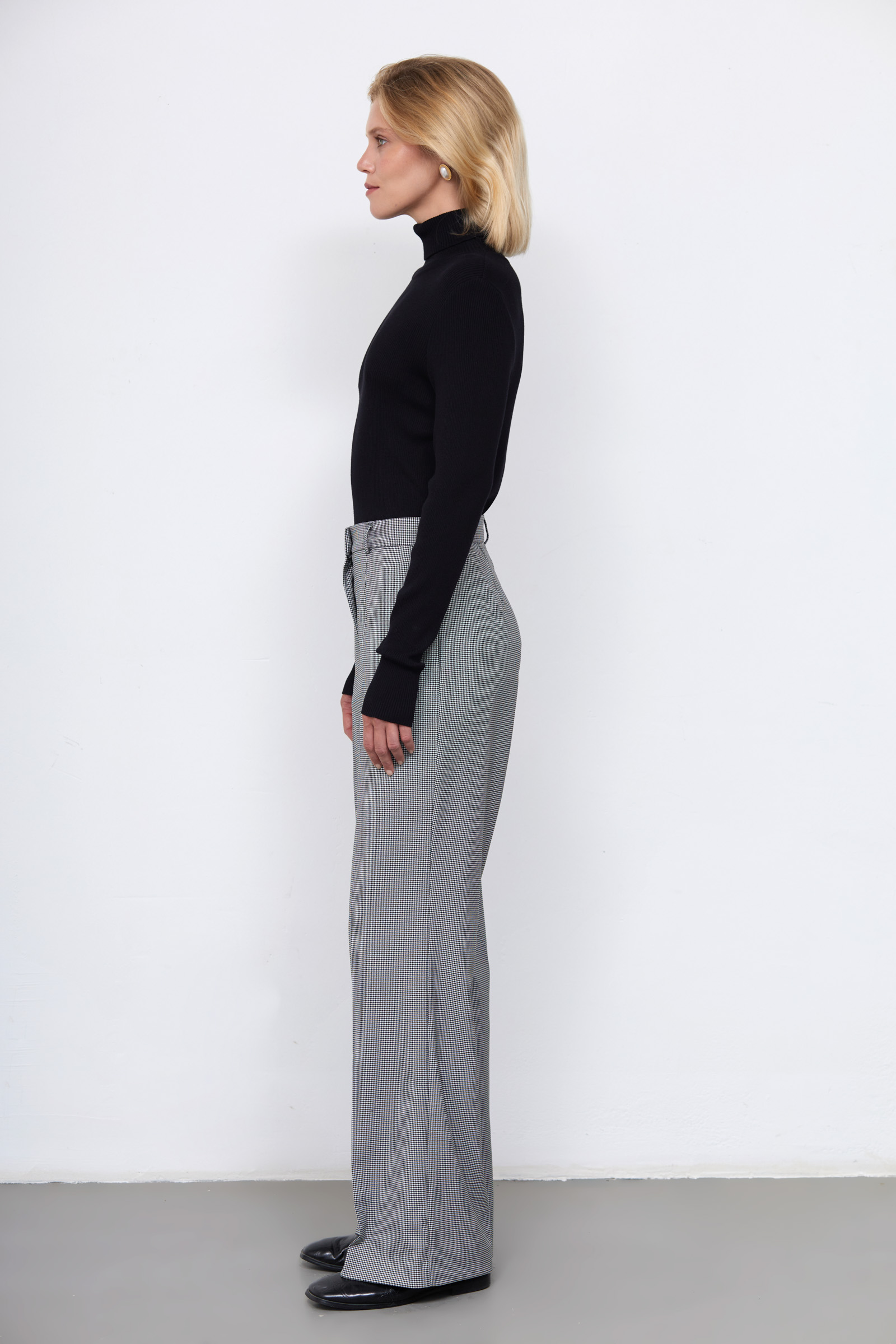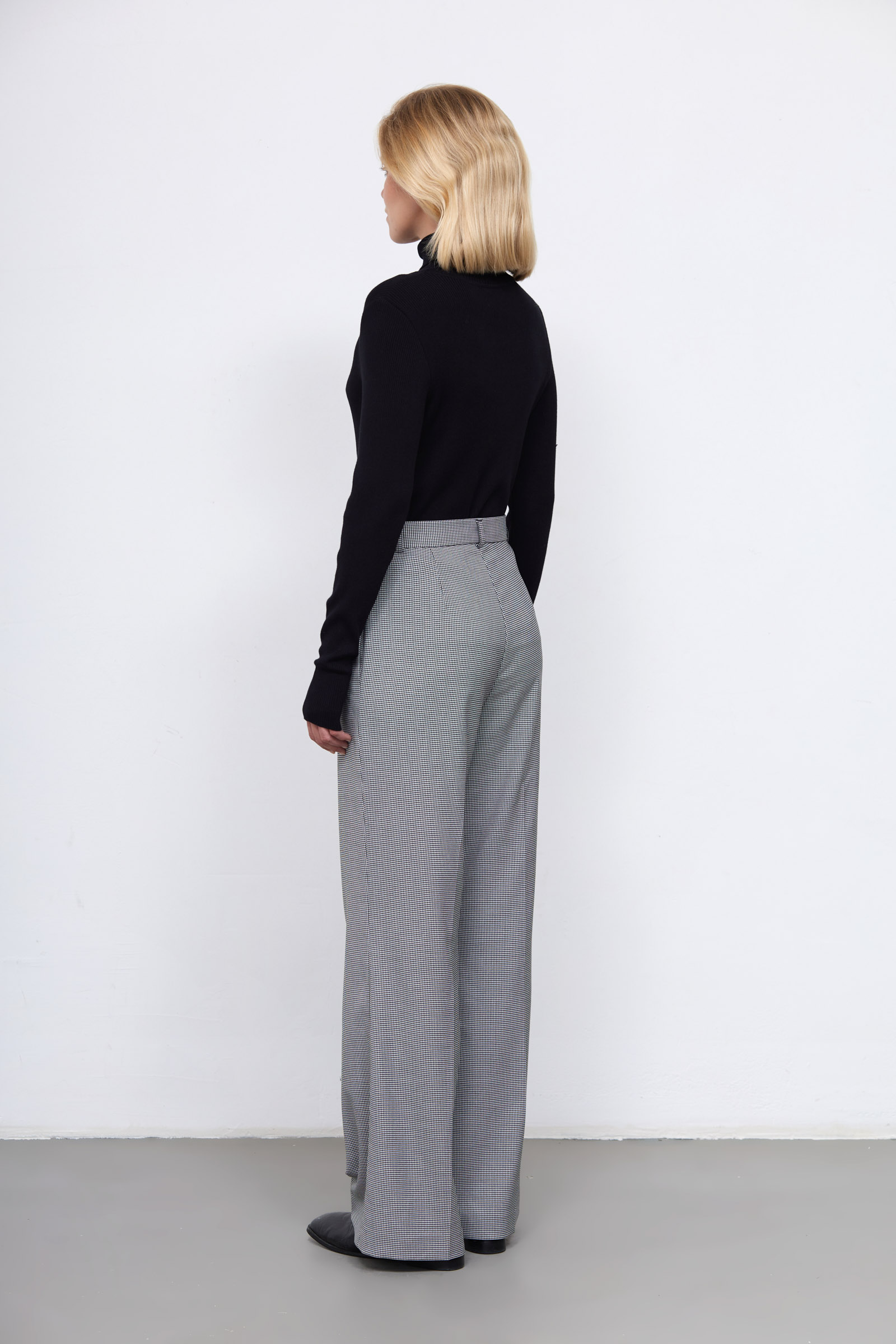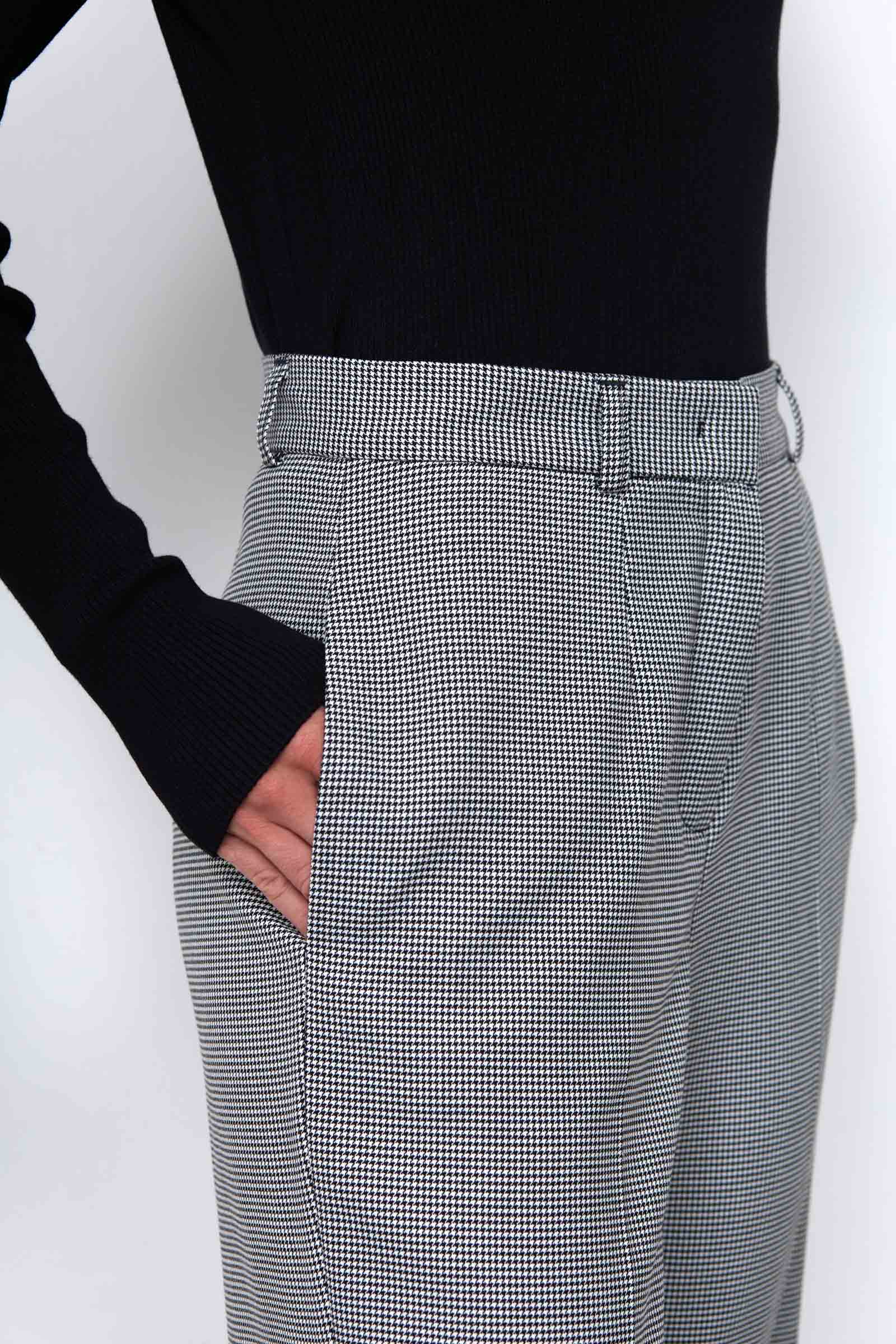 Широкие брюки со стрелками из тонкой костюмной ткани с принтом "пье-де-пуль".