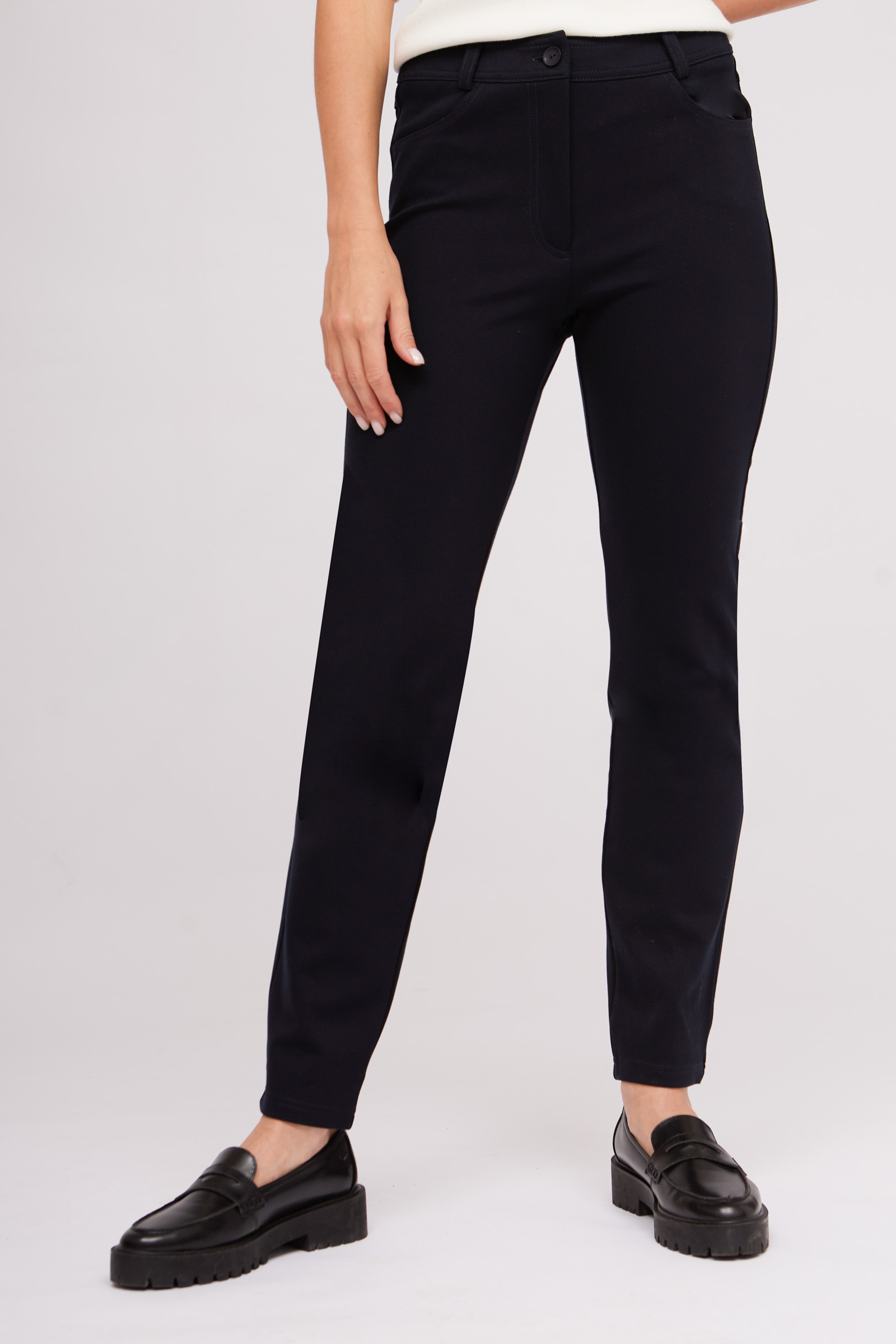 Базовые облегающие брюки из плотного трикотажа с начесом внутри.