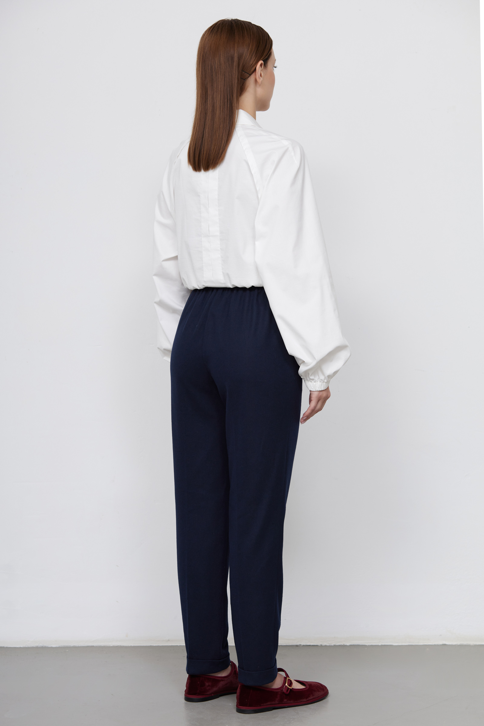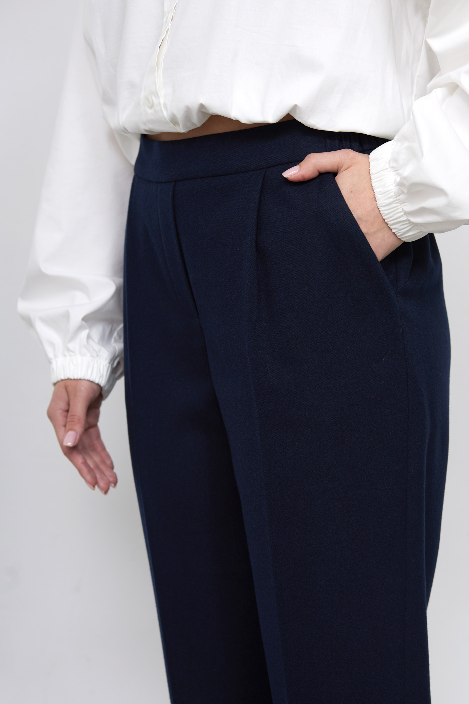 Зауженные брюки из мягкой фланелевой ткани на эластичном поясе.