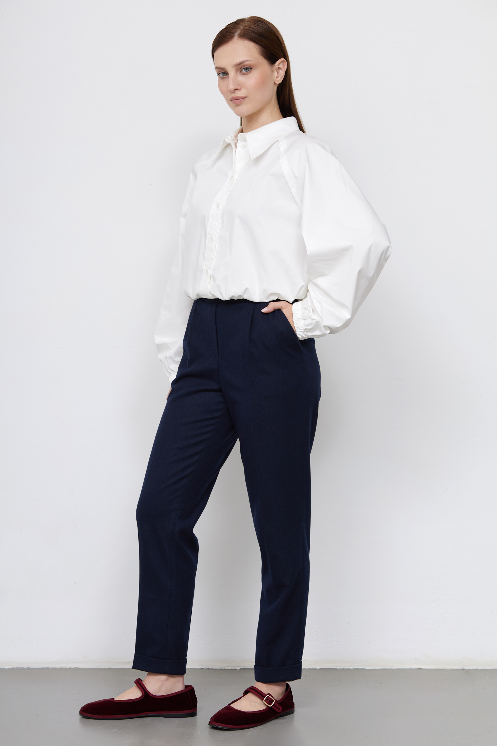 Брюки зауженные с защипами