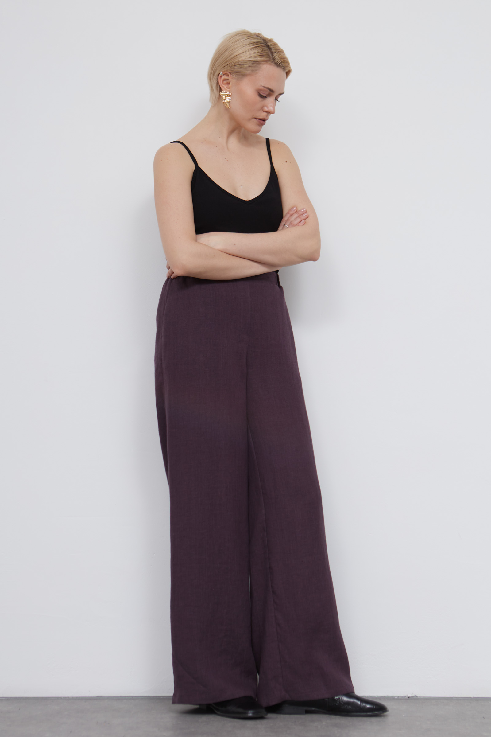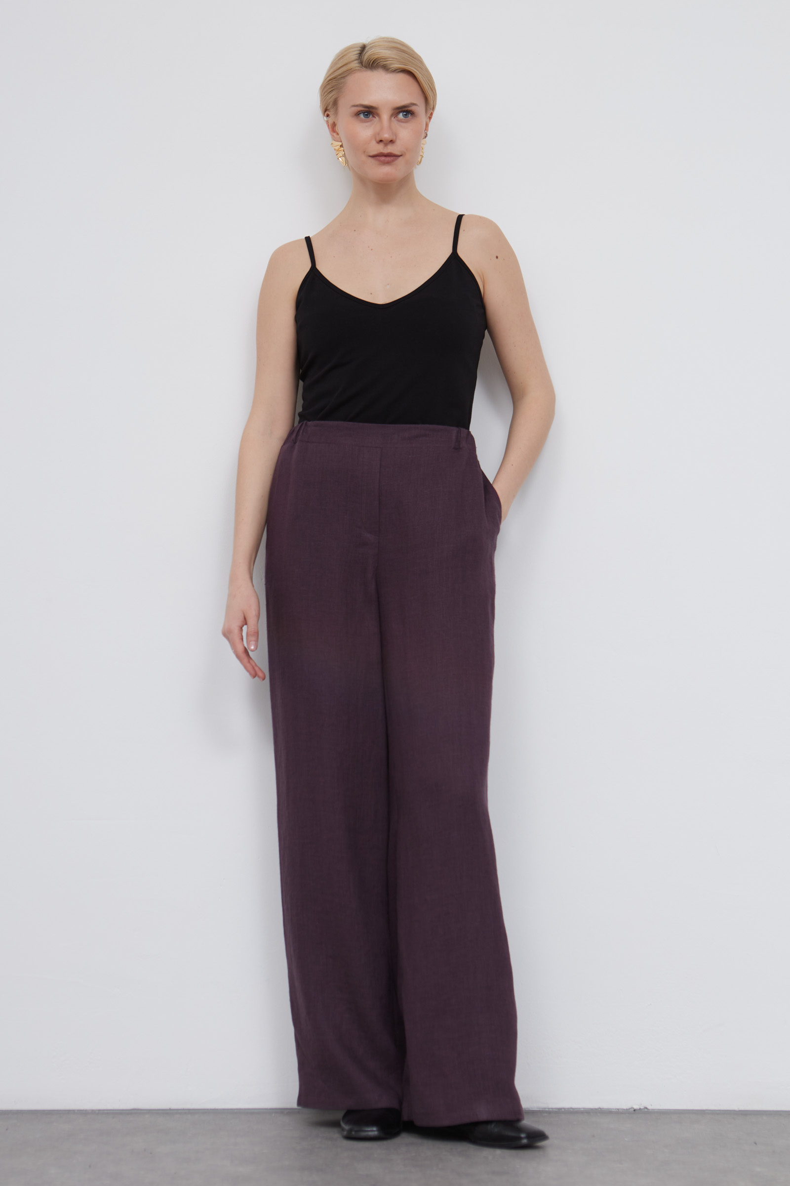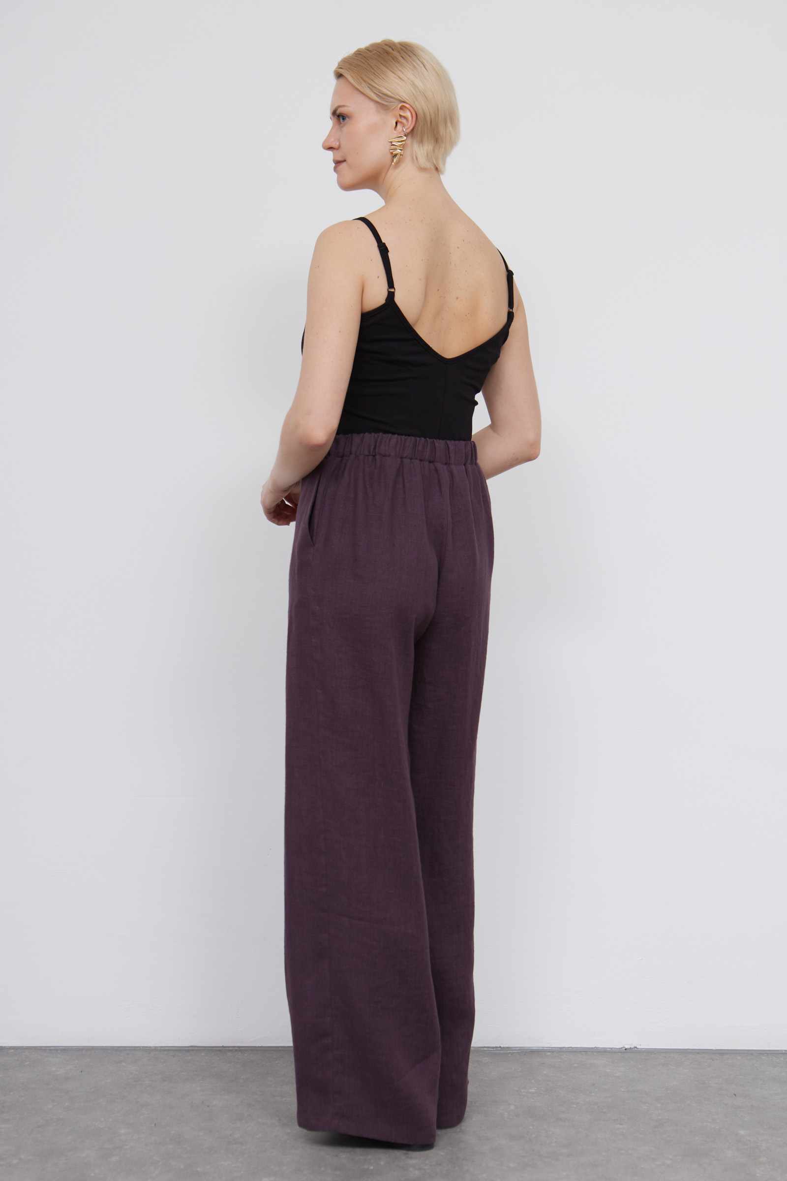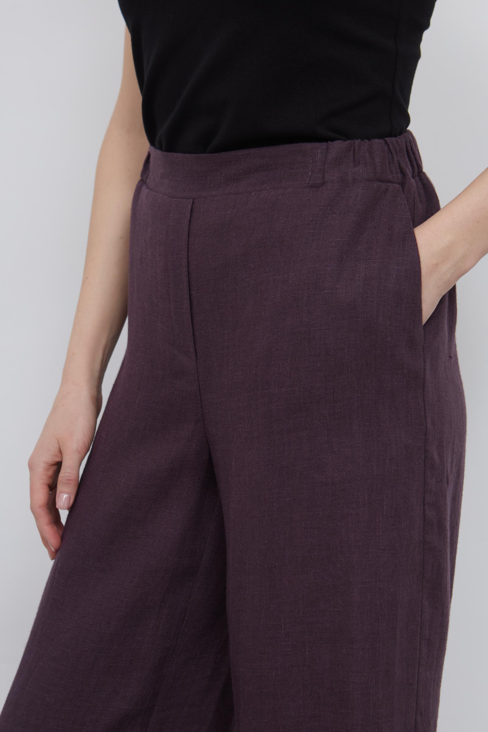 Широкие брюки изо льна на эластичном поясе.