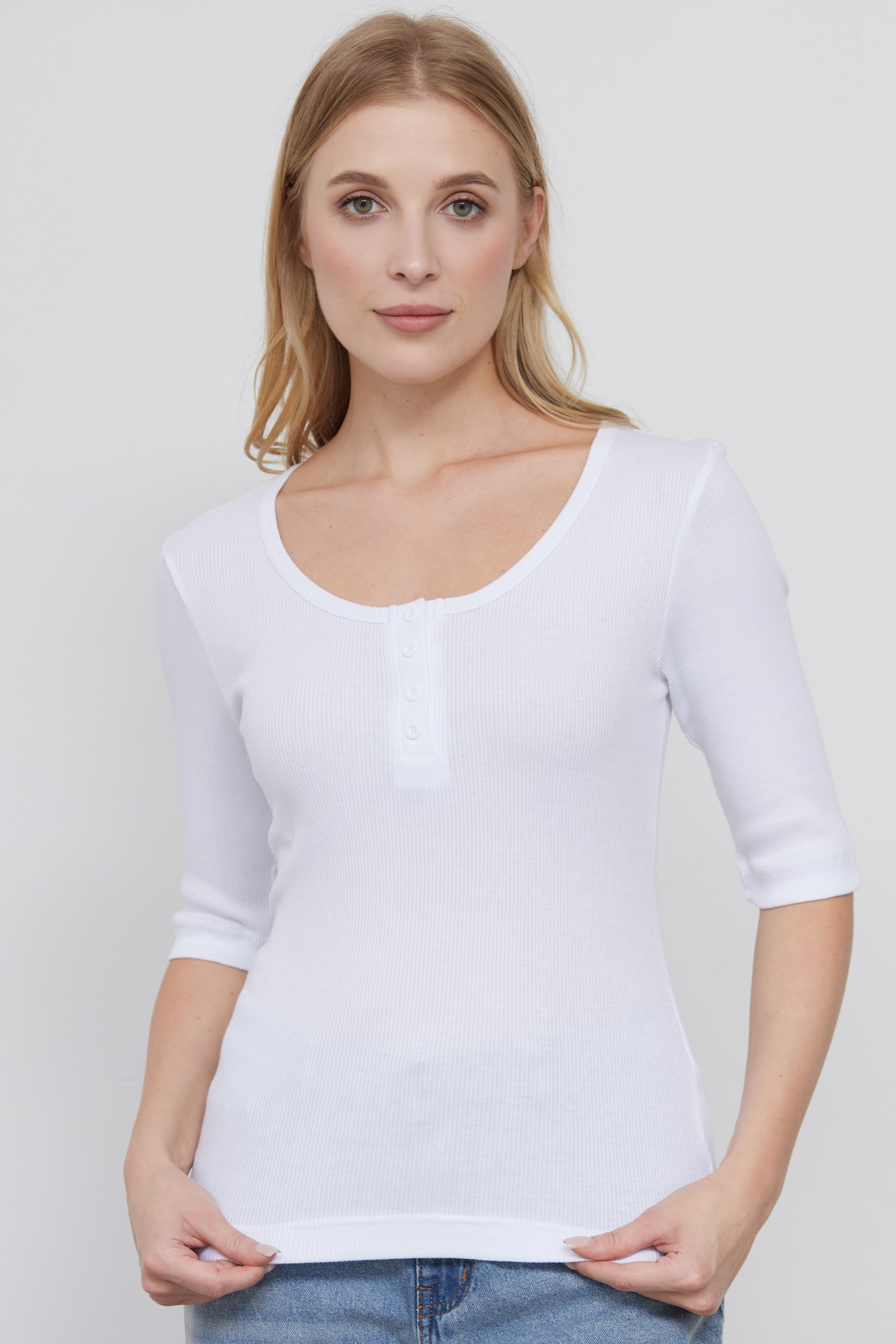 Базовая облегающая футболка в рубчик с планкой на пуговицах.
