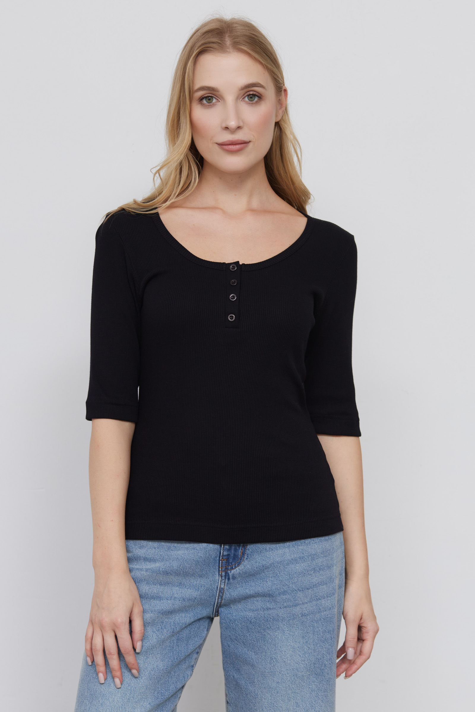 Базовая облегающая футболка в рубчик с планкой на пуговицах.