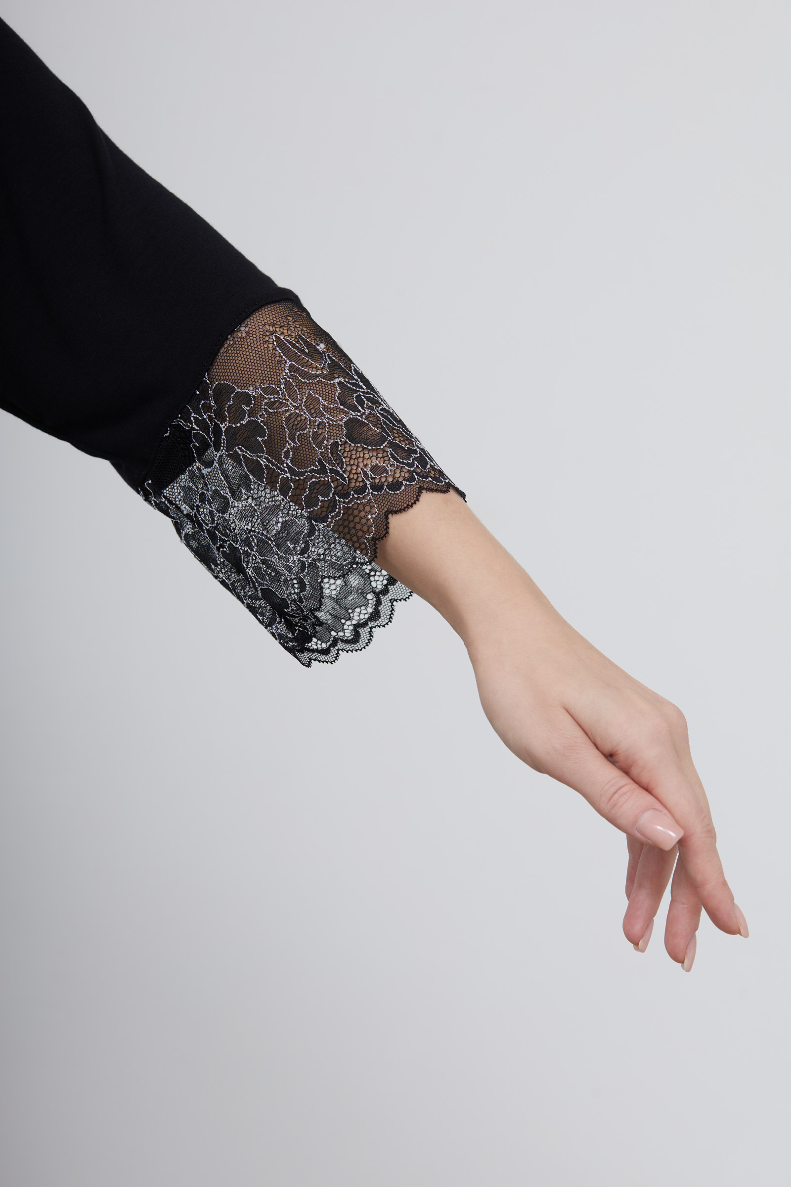 - Рукав реглан с кружевной манжетой