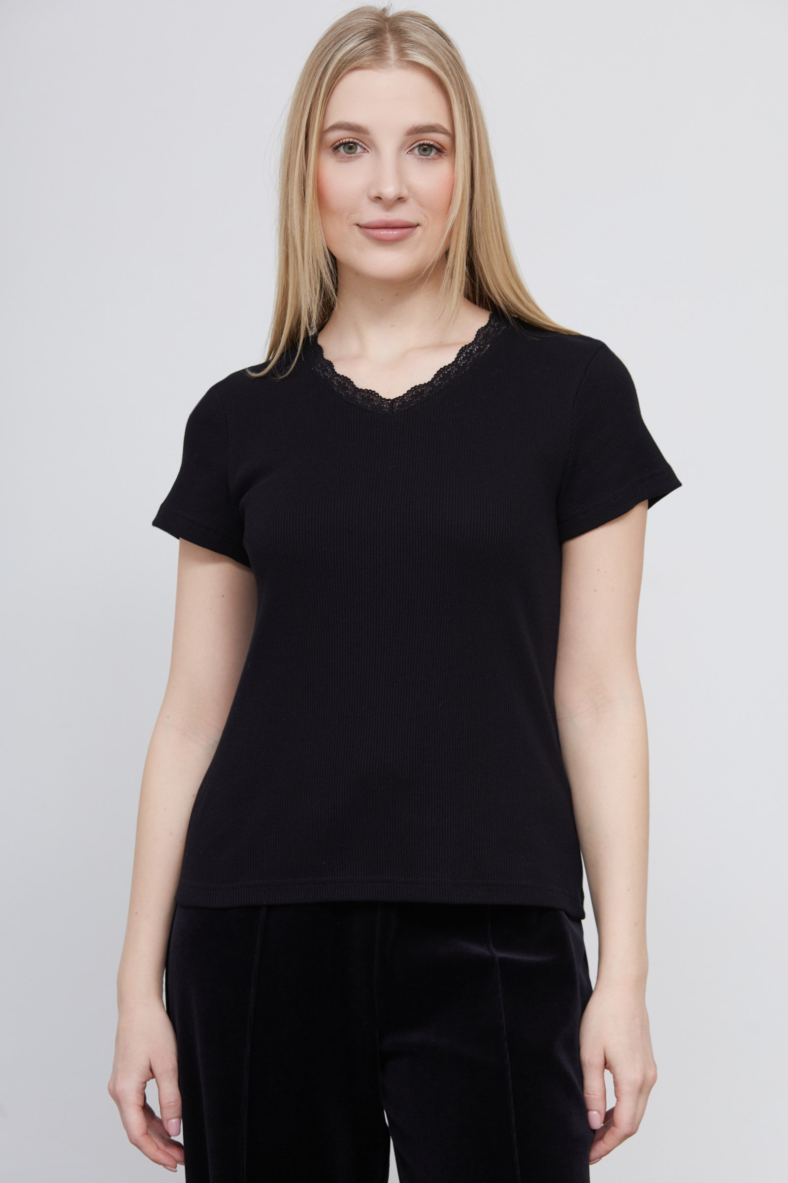 Футболка в рубчик с кружевом