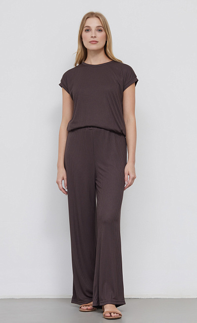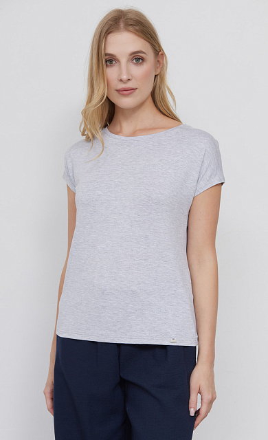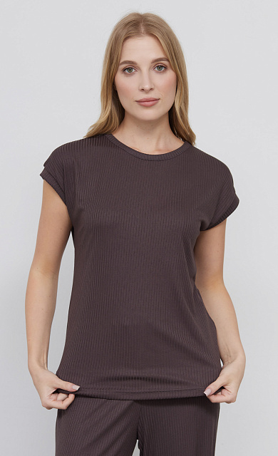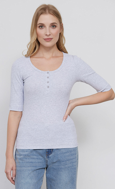 Базовая облегающая майка из меланжевого трикотажа в рубчик.