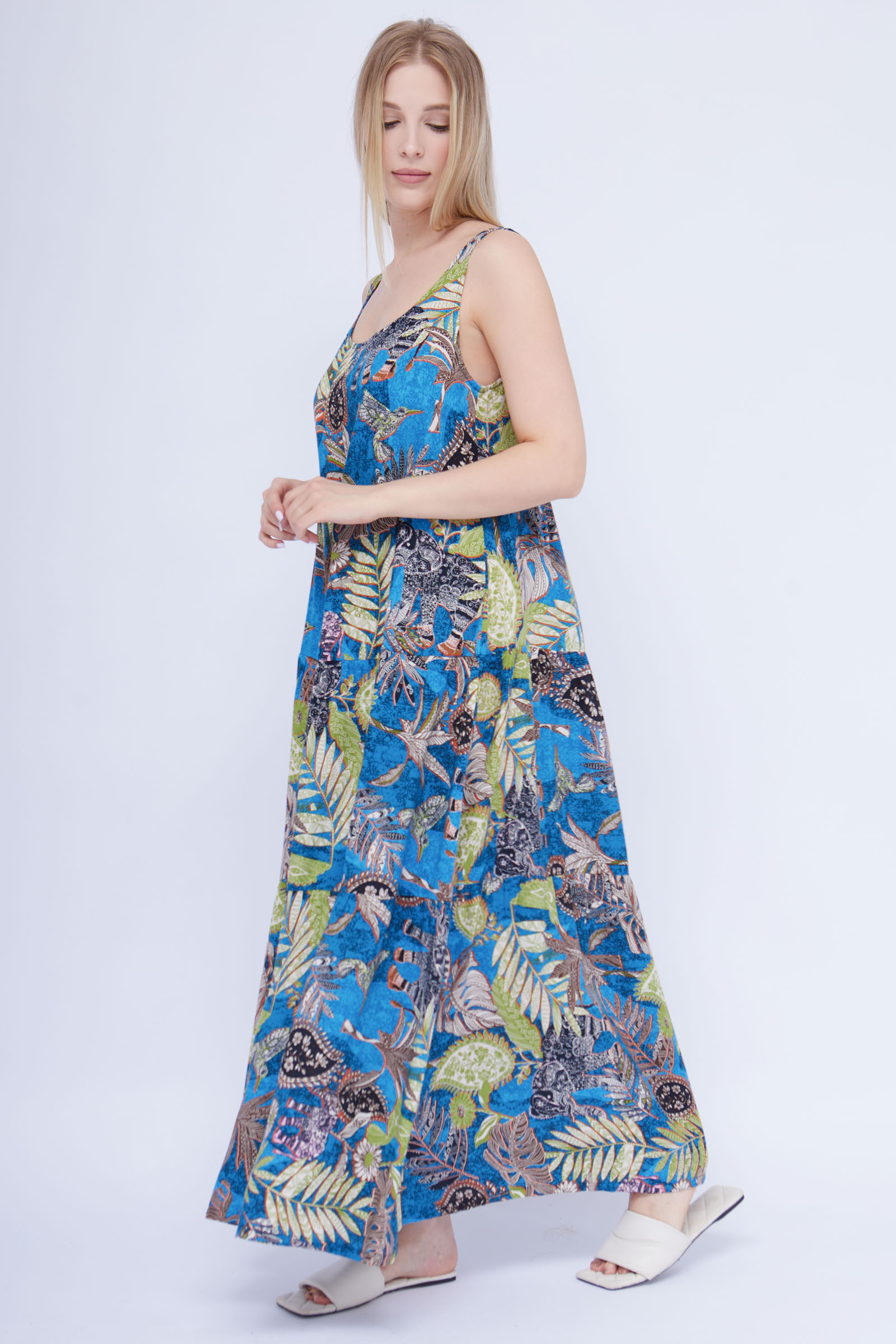 Длинный ярусный сарафан из вискозы с принтом в индийском стиле.