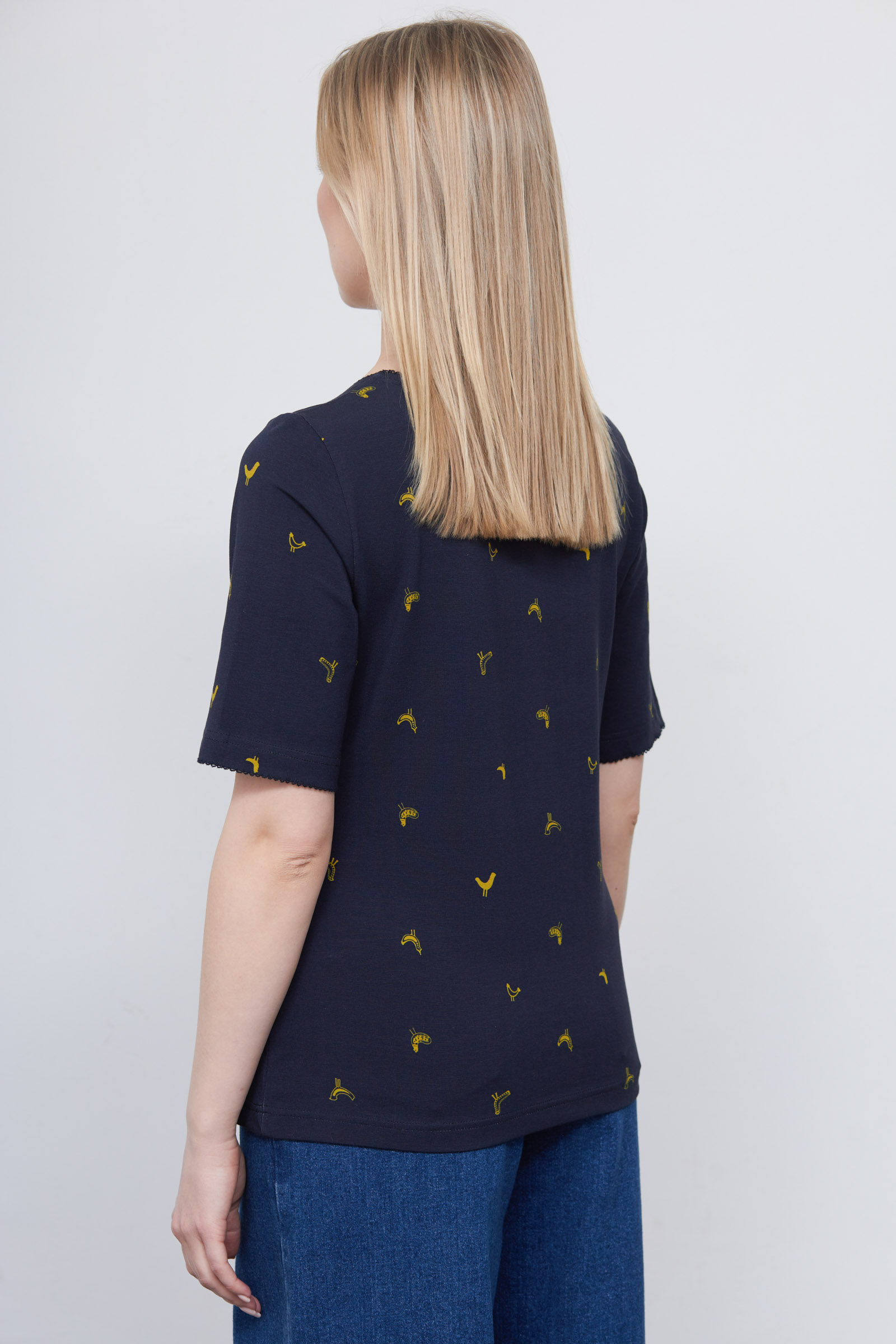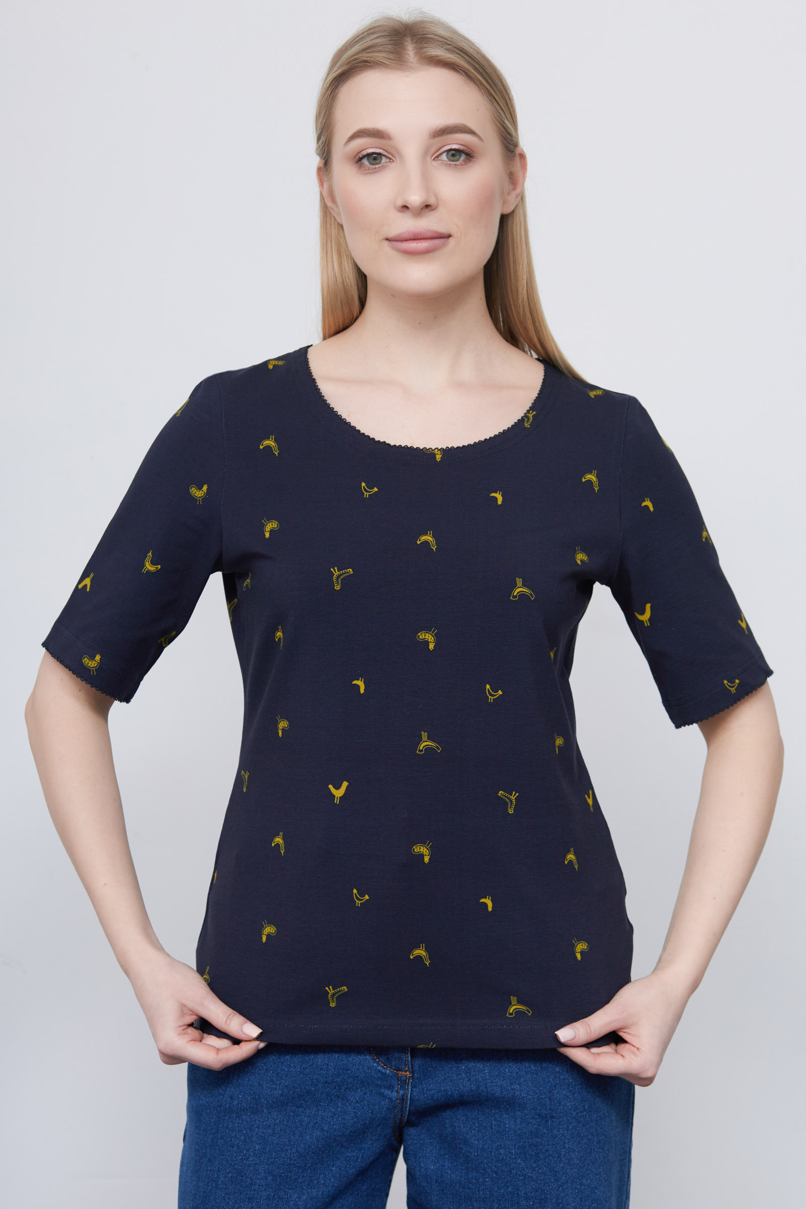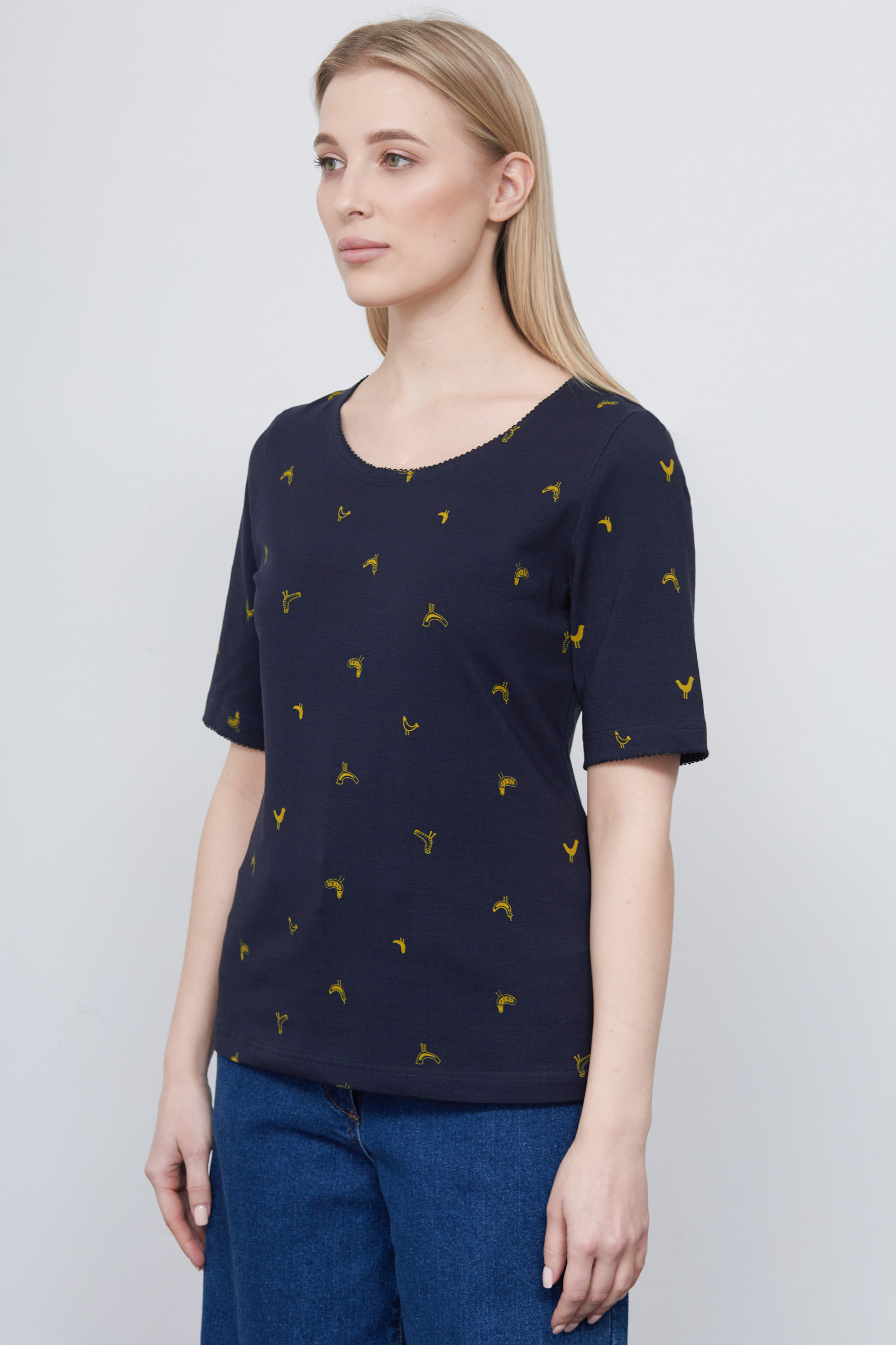 Футболка из мягкого хлопкового трикотажа с фантазийным принтом.