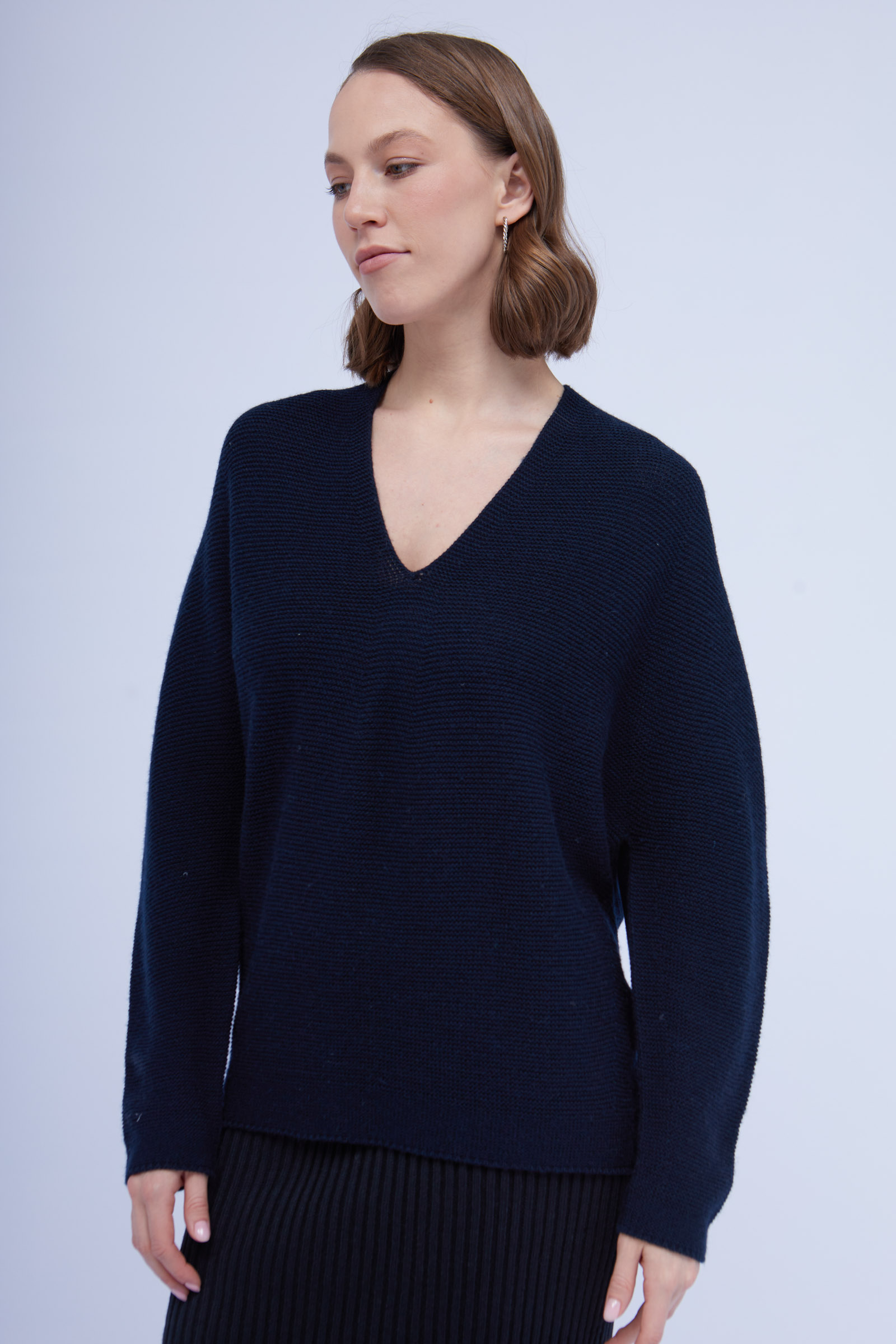 Джемпер из фактурного вязаного трикотажа с шерстью.