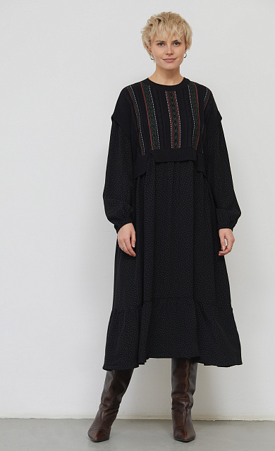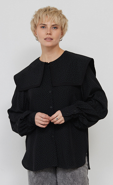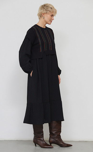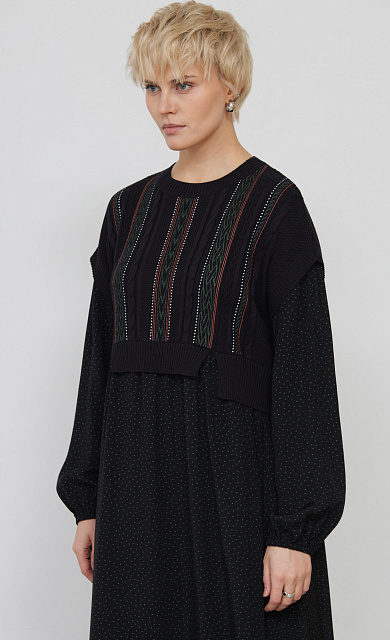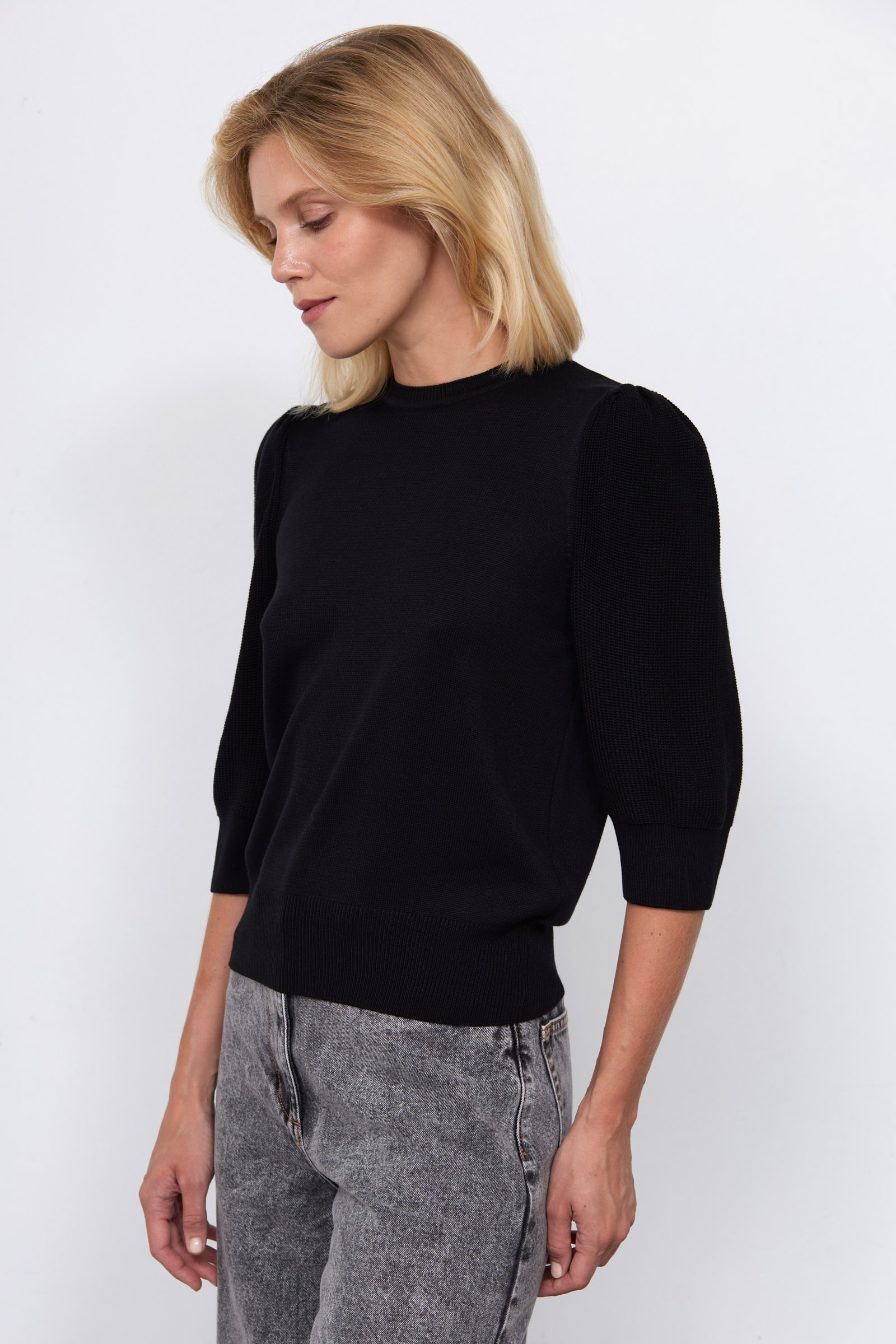 Джемпер из вязаного вискозного трикотажа с пышными рукавами.