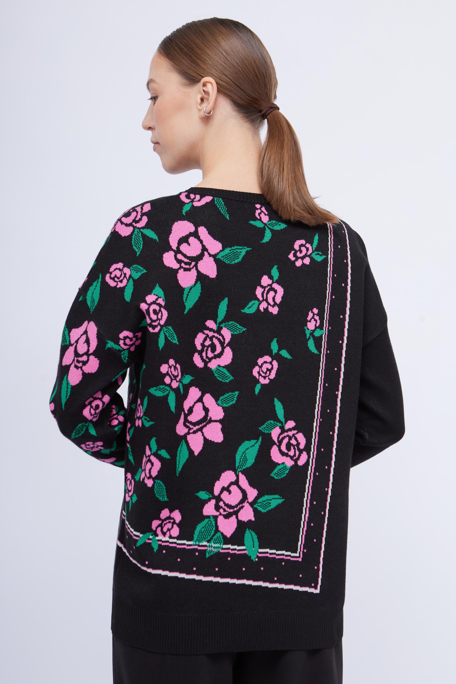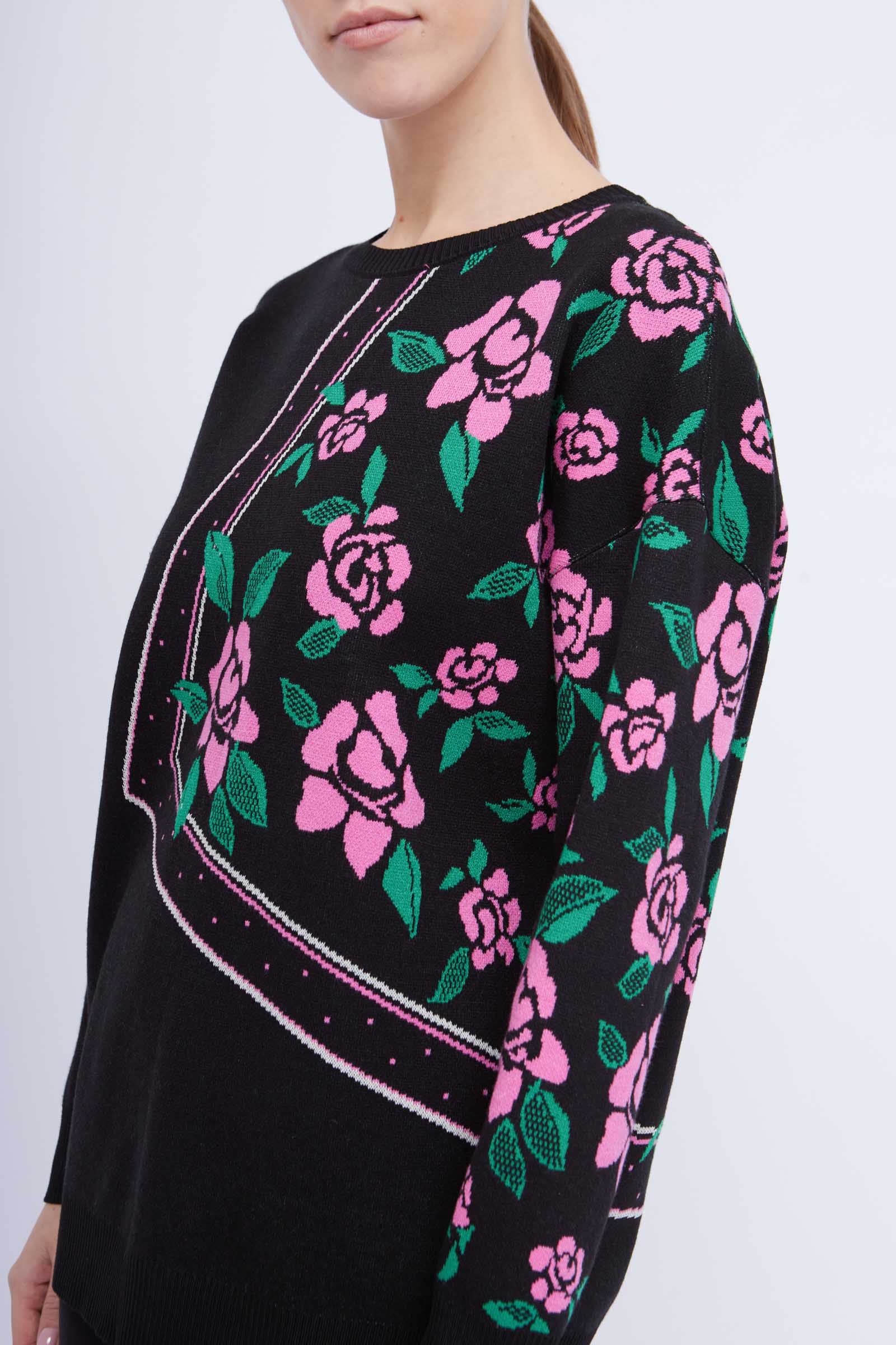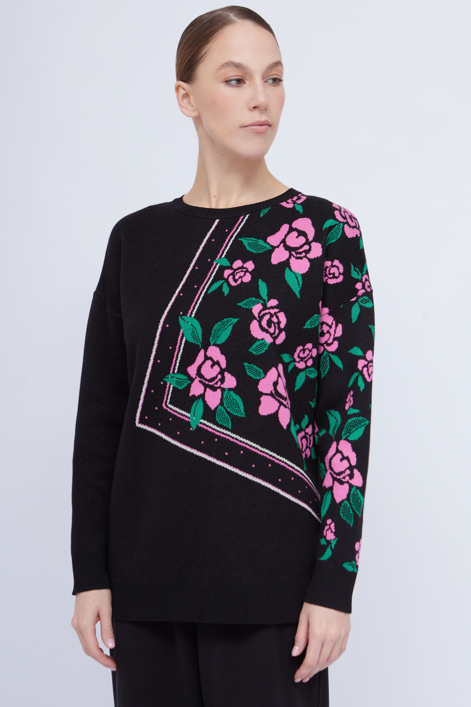 Джемпер oversize жаккардовой вязки с изображением платка.