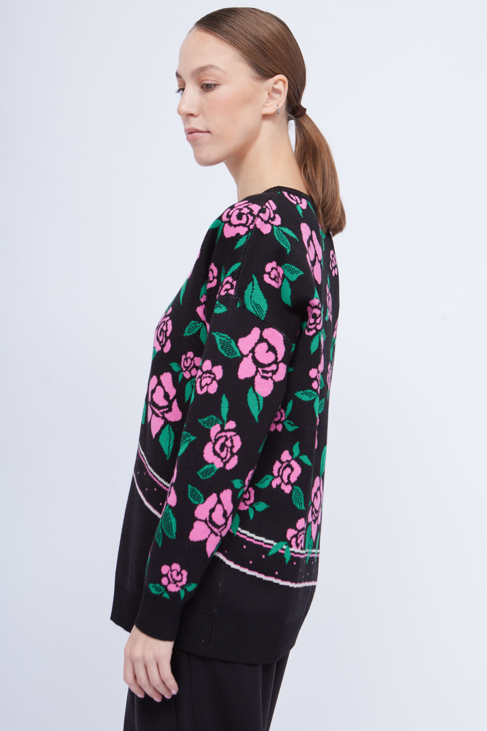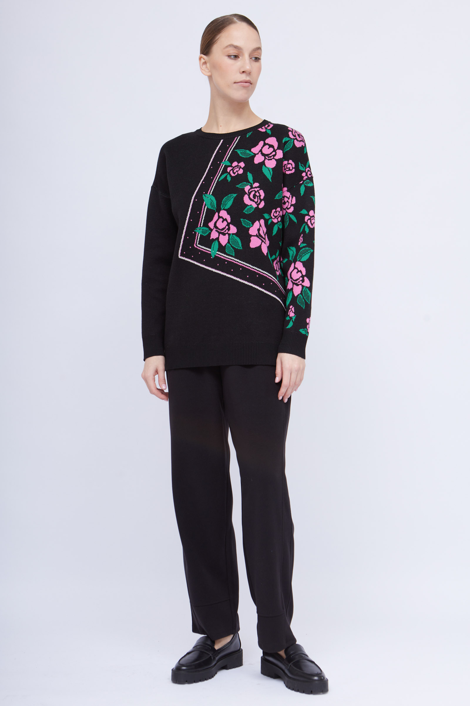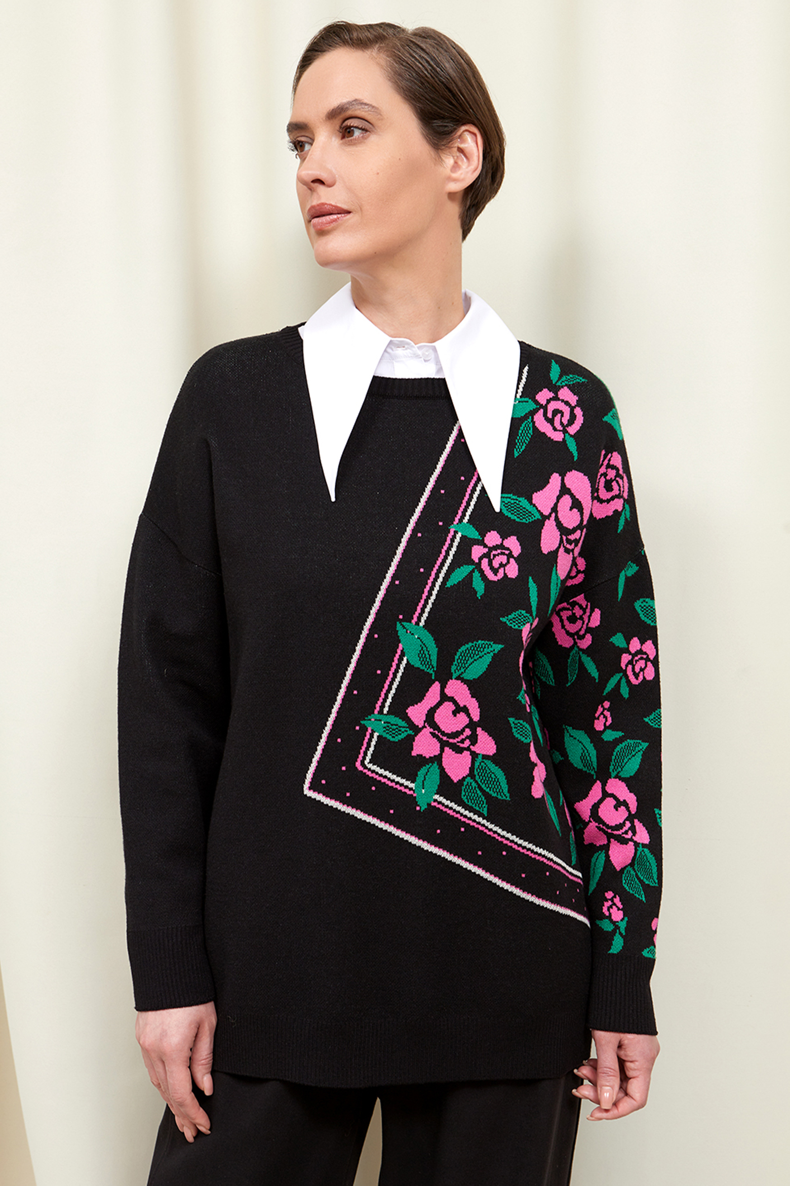 Джемпер oversize жаккардовой вязки с изображением платка.