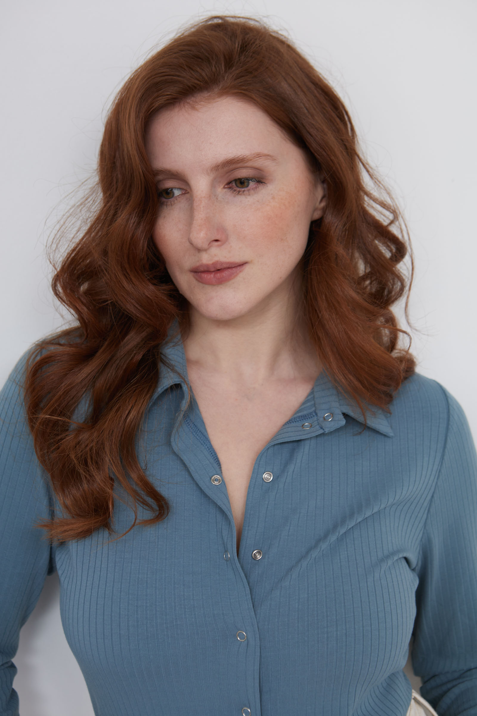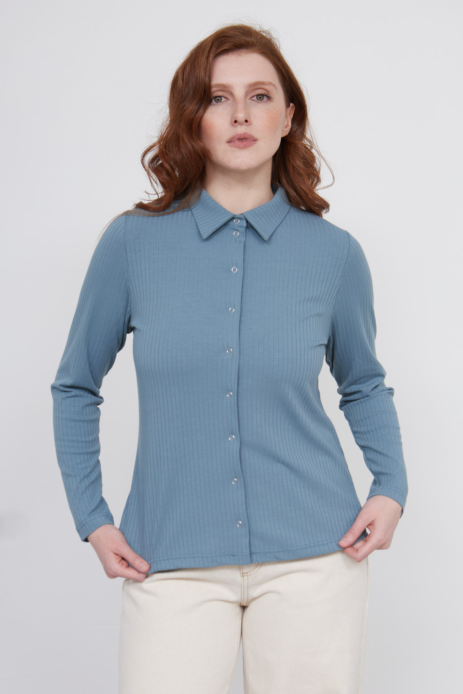Блузка в рубчик на кнопках