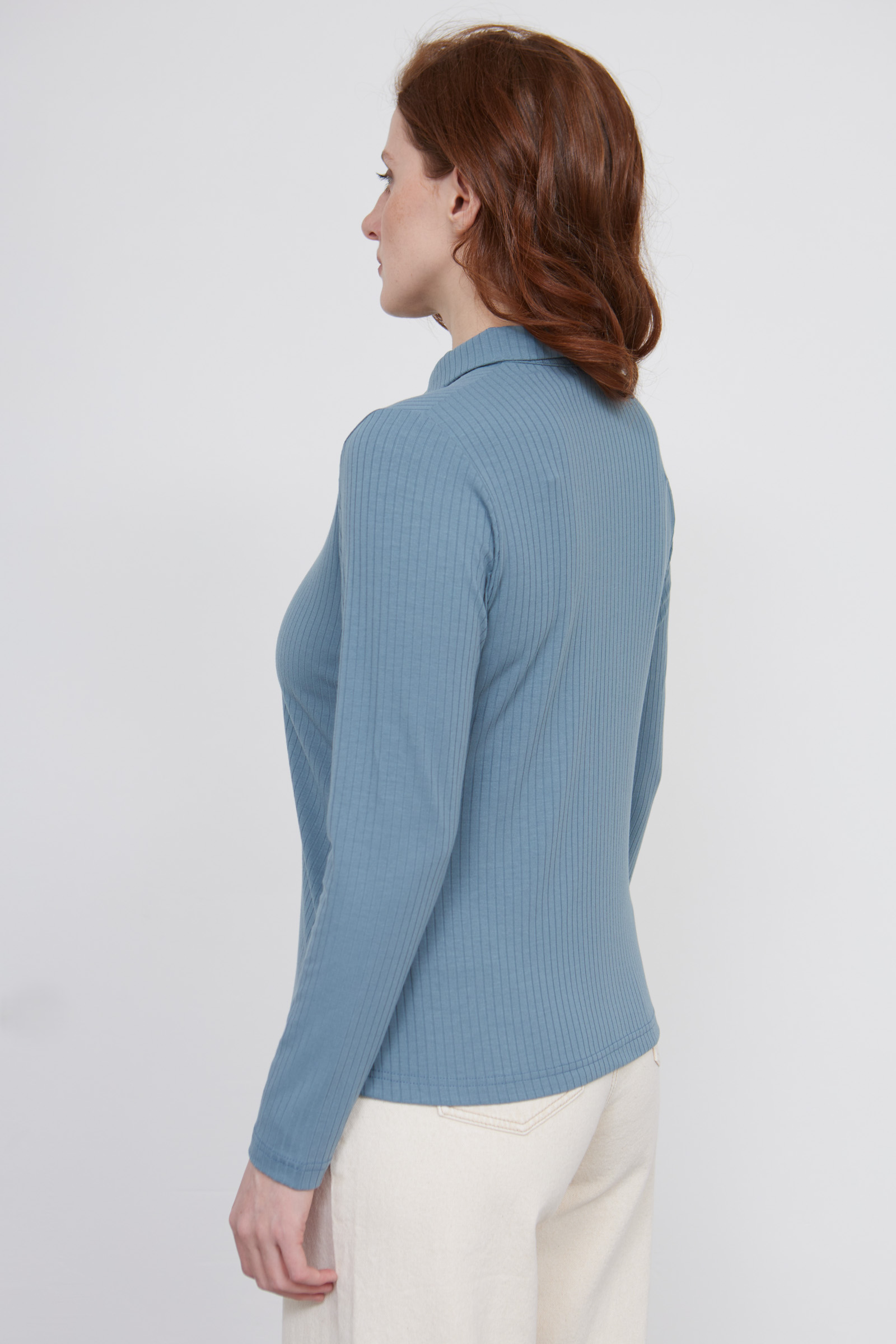 Блузка из мягкого вискозного трикотажа в рубчик.
