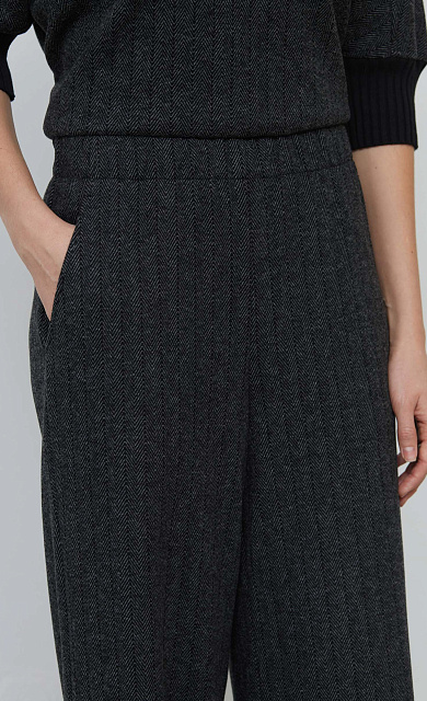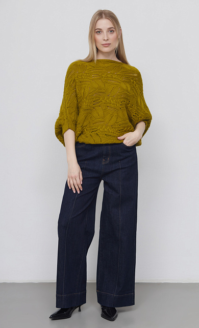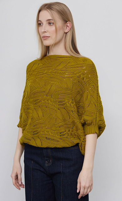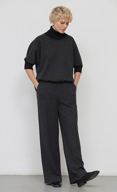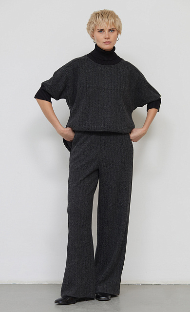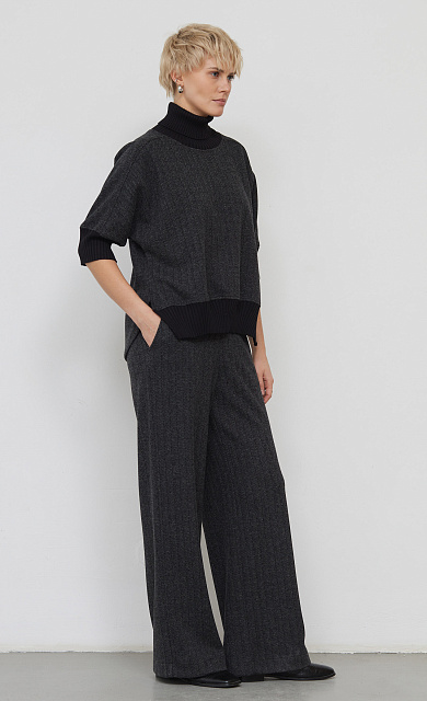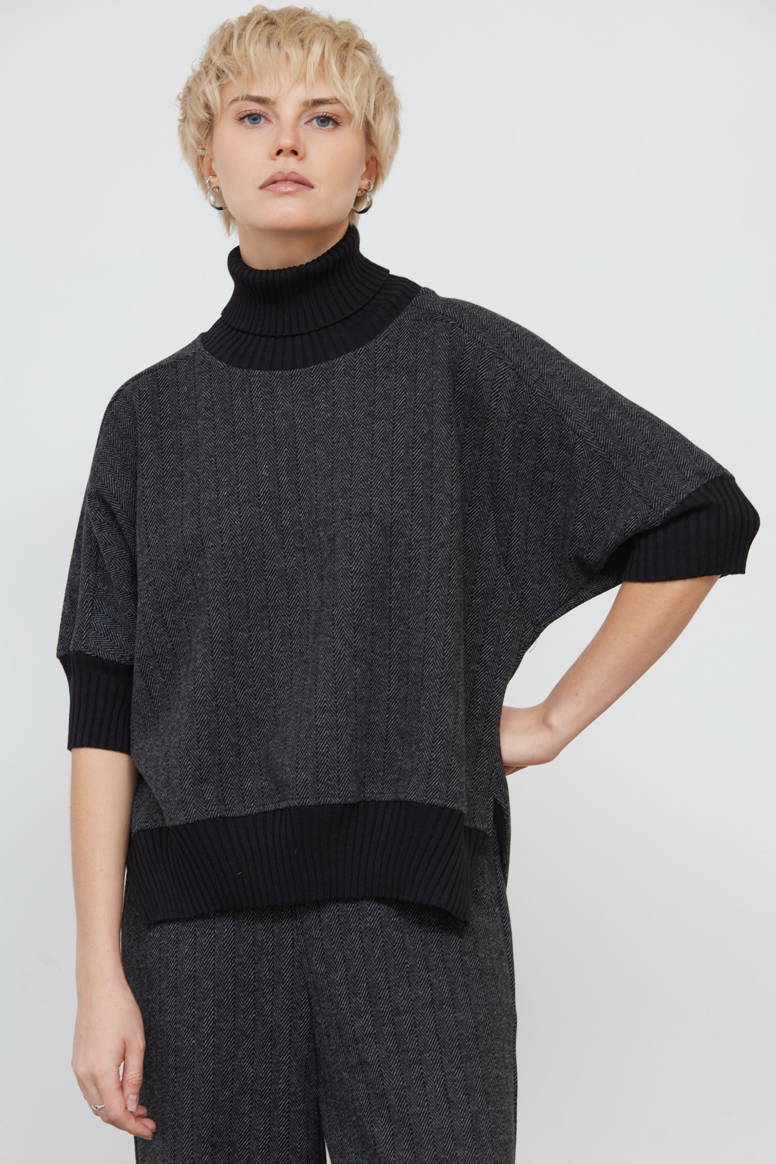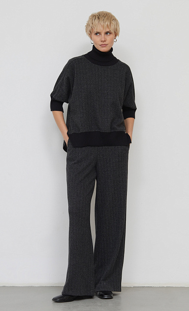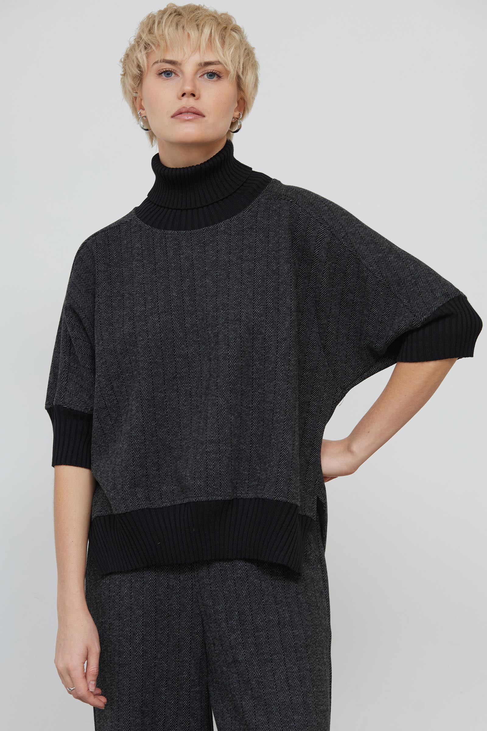 Комбинированный джемпер из поливискозы в елочку с вязаными воротником и манжетами.
