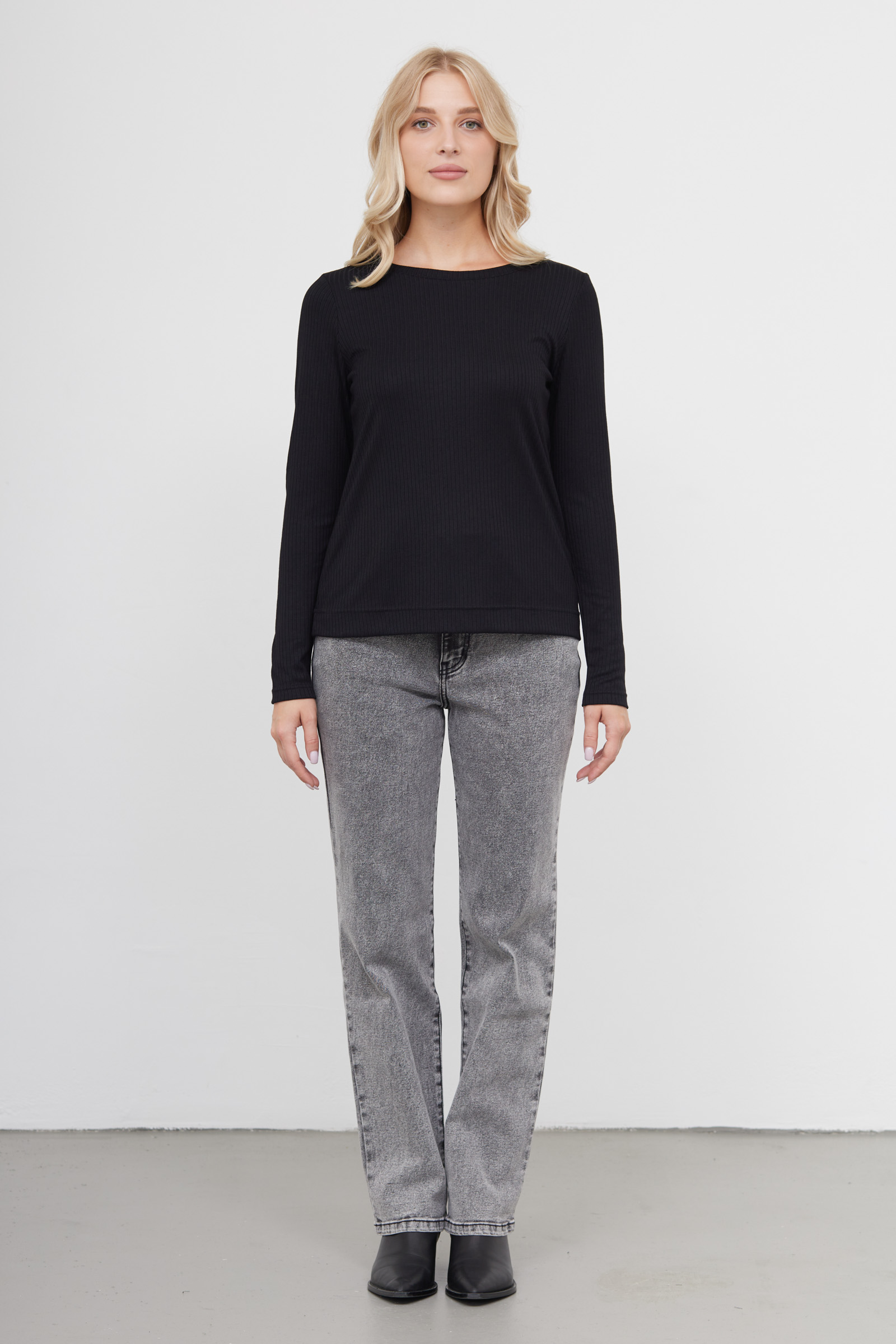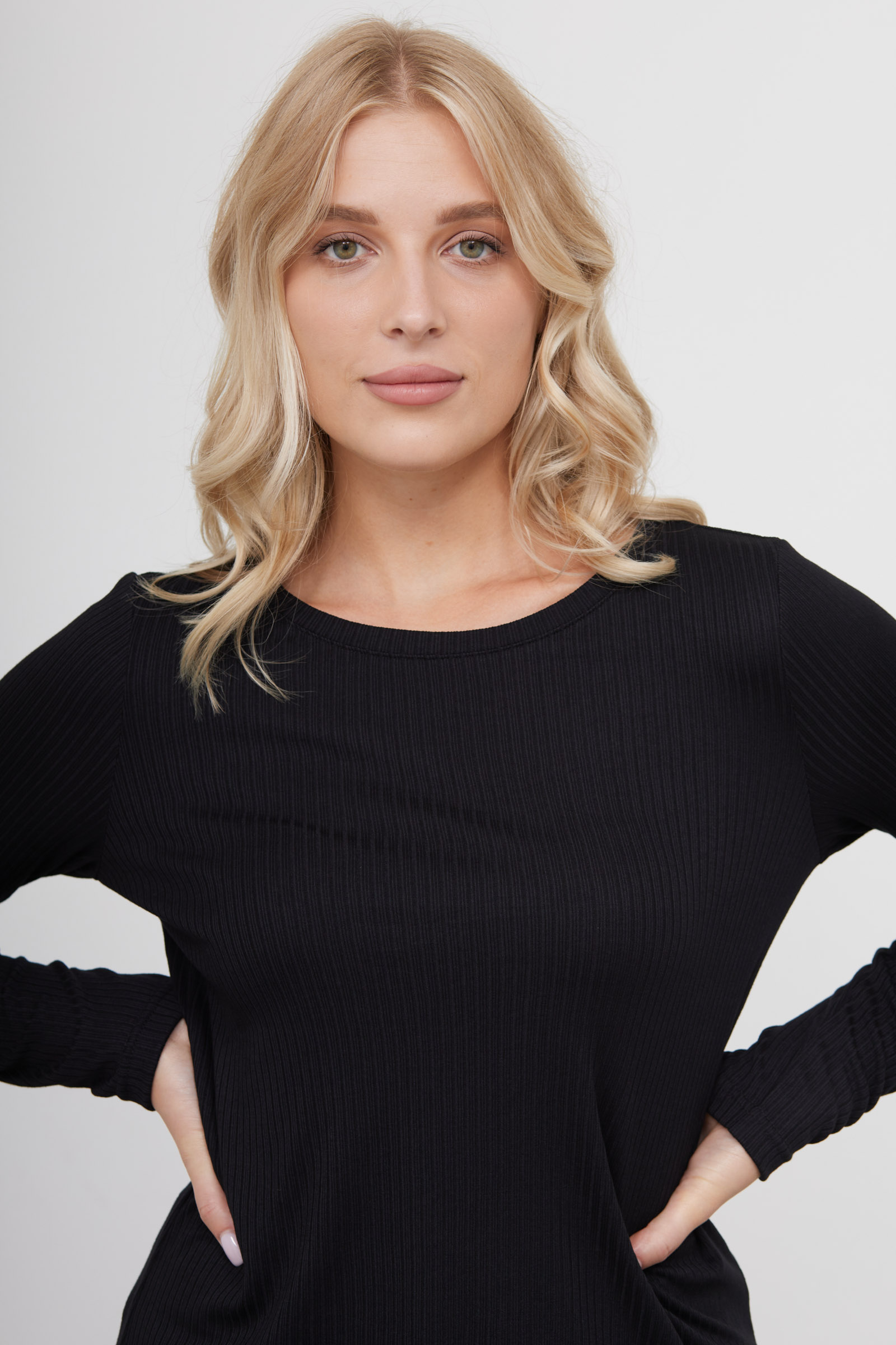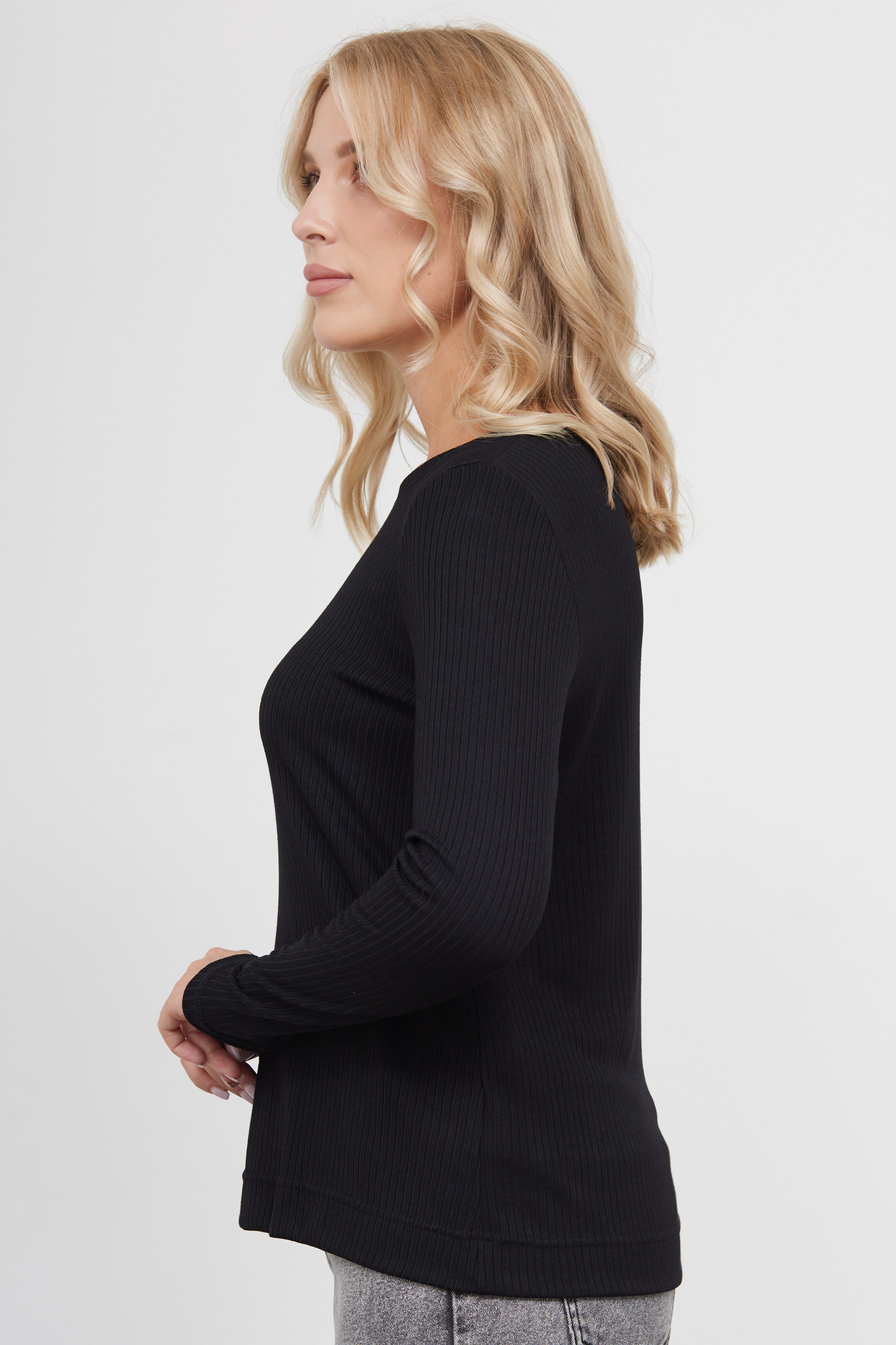 Базовый лонгслив из вискозного трикотажа в рубчик.