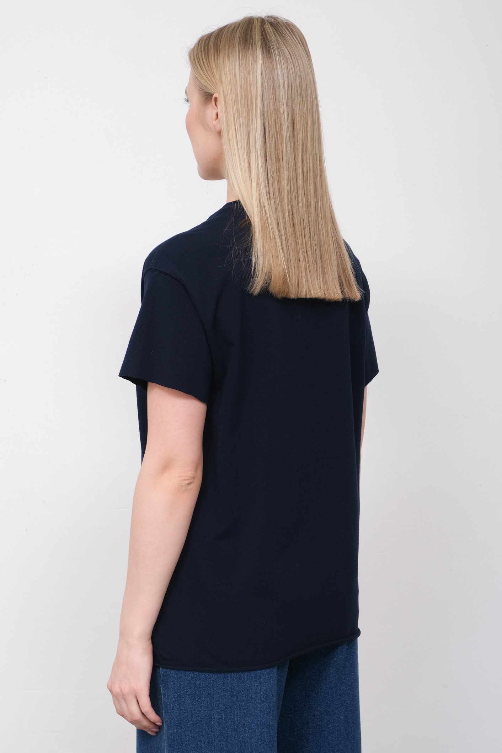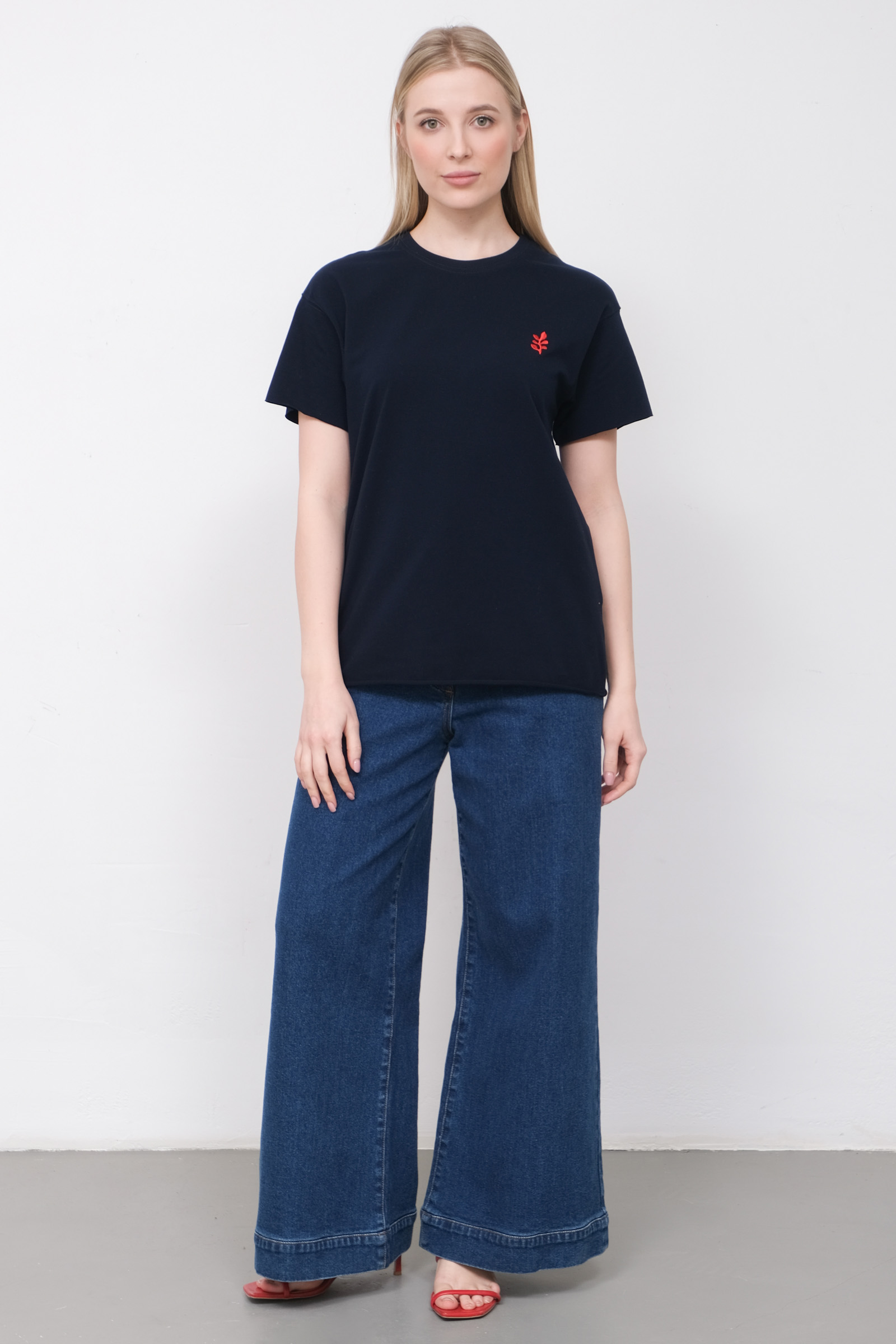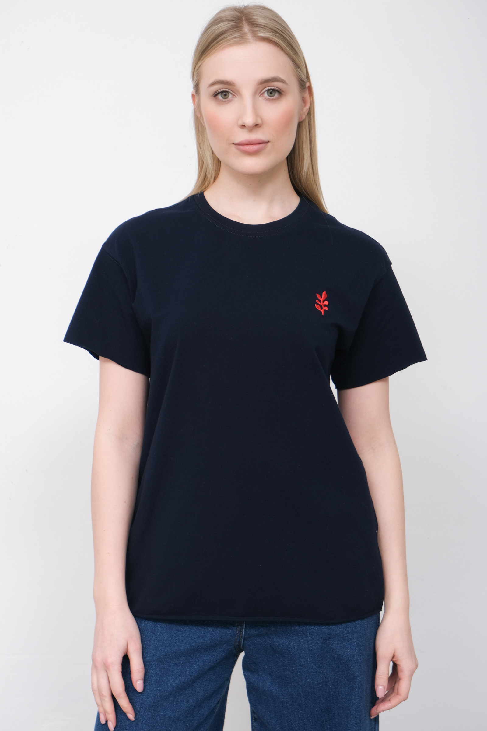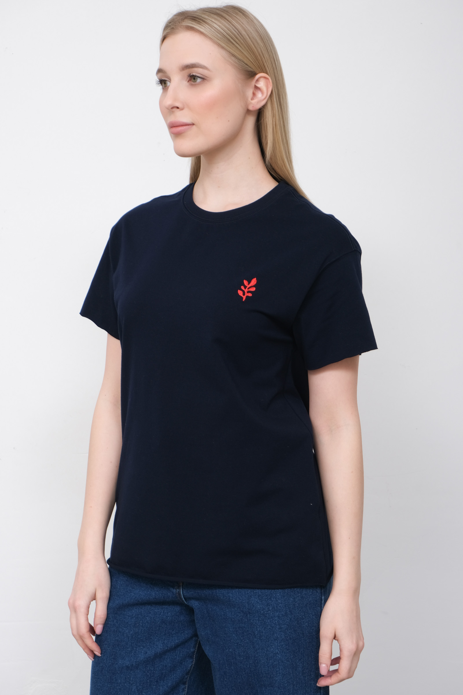 Футболка oversize из мягкого хлопкового трикотажа с контрастной вышивкой и необработанными краями.