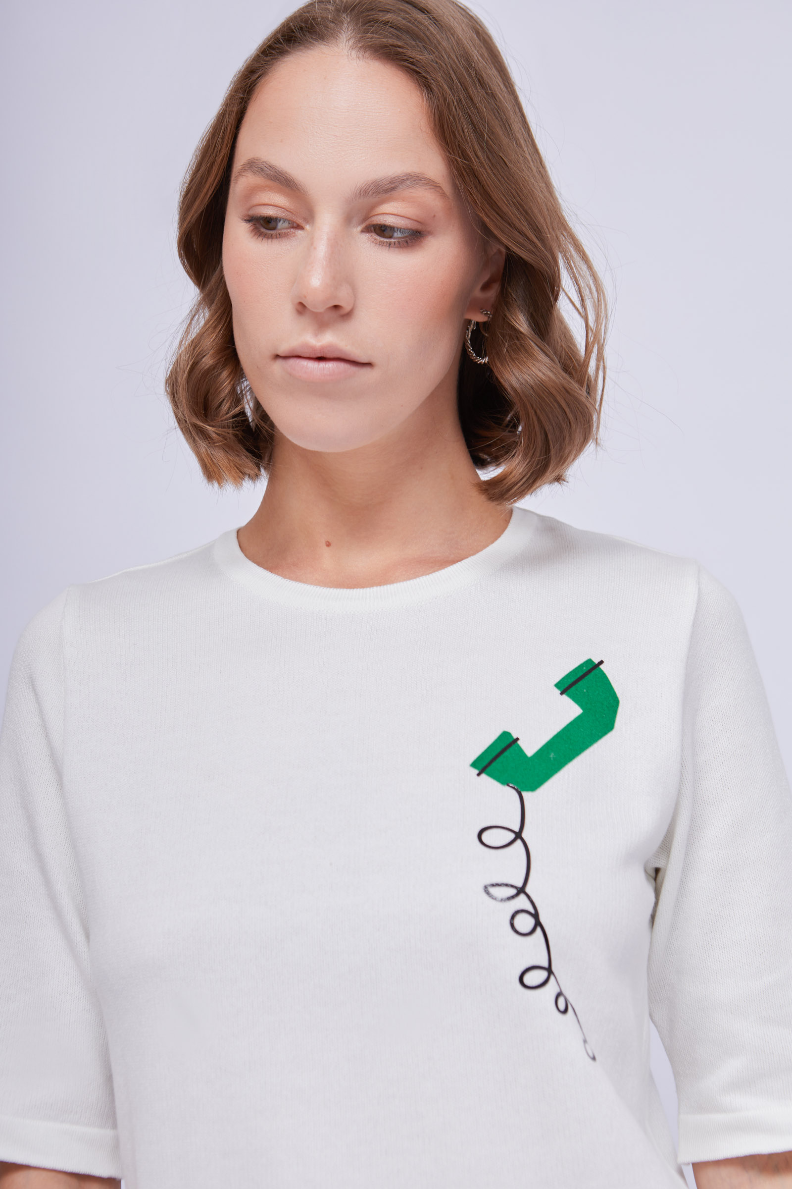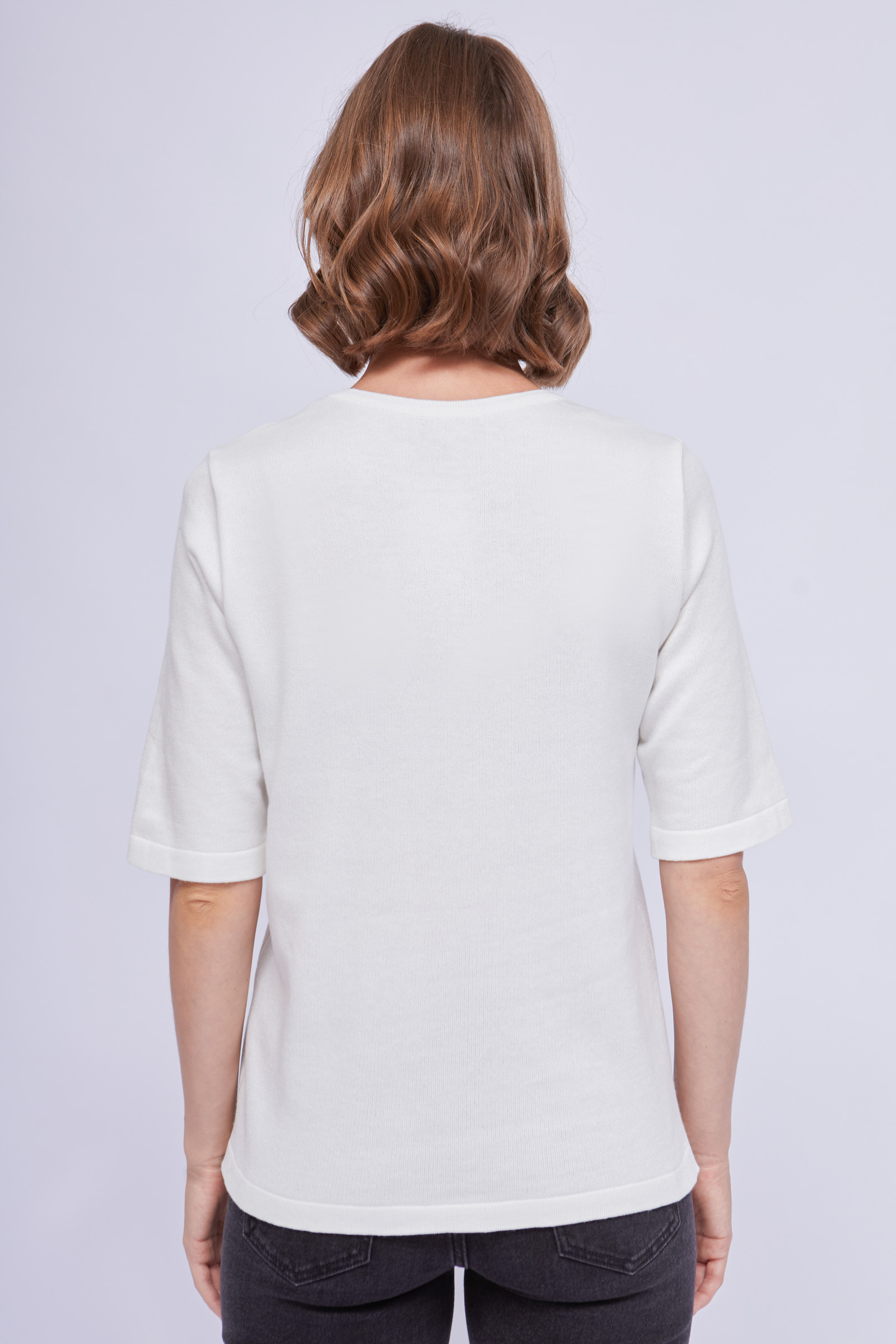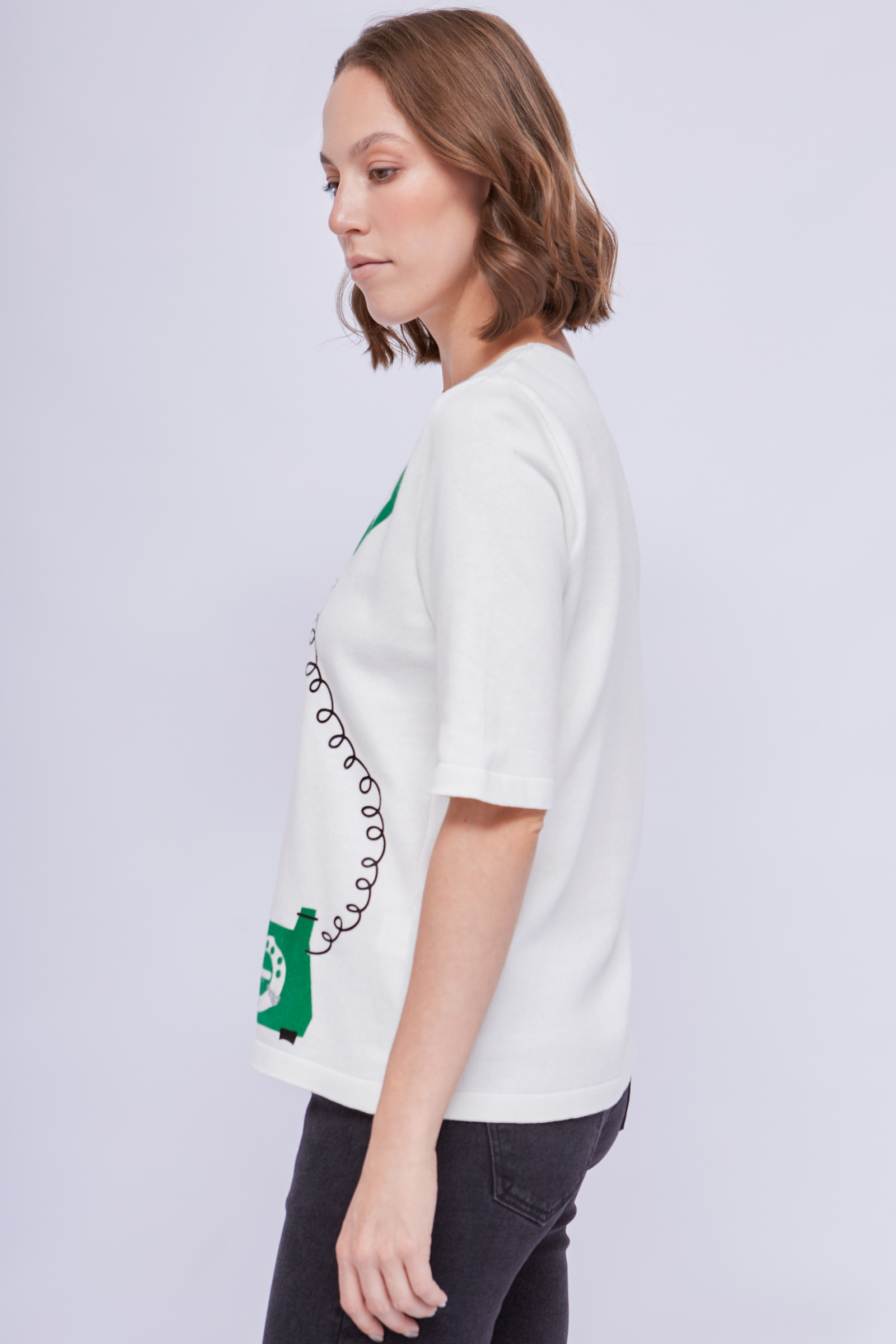 Джемпер из тонкого вязаного трикотажа с короткими рукавами и принтом.