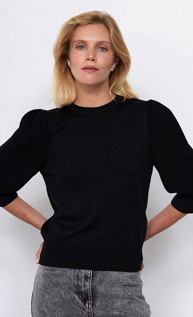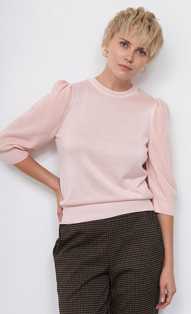 Джемпер-поло из мягкого вязаного трикотажа в горошек.