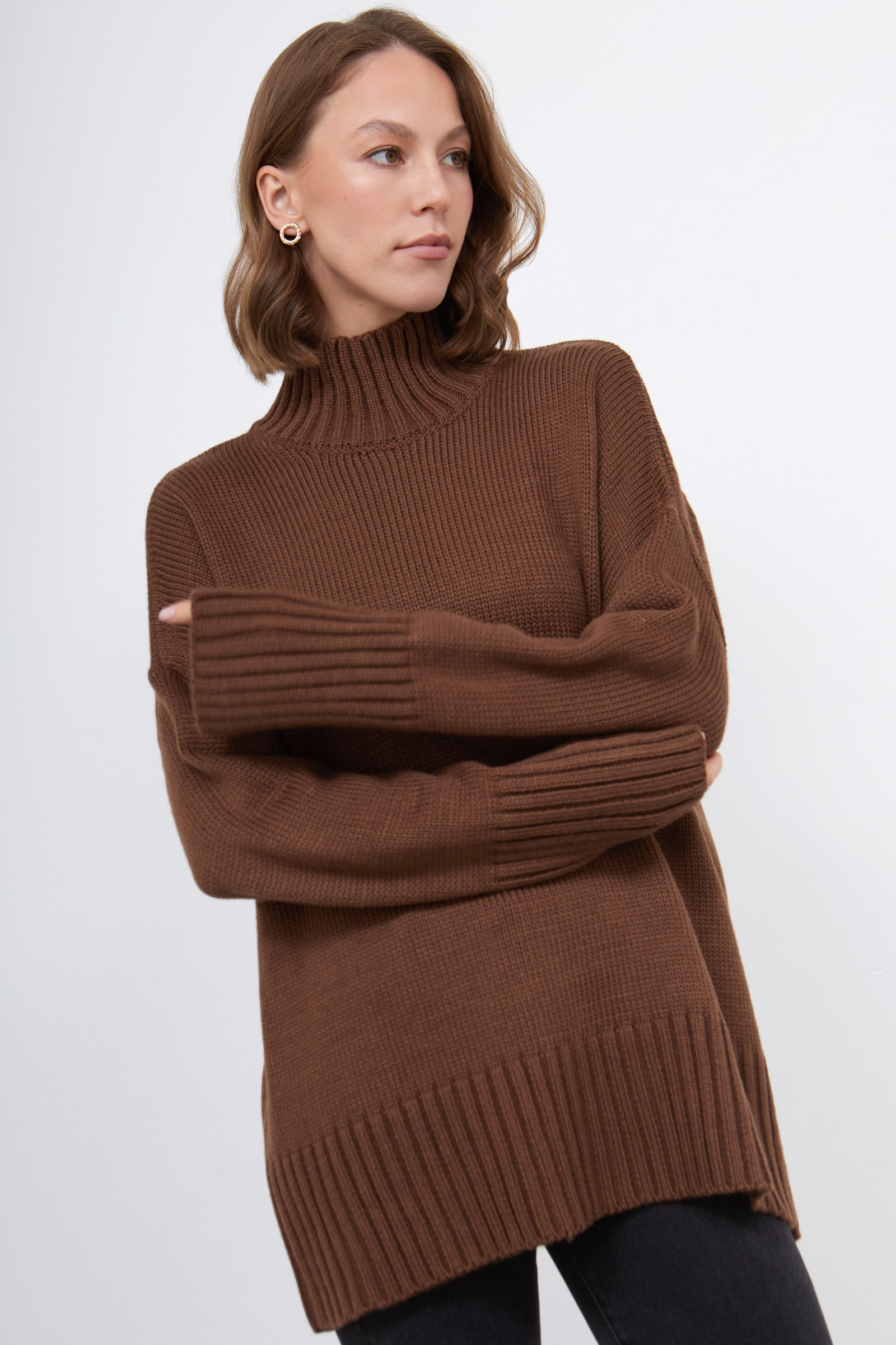 Удлиненный свитер oversize с широким воротником.