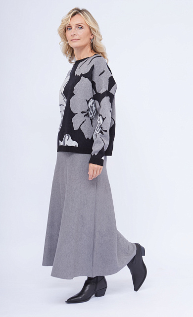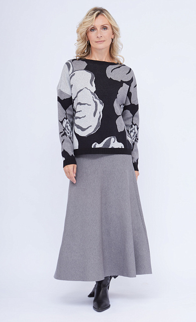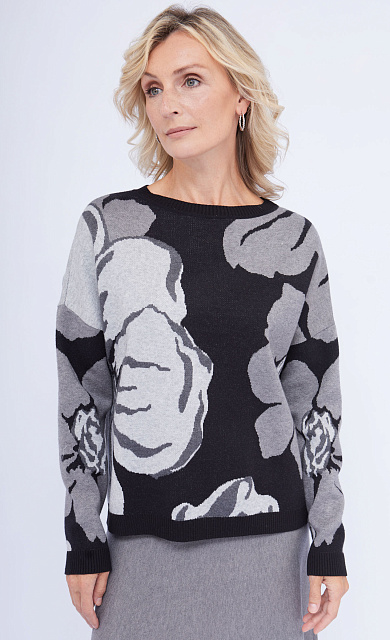 Комбинированный джемпер из мягкой велюровой ткани с вязаными рукавами.