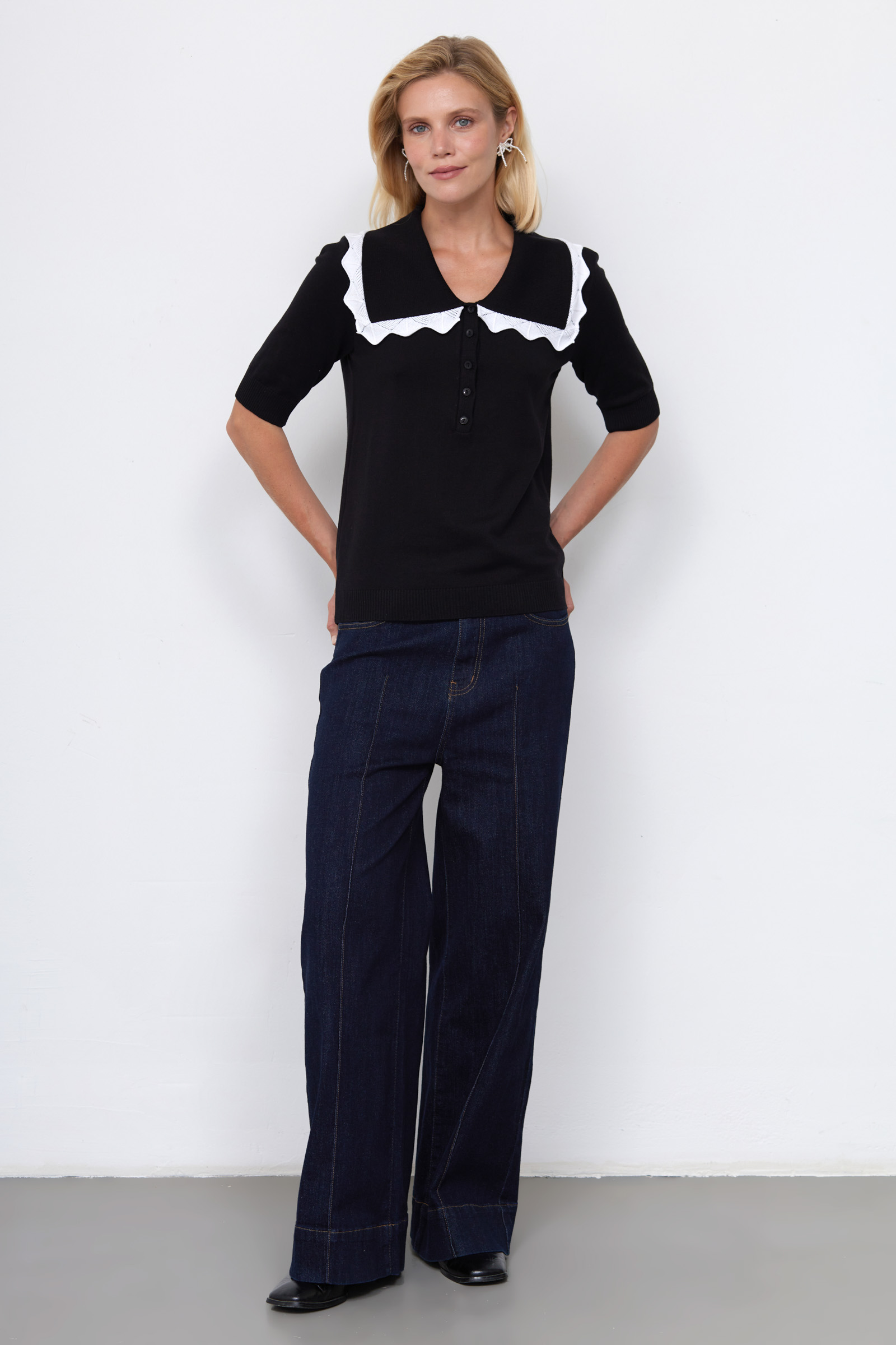 - Отложной воротник с декоративной отделкой