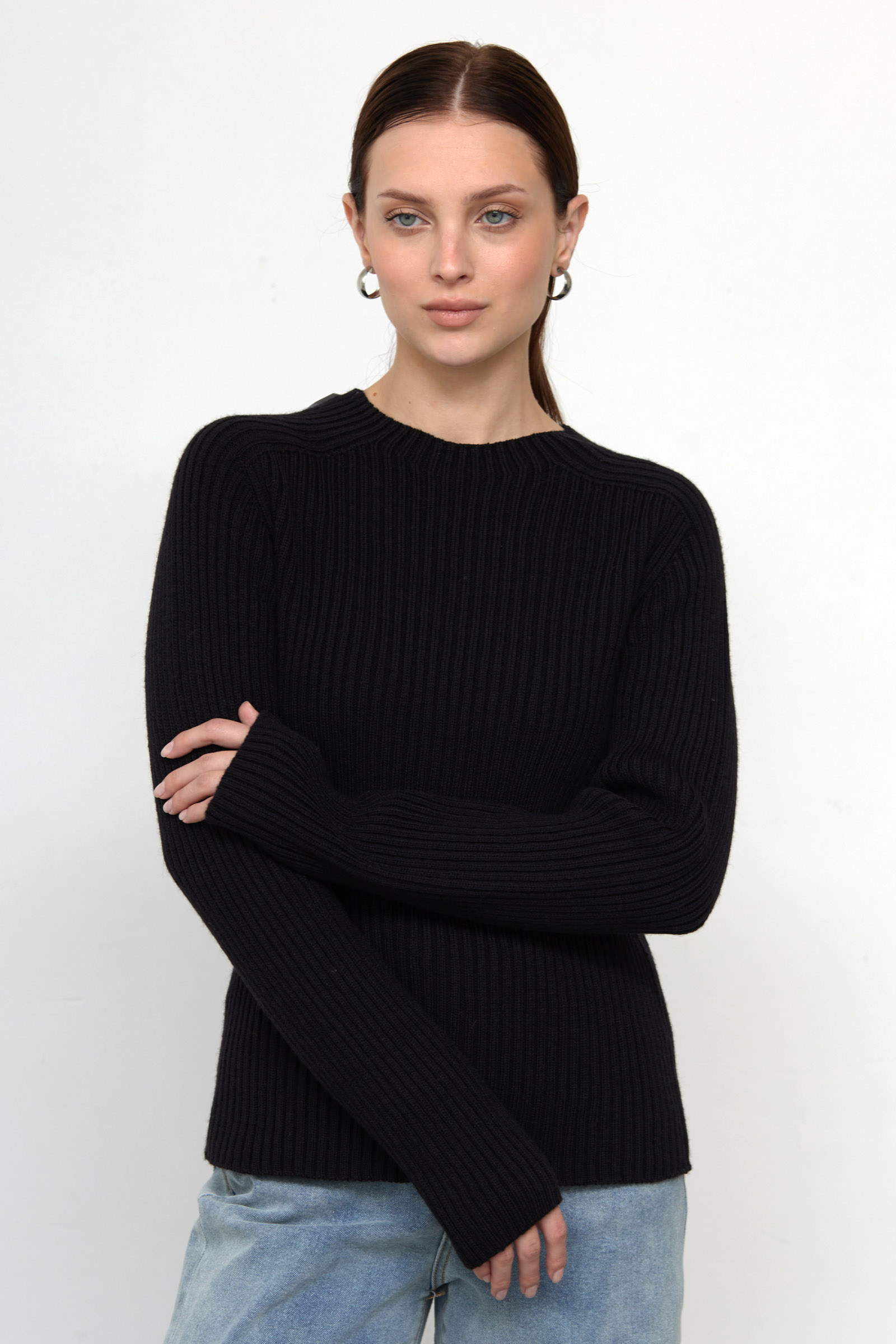 Облегающий джемпер из мягкого вязаного трикотажа в рубчик.